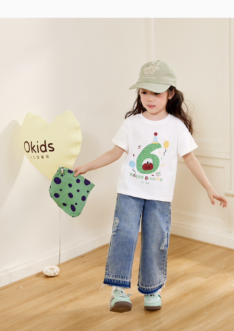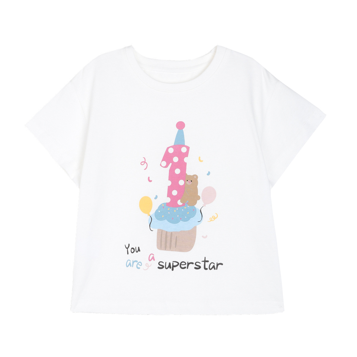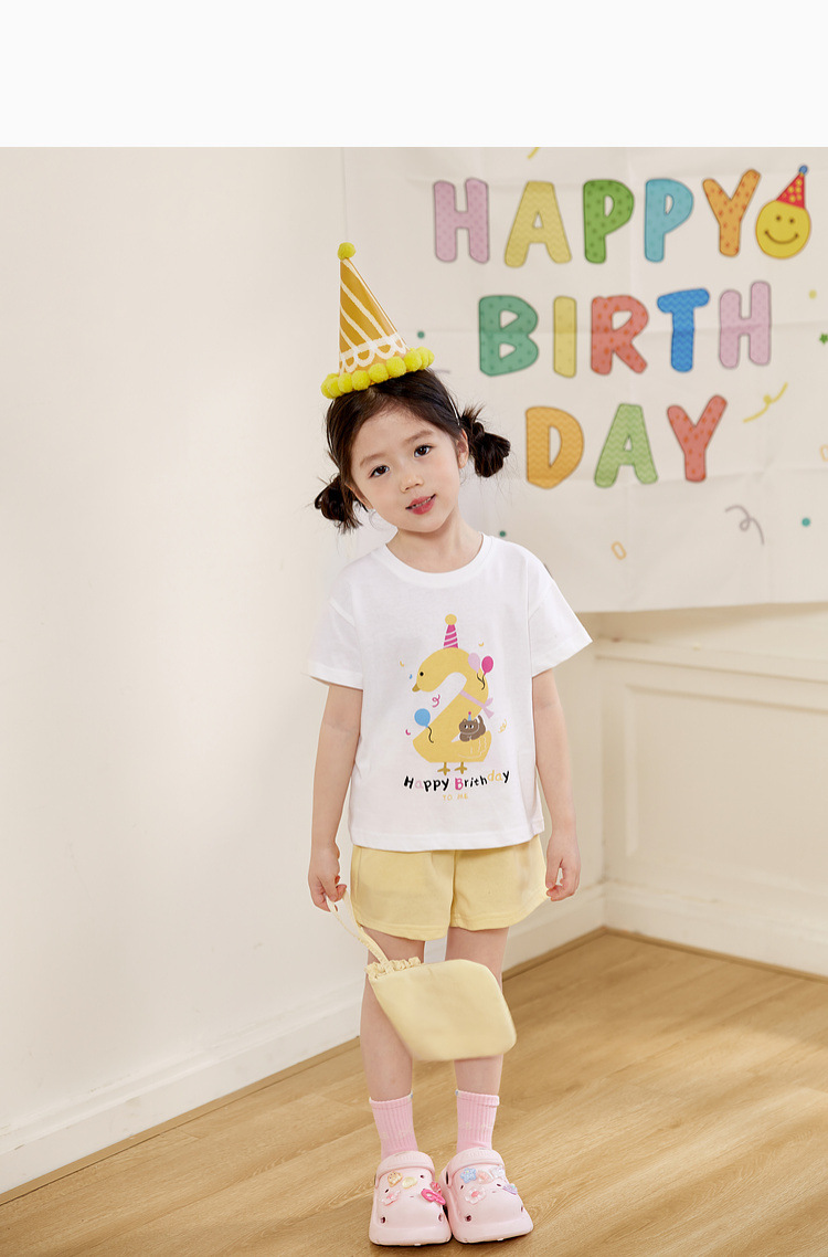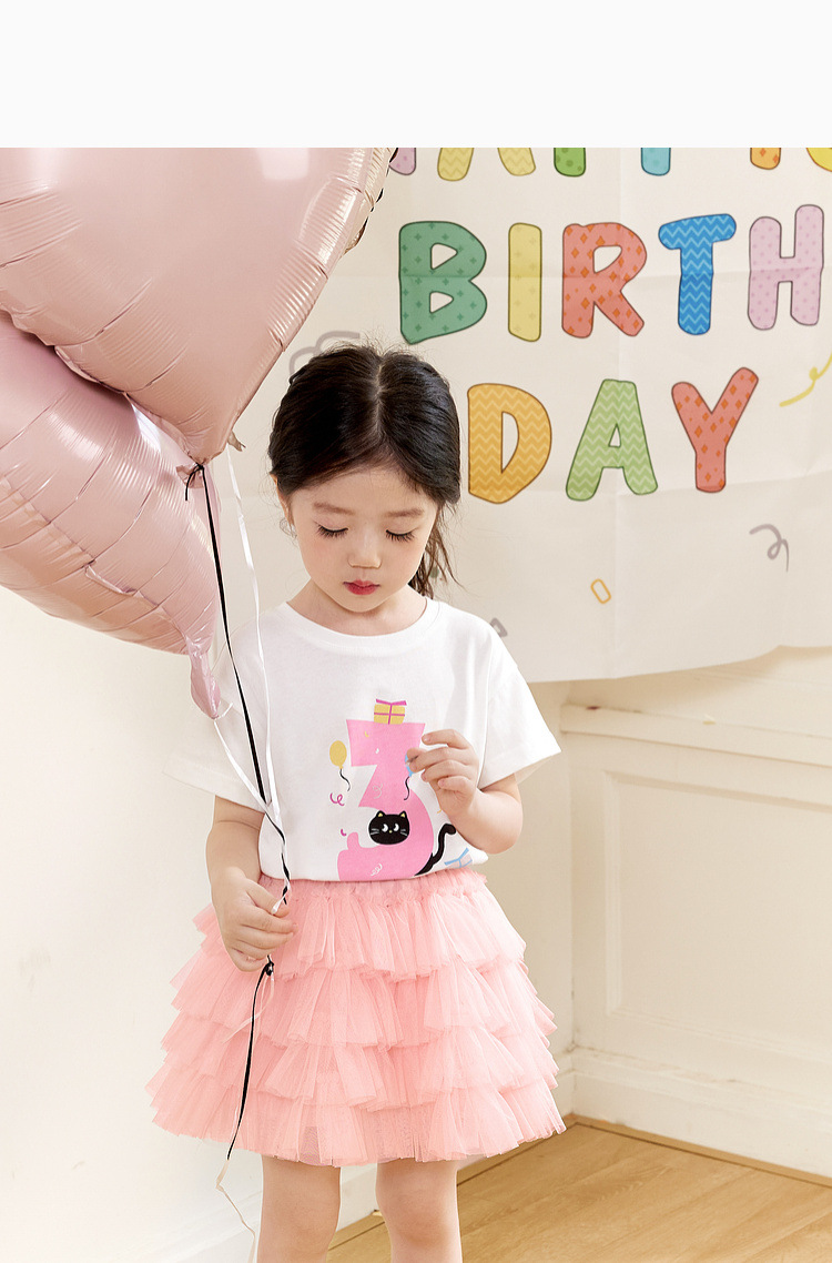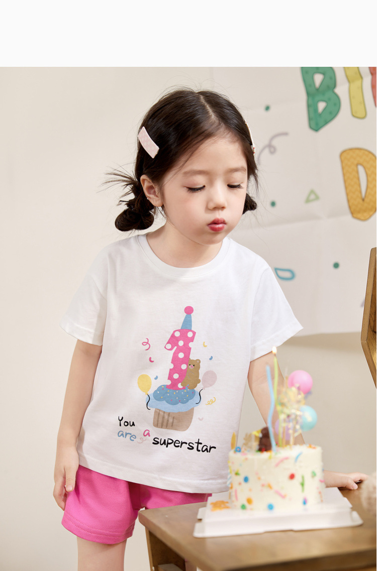 [생일 T] 아동복 베이비 반팔 디지털 티셔츠 여성 2025 여름 새 여자 탑 만화 어린이 트렌드