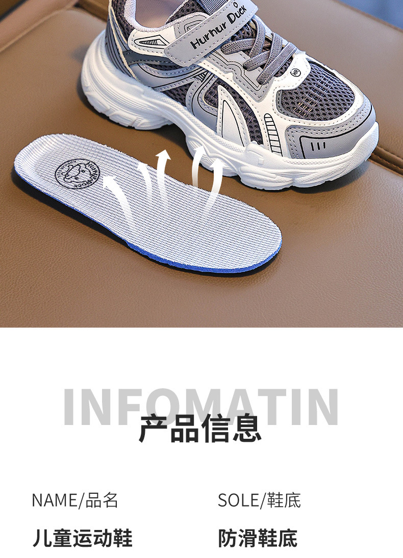 작은 노란색 오리 소녀 신발 봄 통기성 스포츠 신발 어린이 경량 여름 메쉬 중형 및 대형 어린이 단일 메쉬 아빠 신발