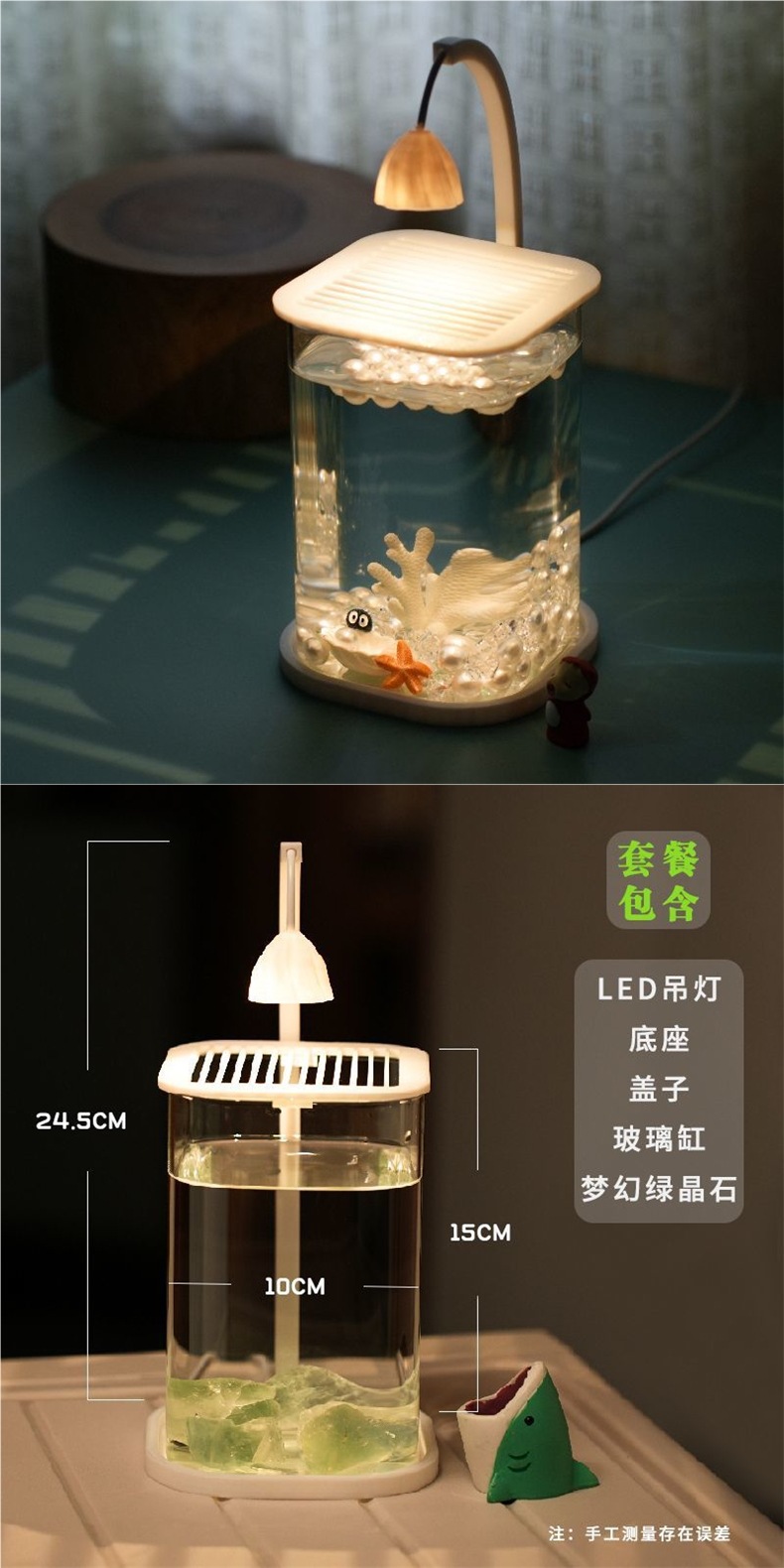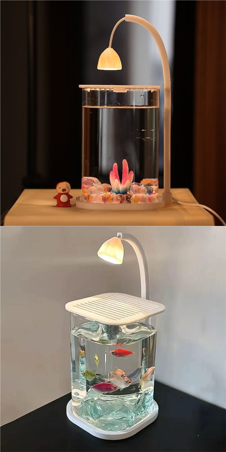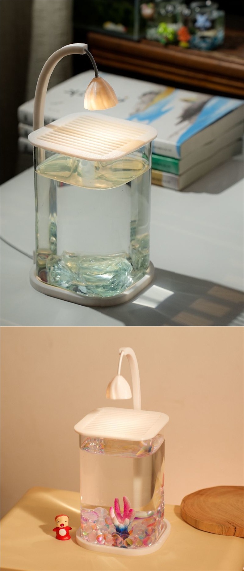 물고기 탱크 두 물고기 슈퍼 화이트 작은 게으른 유리 탱크 거실 창조적 인 데스크탑 장식품 감각적 인 장식 램프