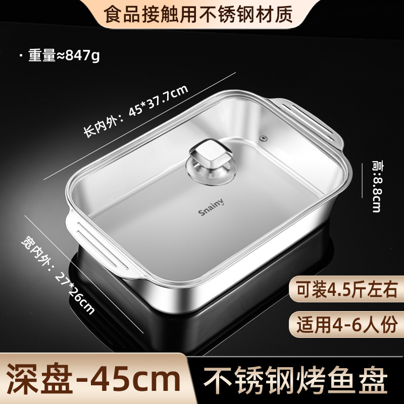 • 새로운 스테인리스 스틸 생선 구이팬 (깊은형) - 45cm + 방폭 유리 뚜껑