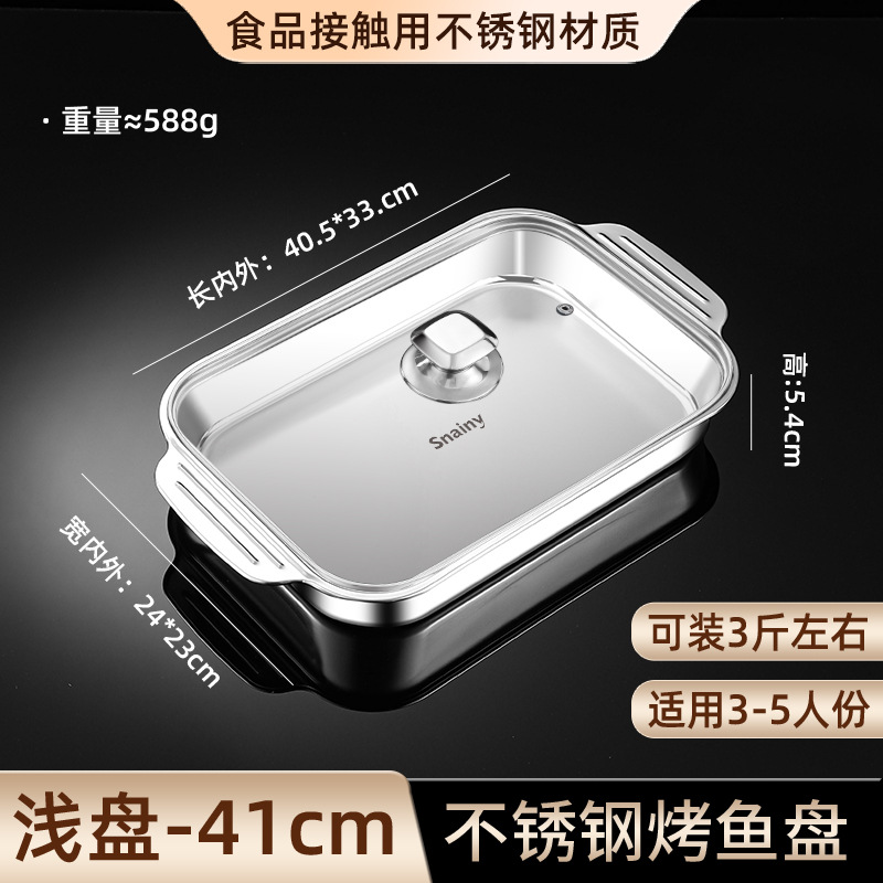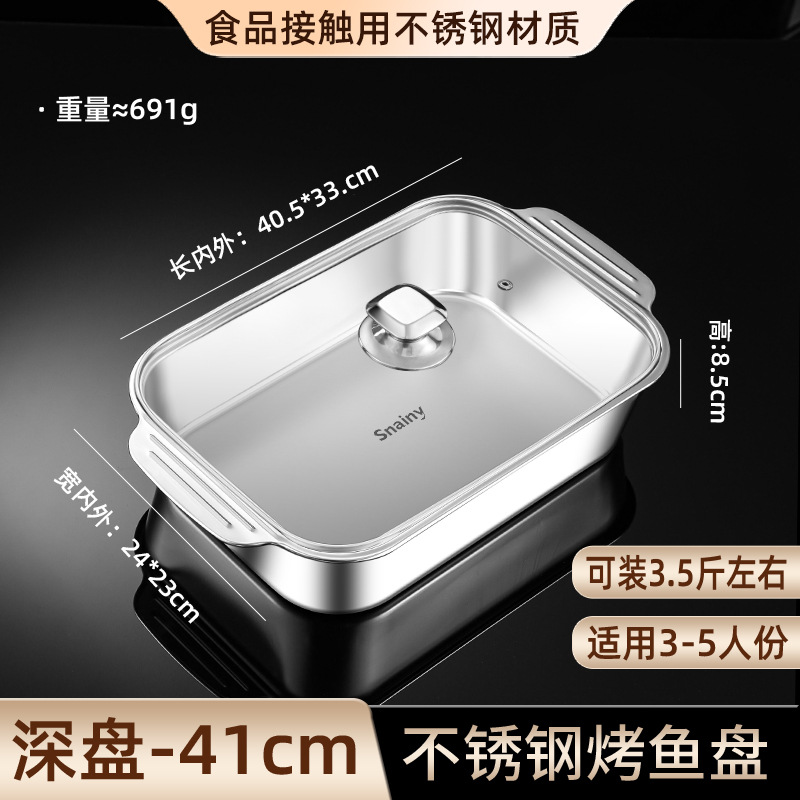 • 새로운 스테인리스 스틸 구이용 생선 트레이, 깊은 버전 - 41cm + 방폭 유리 뚜껑