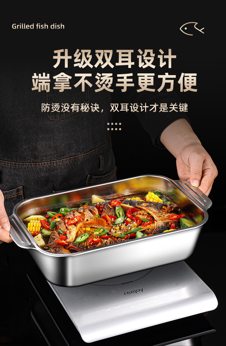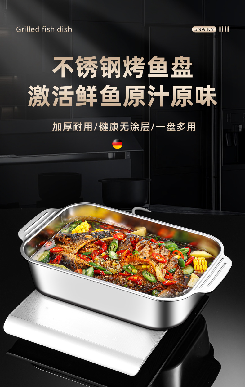 • 새로운 스테인리스 스틸 생선 구이 팬 얕은 스타일 - 특대형 51cm