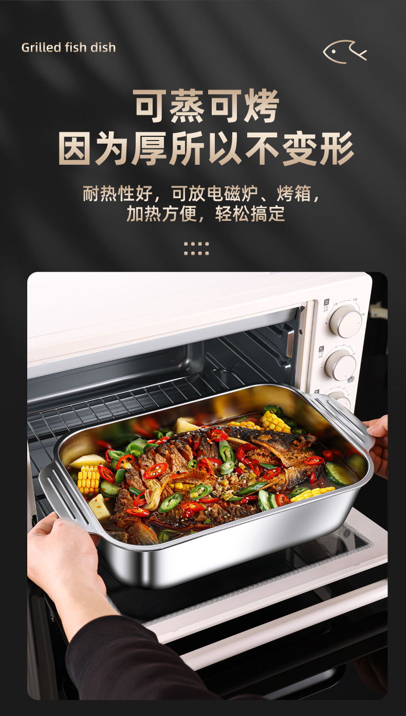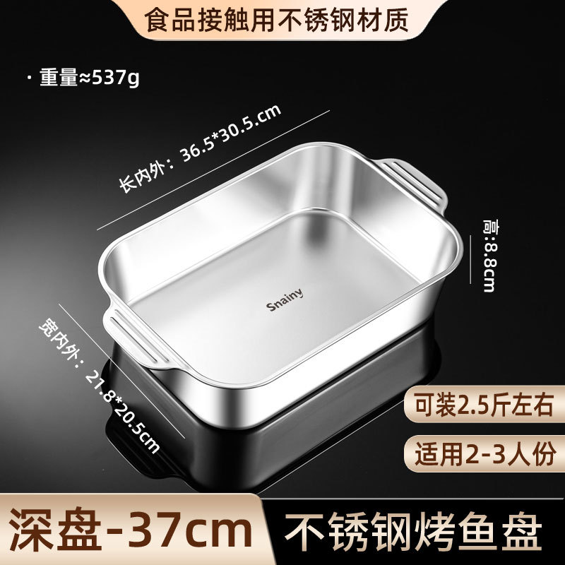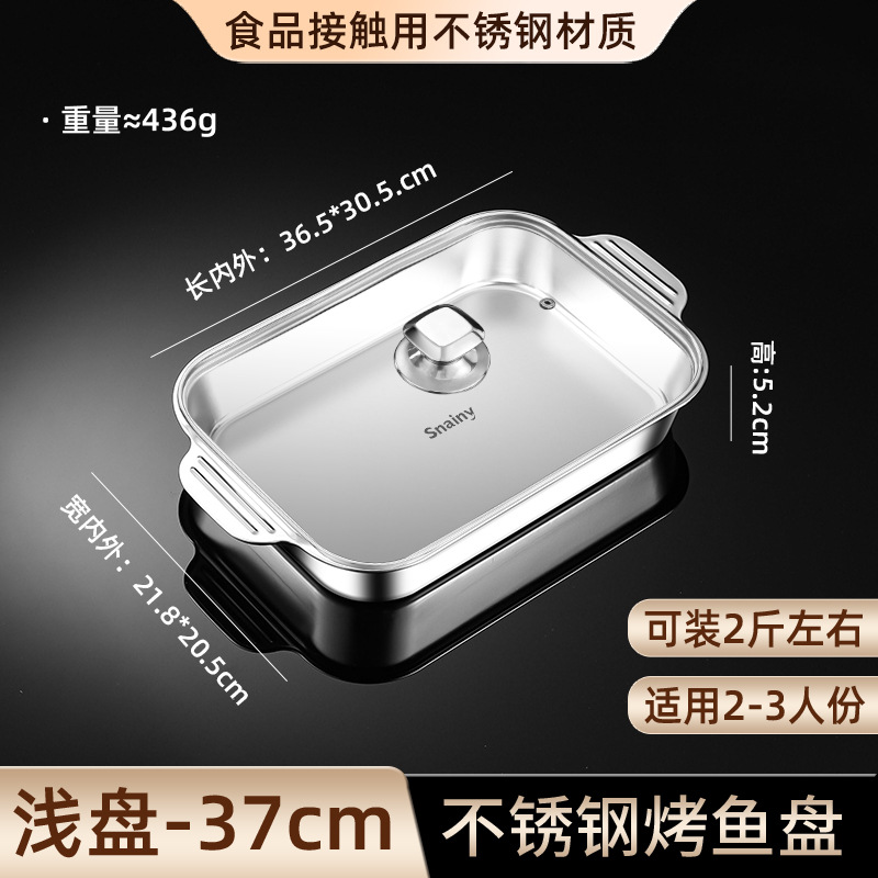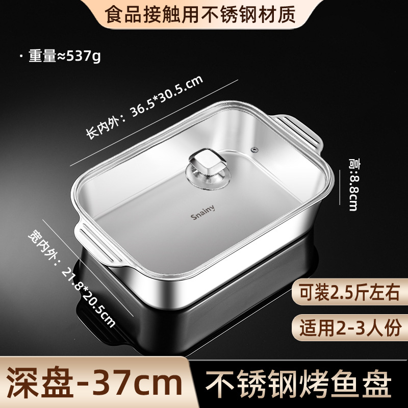• 신형 스테인리스 구이용 생선 트레이, 깊은 버전 - 37cm + 방폭 유리 뚜껑