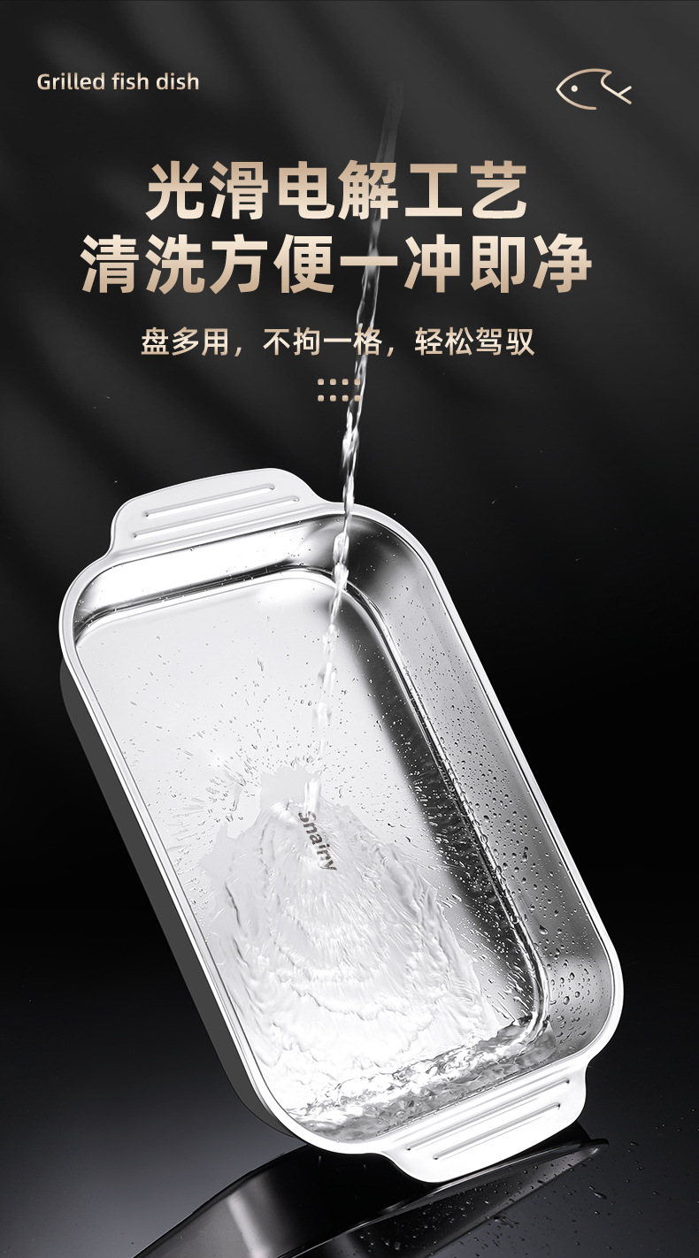 • 신형 스테인리스 생선구이 접시 얕은 스타일 - 특대 사이즈 45cm