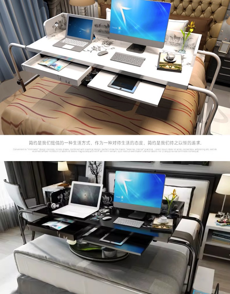 도매 간단한 더블 텔레스코픽 침대 이동식 리프팅 노트북 데스크탑 데스크 가정용 게으른 크로스 베드 소형스토어 가기