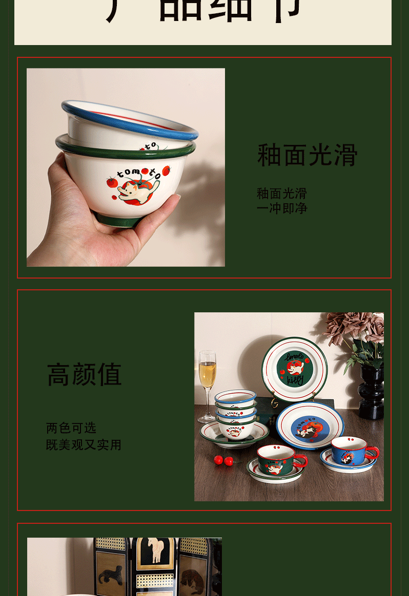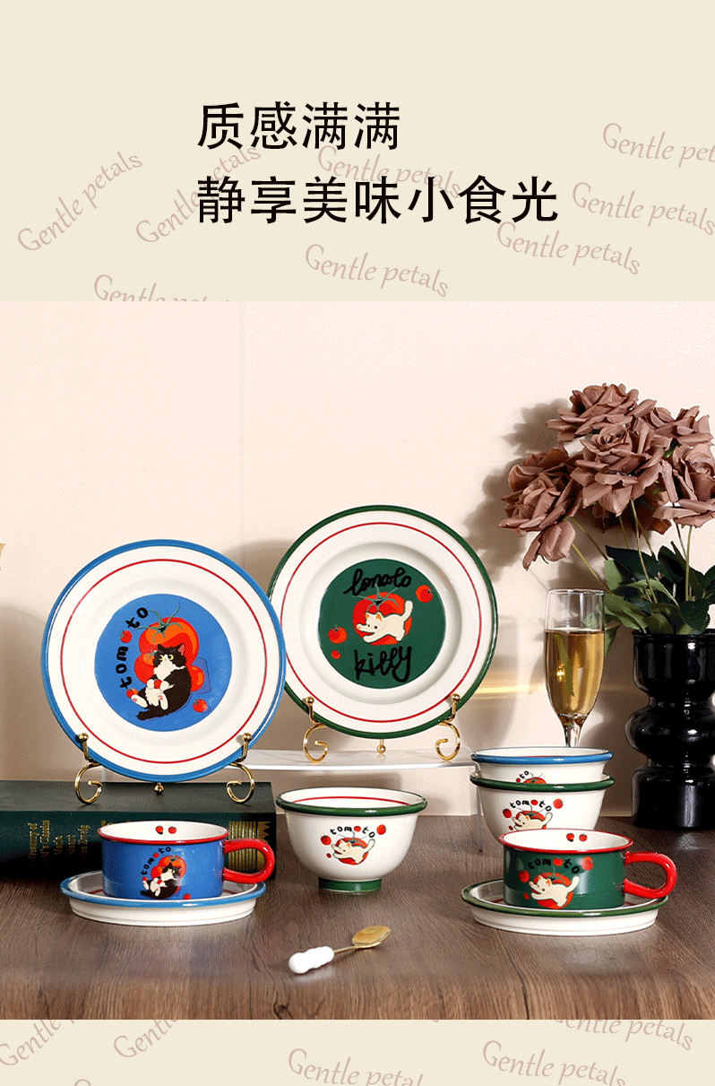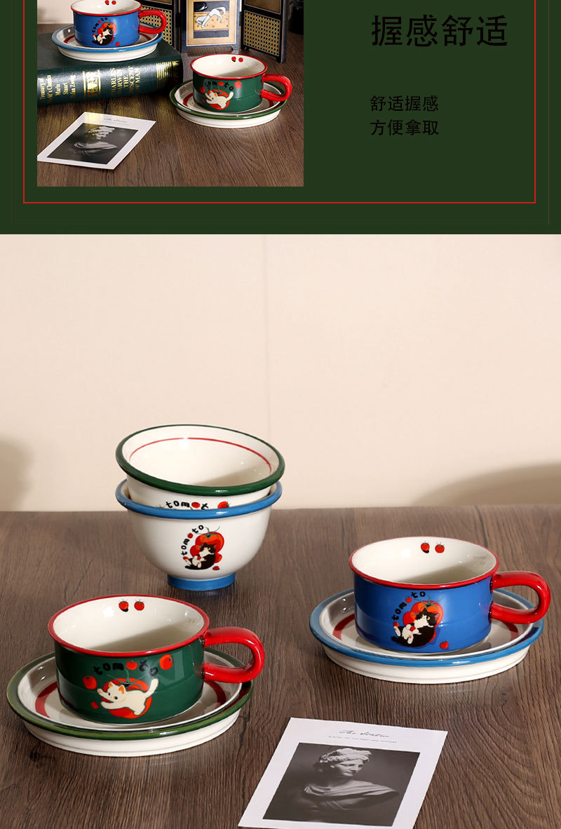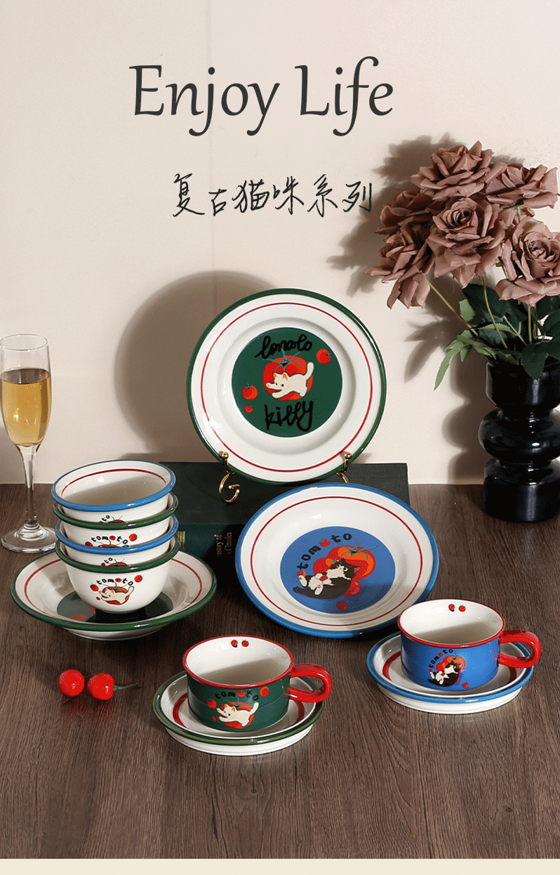 레트로 고양이 세라믹 식기 가정용 고급 그릇과 접시 세트 신혼 1인 또는 2인 식사 커플 밥 그릇 선물스토어 가기