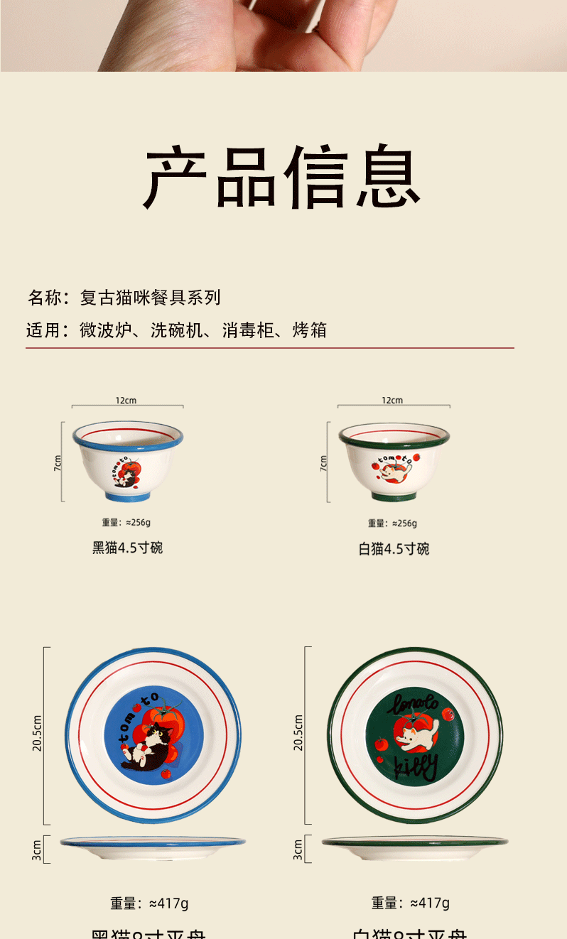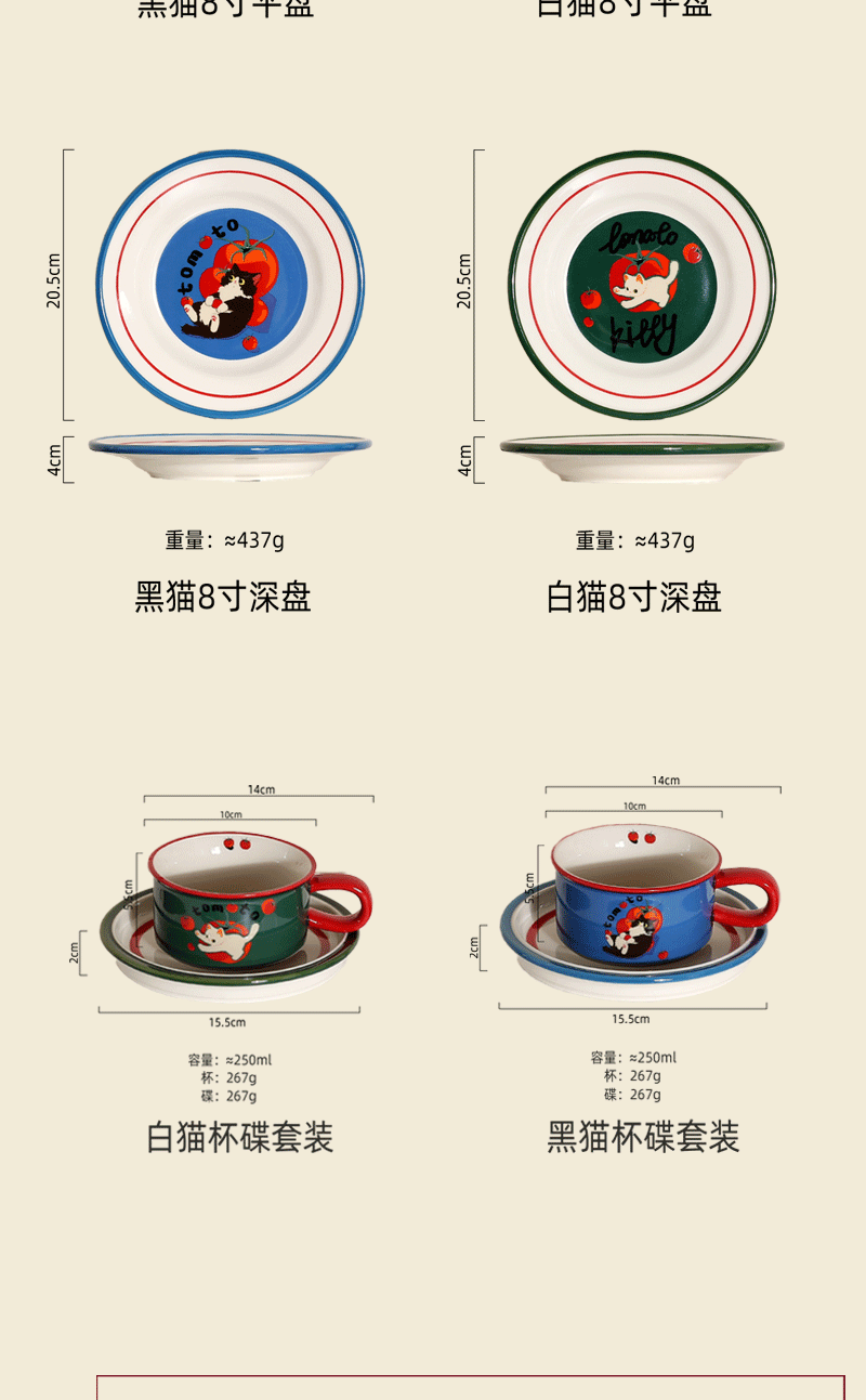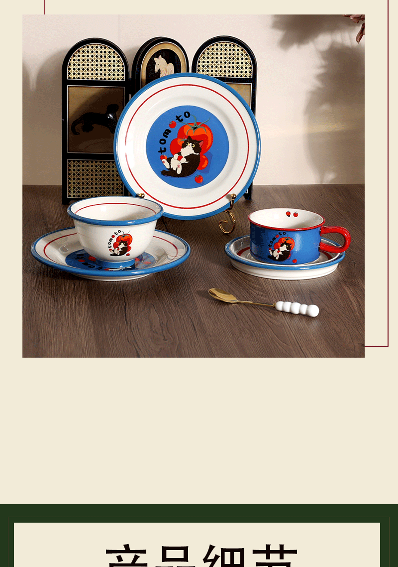 레트로 고양이 세라믹 식기 가정용 고급 그릇과 접시 세트 신혼 1인 또는 2인 식사 커플 밥 그릇 선물스토어 가기