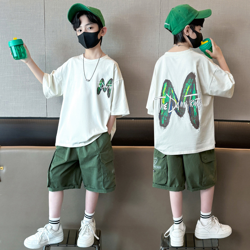남아 여름옷 세트 2026 신상 중대형 아동 남아 여름 얇은 투피스 세트 아동용 트렌디하고 멋진 반팔 의류