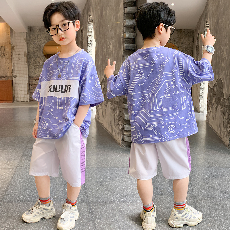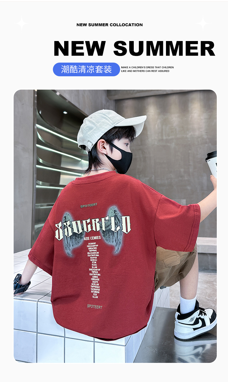 남아 여름옷 세트 2026 신상 중대형 아동 남아 여름 얇은 투피스 세트 아동용 트렌디하고 멋진 반팔 의류스토어 가기