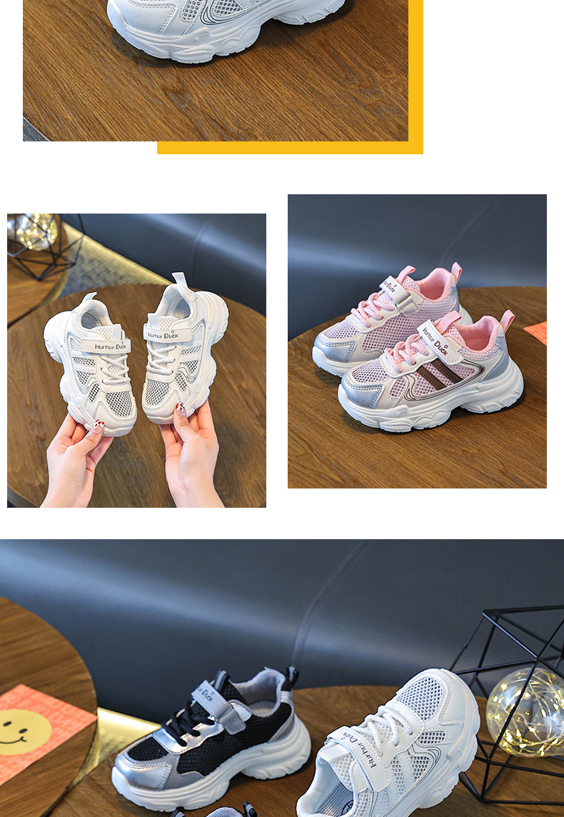 작은 노란색 오리 어린이 신발 소녀 스포츠 신발 2025 여름 어린이 통기성 메쉬 미끄럼 방지 중대형 어린이 캐주얼 아빠 신발