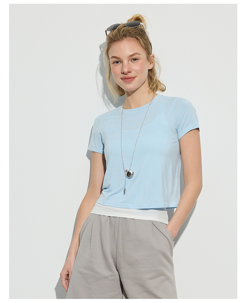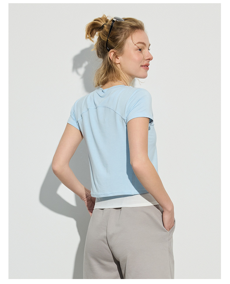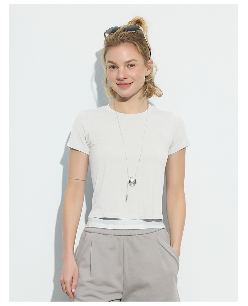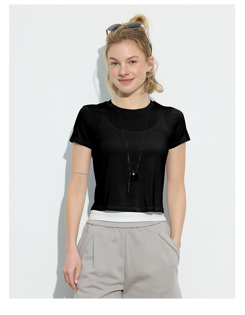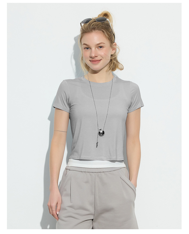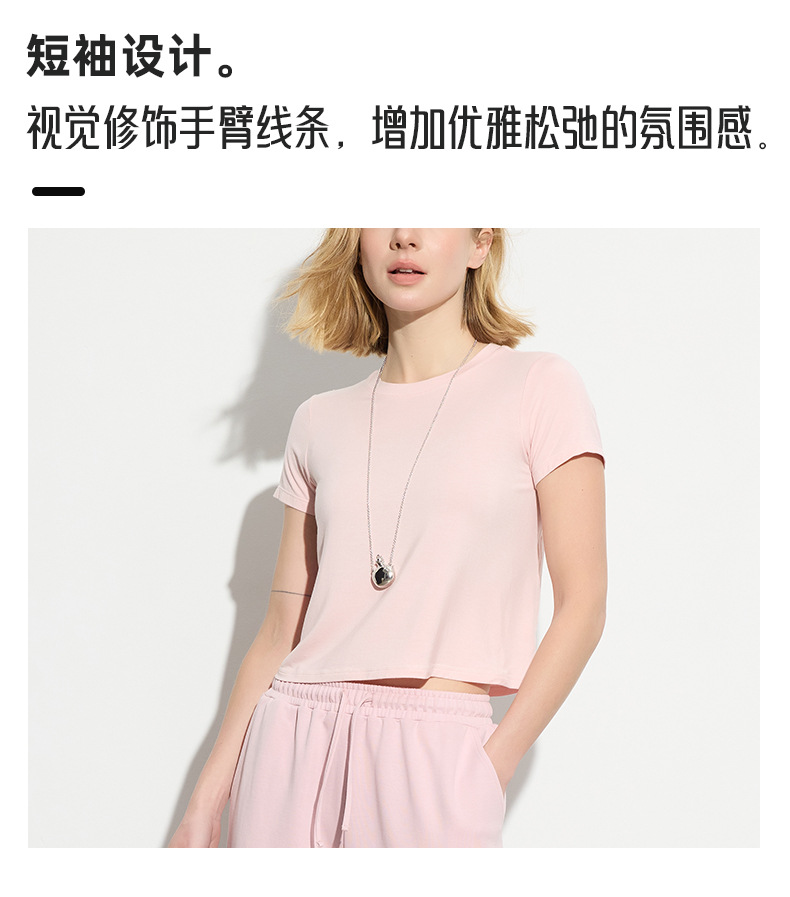 여성을위한 봄과 여름 새로운 요가 옷 텐셀 뽕나무 실크 복고풍 탑 스트레치 피트니스웨어 스포츠 및 레저 반팔 티셔츠