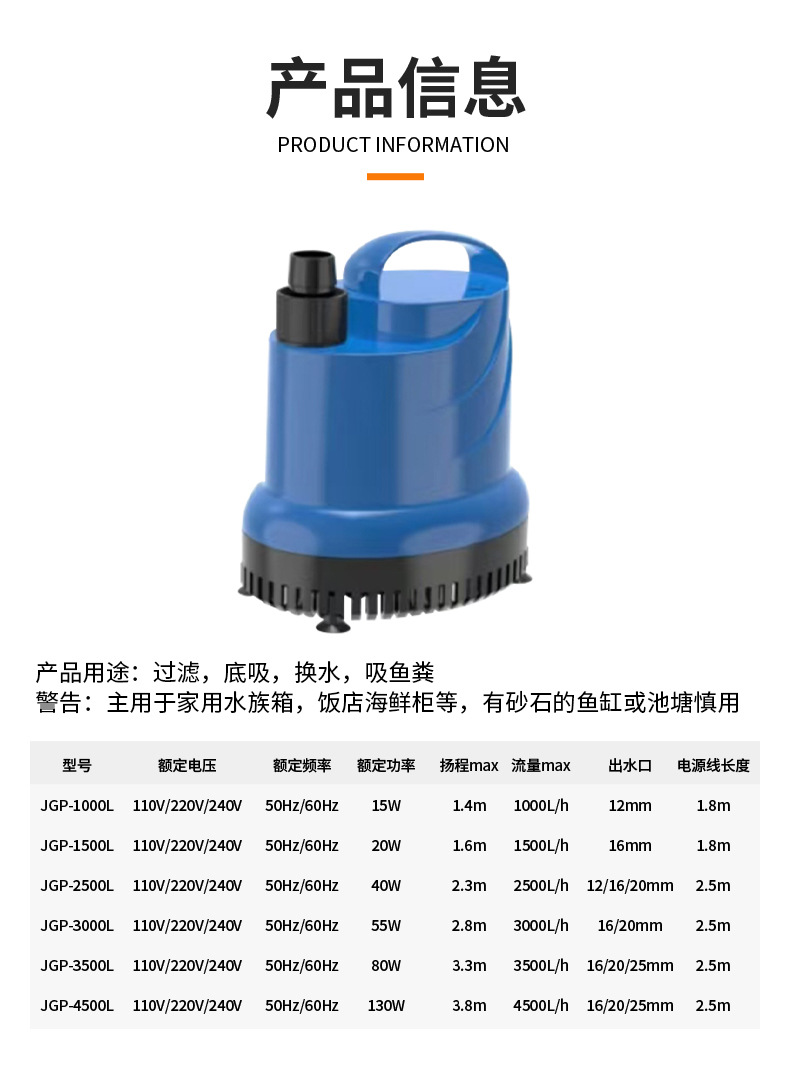 센센 JGP 시리즈 수중 펌프 바닥흡입식 수족관 펌프, 저소음 필터링, 물고기와 새우 배설물 흡입, 물교환 펌프