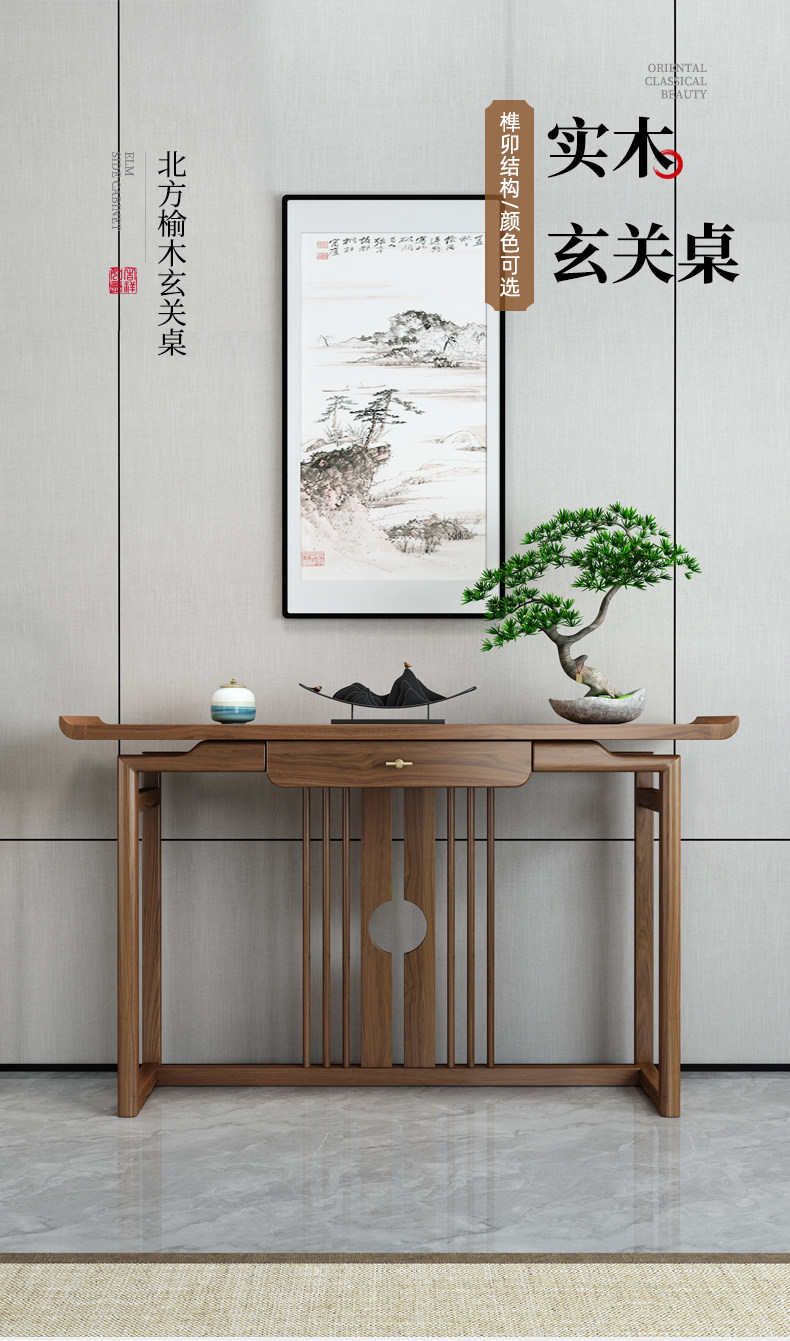 새로운 중국 스타일의 콘솔 테이블, 중국 스타일의 단단한 나무 간단한 테이블, 가벼운 럭셔리 입구, 선(禪) 느릅나무 콘솔 테이블, 콘솔 테이블스토어 가기