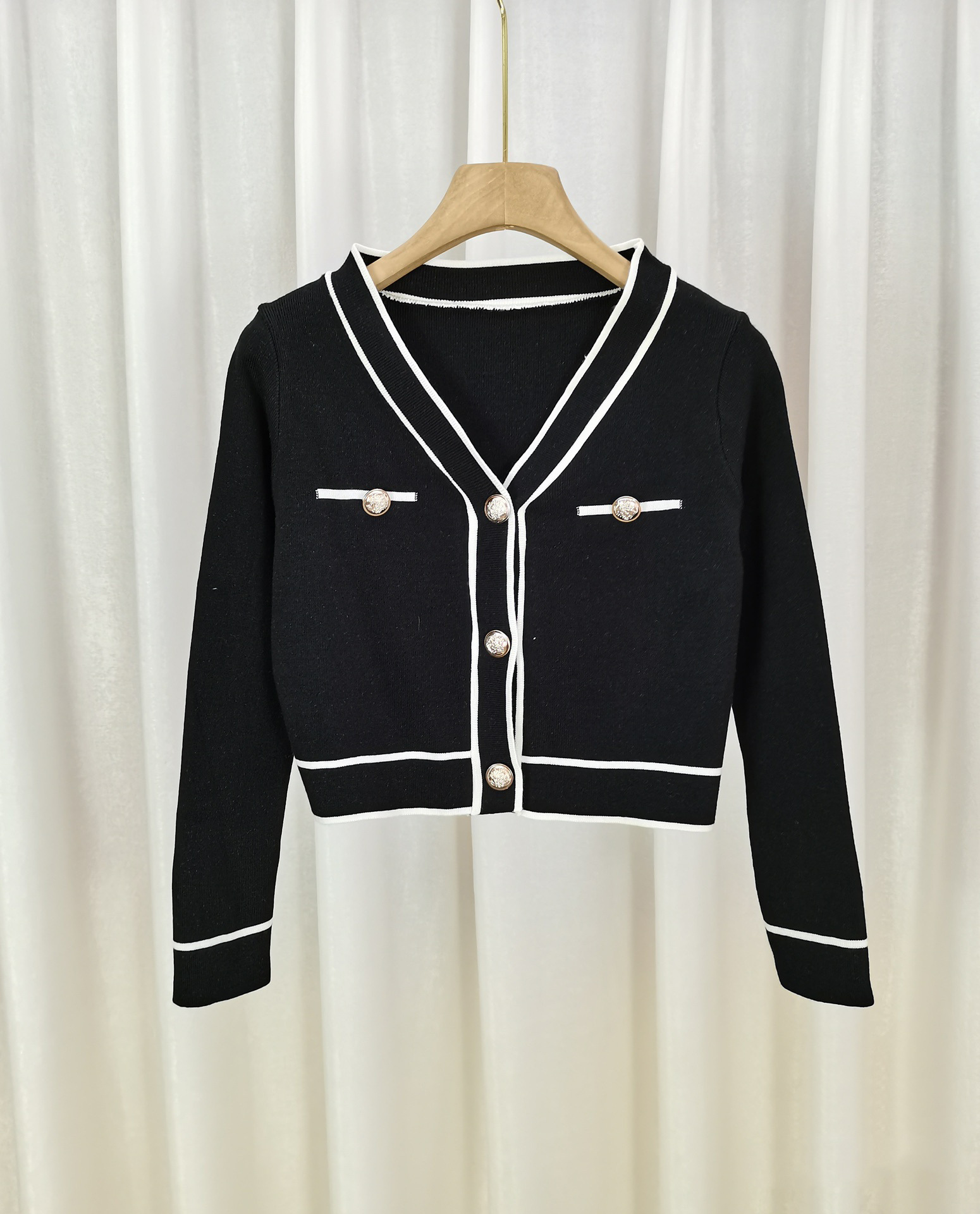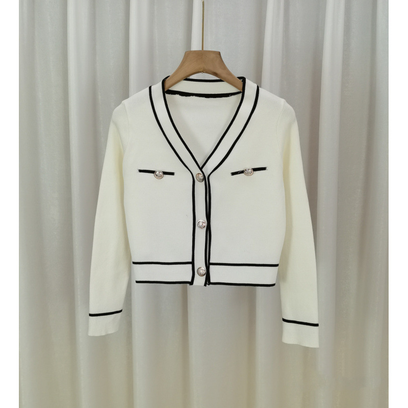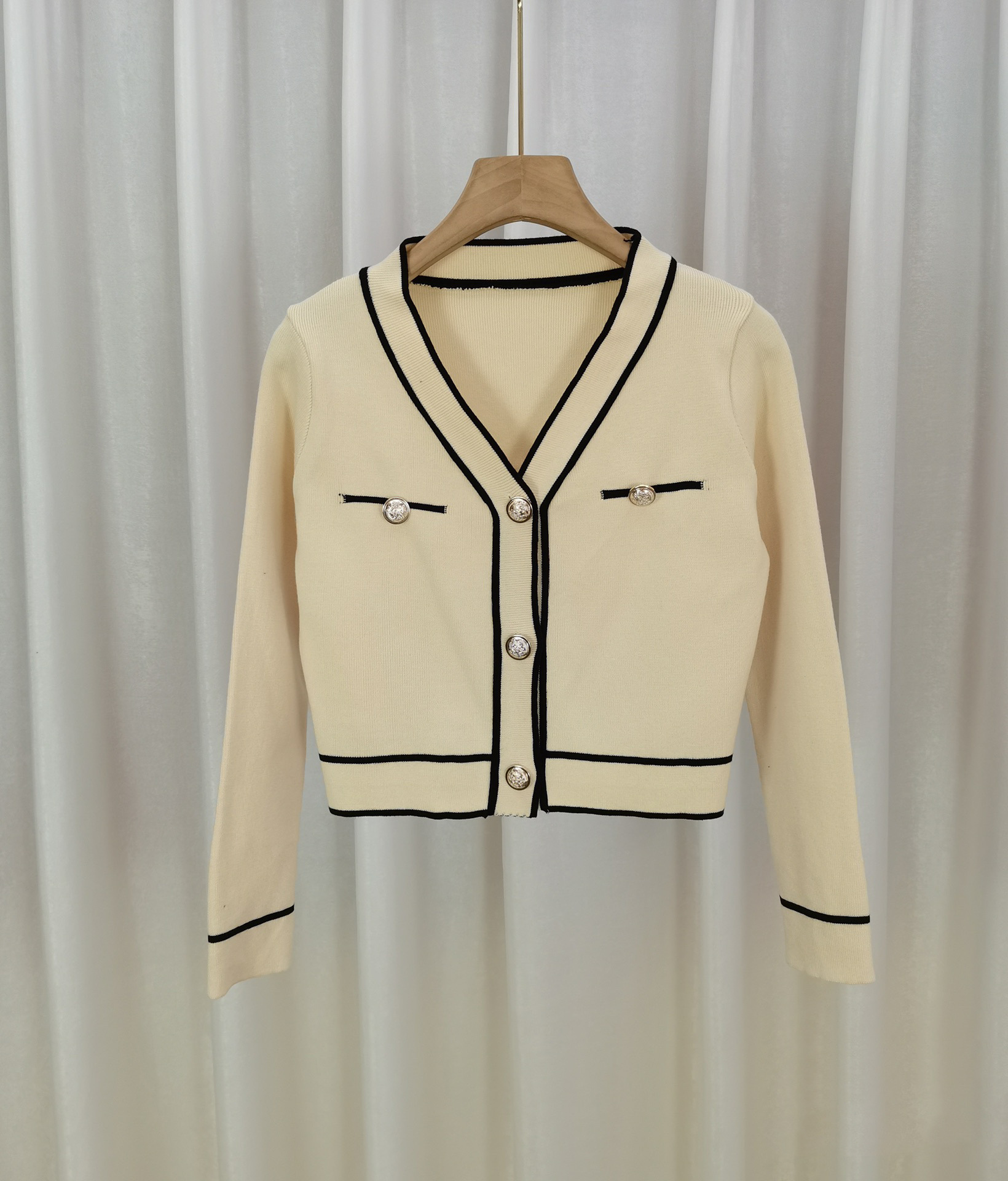 가을 겨울 여성을 위한 얇고 작은 향기로운 스타일의 브이넥 스웨터, 새로운 스타일, 패셔너블한 짧은 스웨터 가디건, 슬리밍 긴 소매