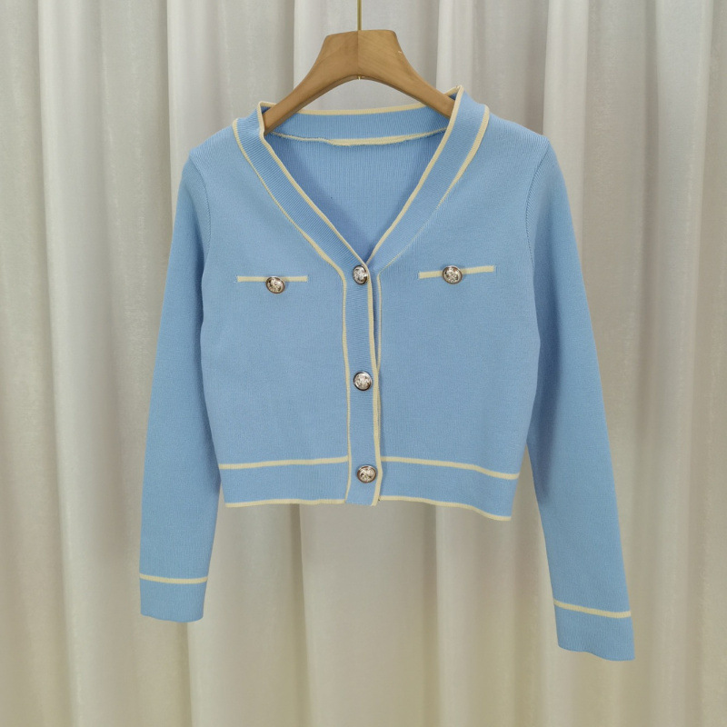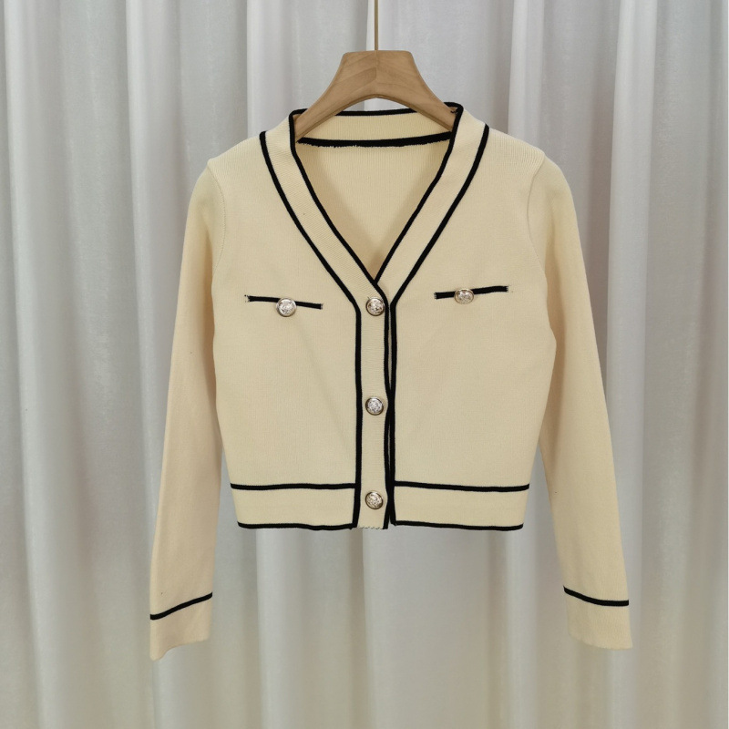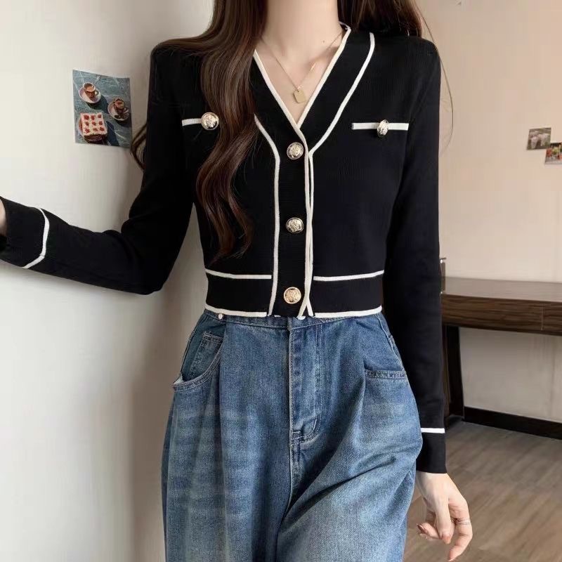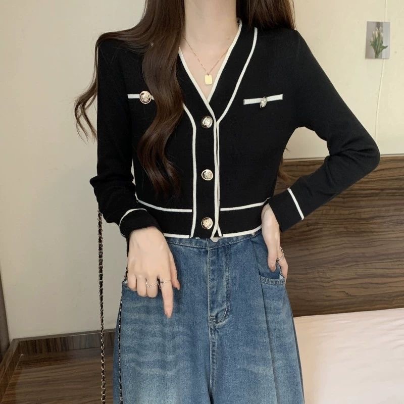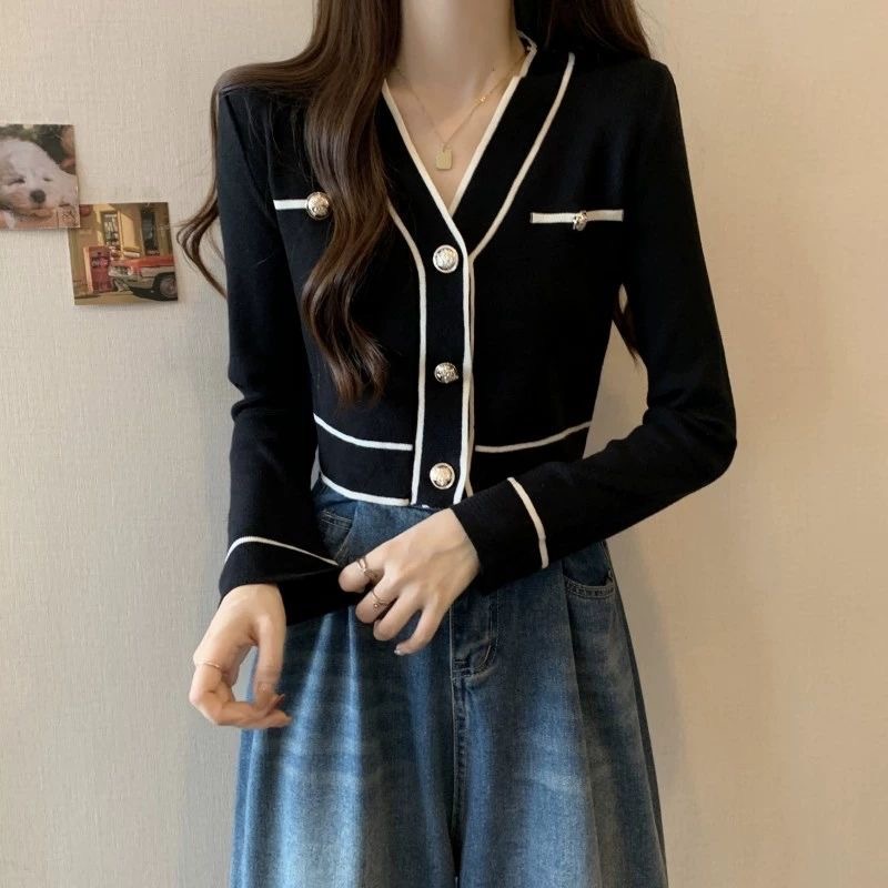 가을 겨울 여성을 위한 얇고 작은 향기로운 스타일의 브이넥 스웨터, 새로운 스타일, 패셔너블한 짧은 스웨터 가디건, 슬리밍 긴 소매스토어 가기