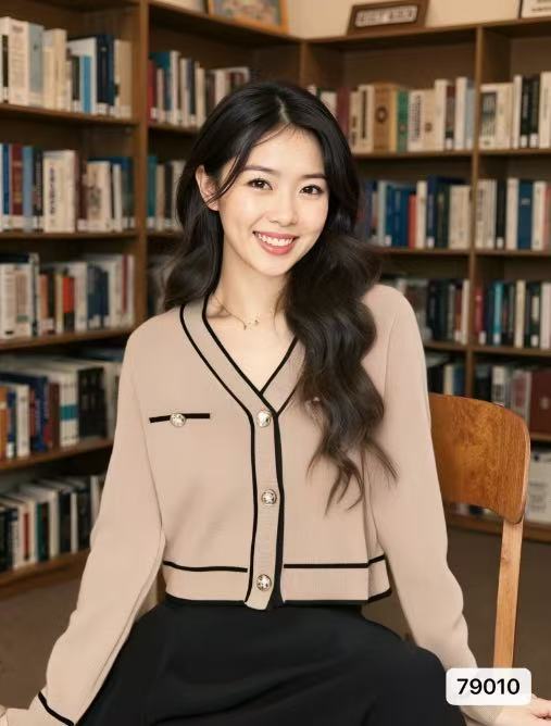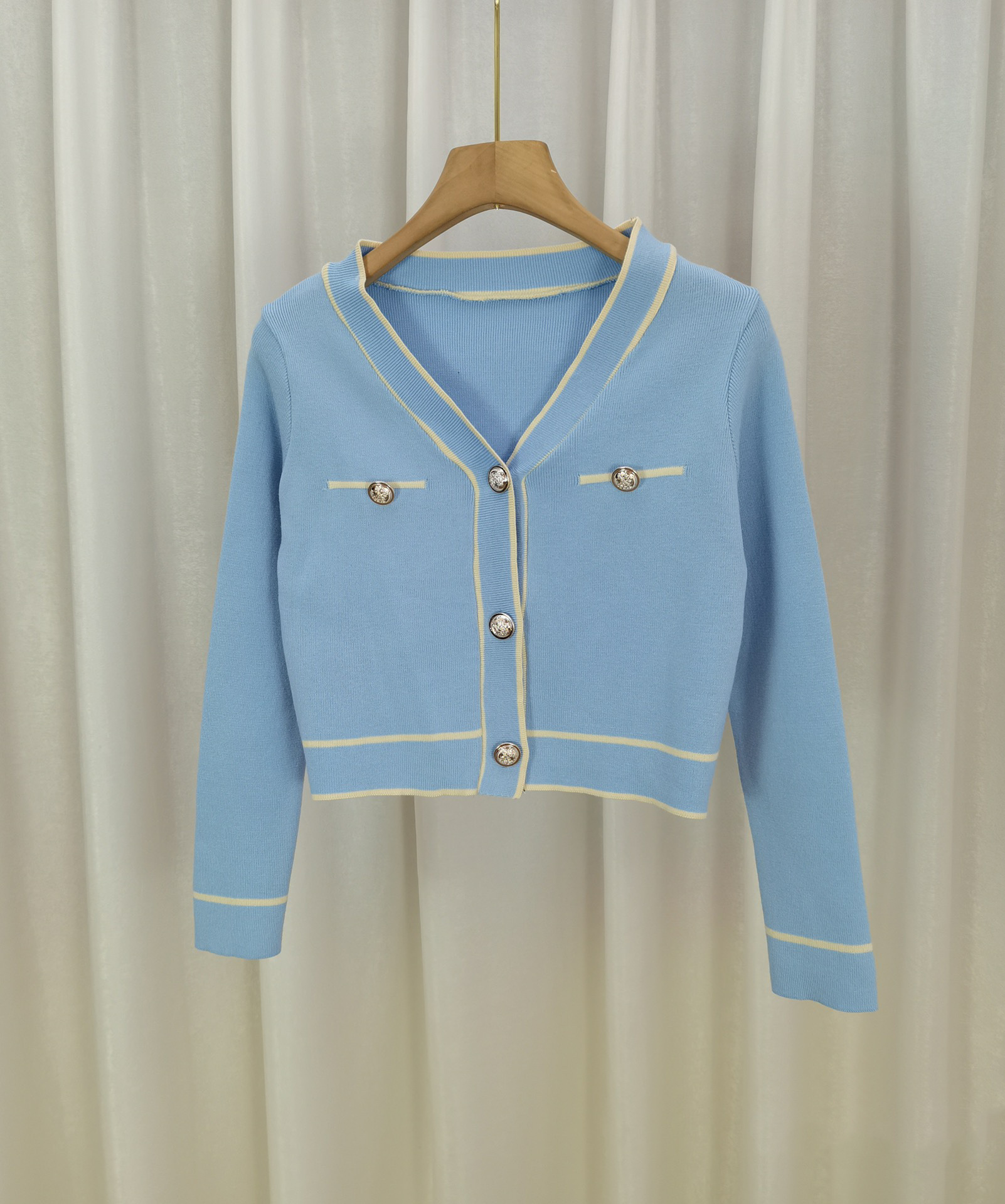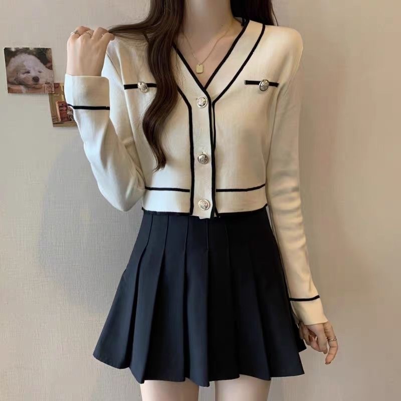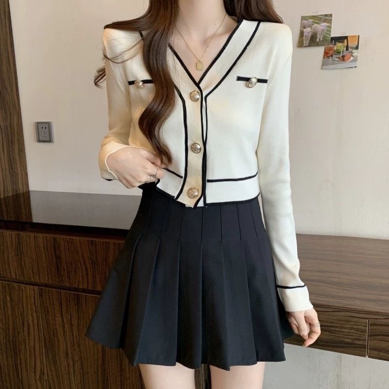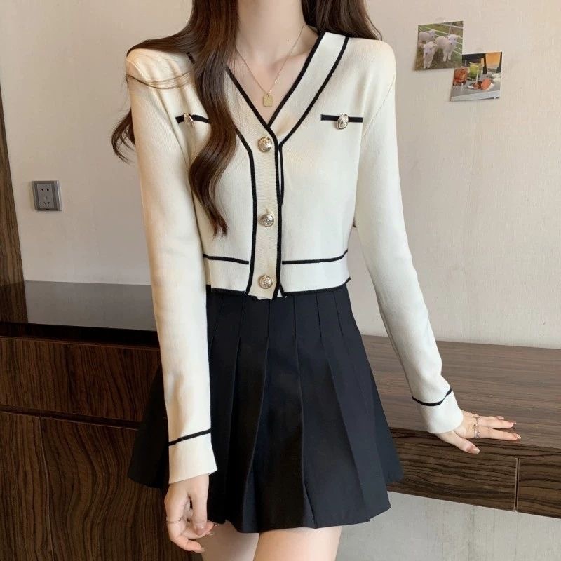 가을 겨울 여성을 위한 얇고 작은 향기로운 스타일의 브이넥 스웨터, 새로운 스타일, 패셔너블한 짧은 스웨터 가디건, 슬리밍 긴 소매스토어 가기
