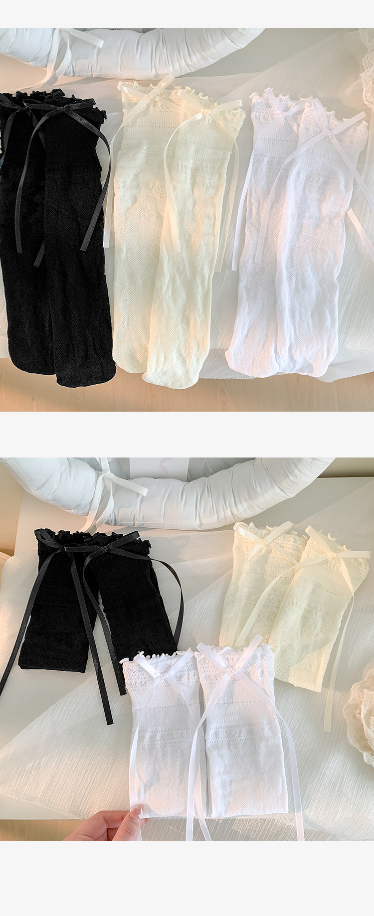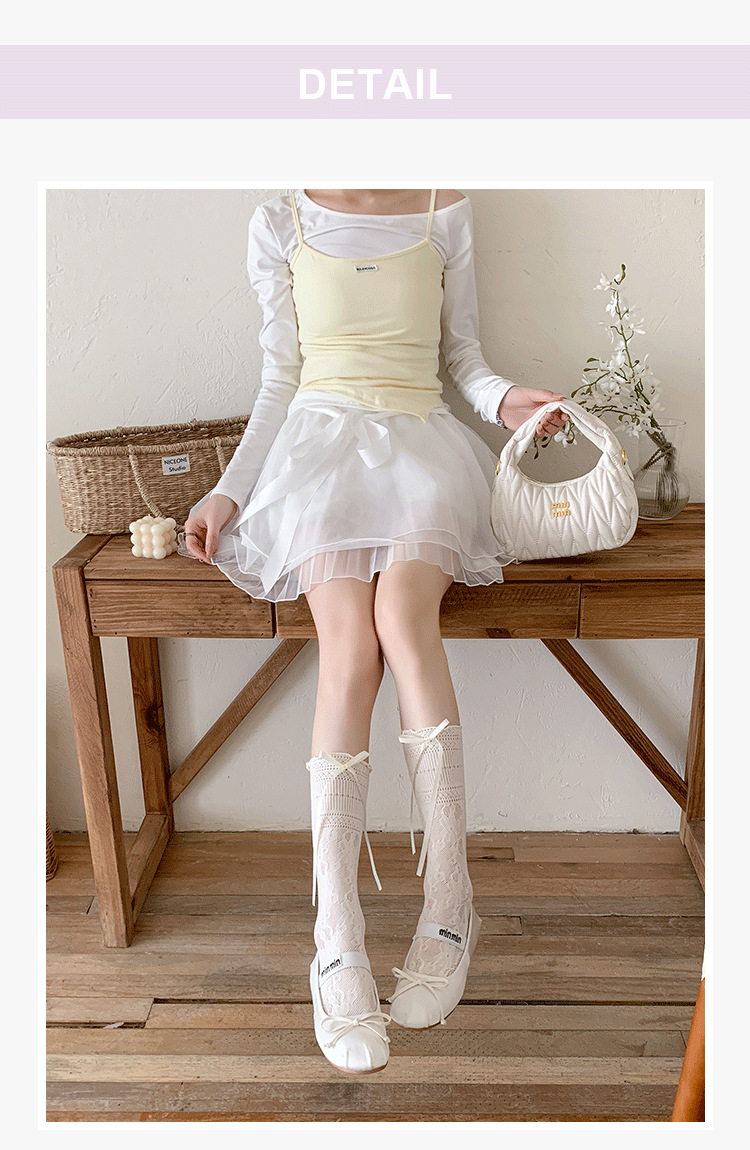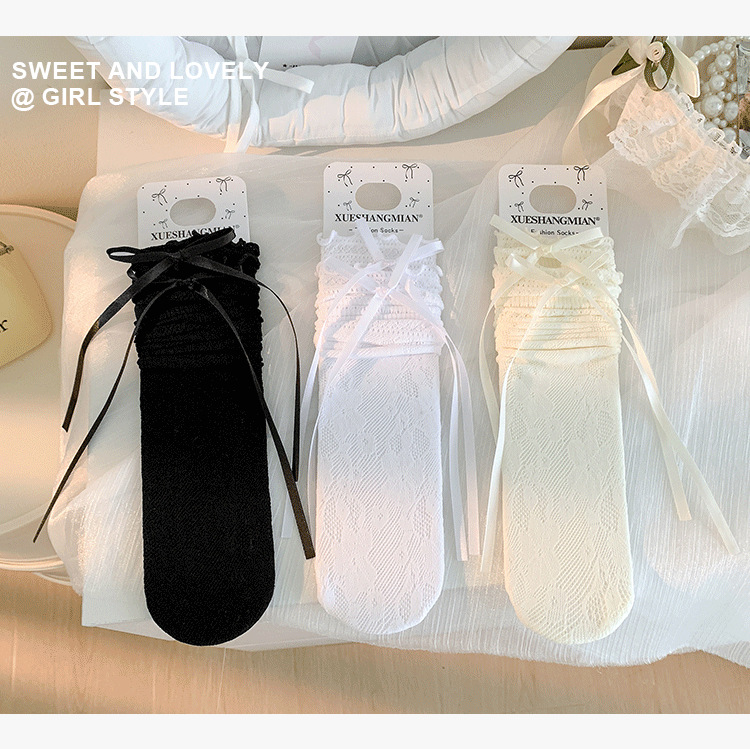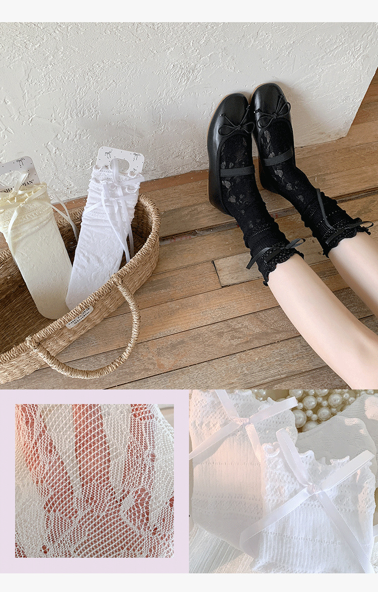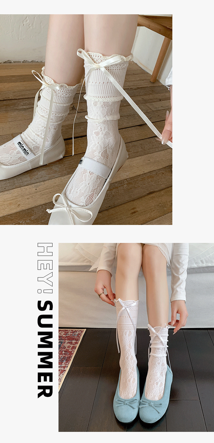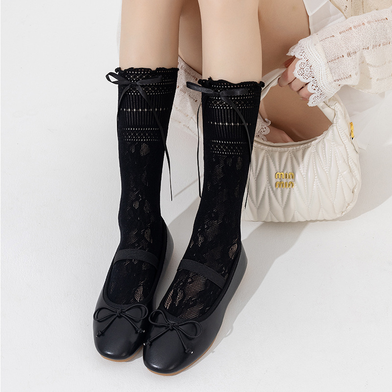 부츠 여전히면 여름 얇은 튜브 양말 편안한 통기성 레이스 중공 흑백 활 발레 바람 더미 양말