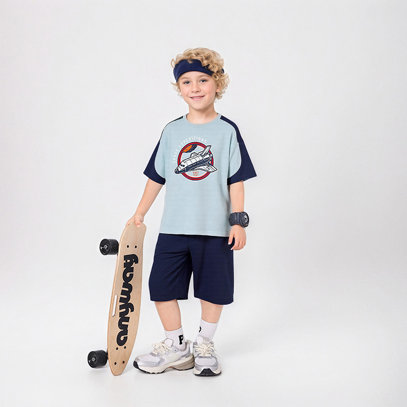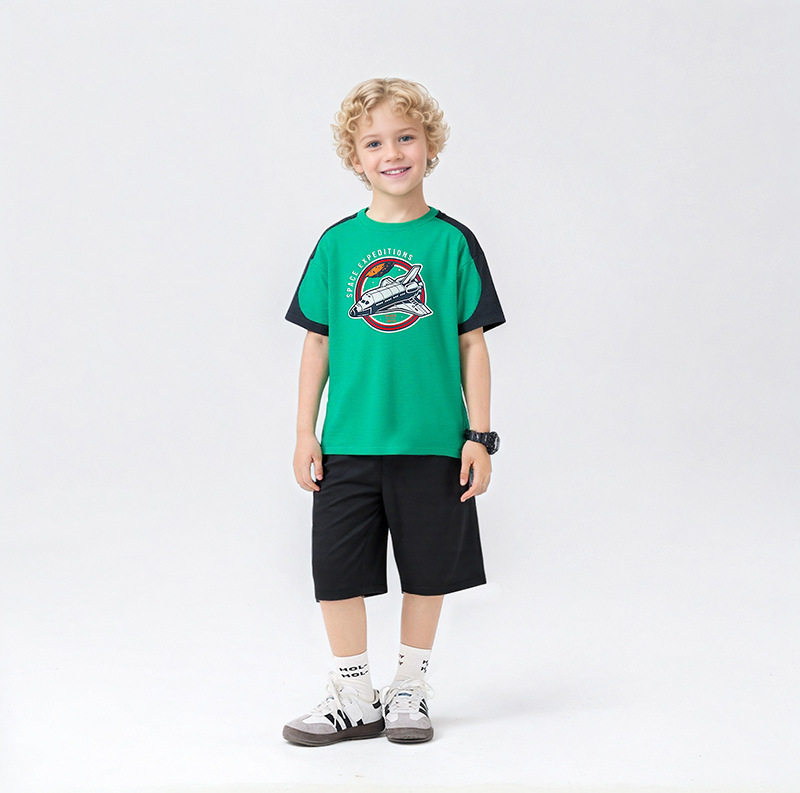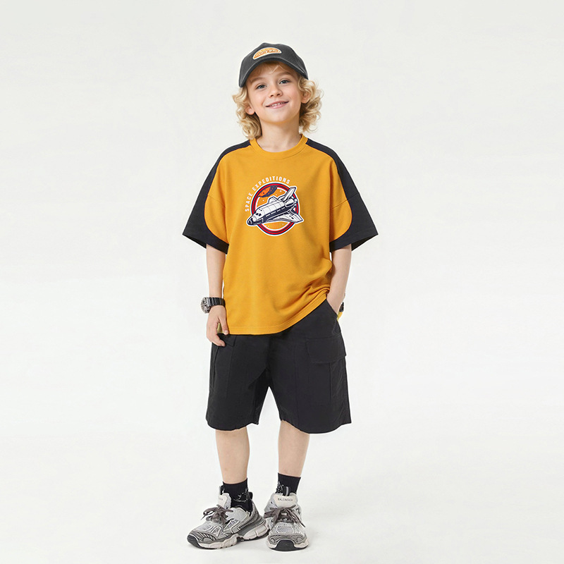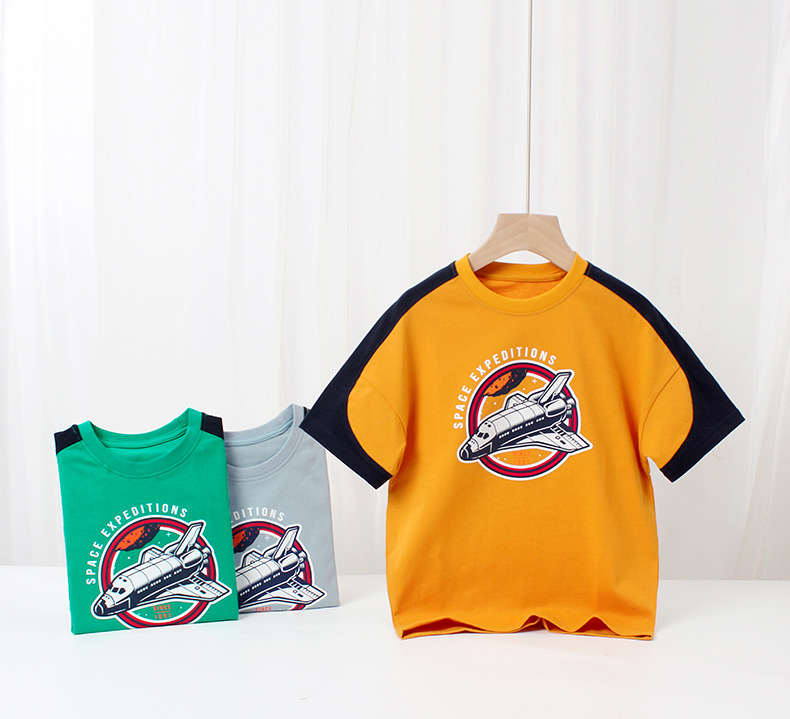 여름 어린이 의류 한국의 새로운 어린이 스포츠 짧은 소매 큰 어린이 어깨 드롭 바느질 빠른 건조 재킷 소년 티셔츠 도매스토어 가기