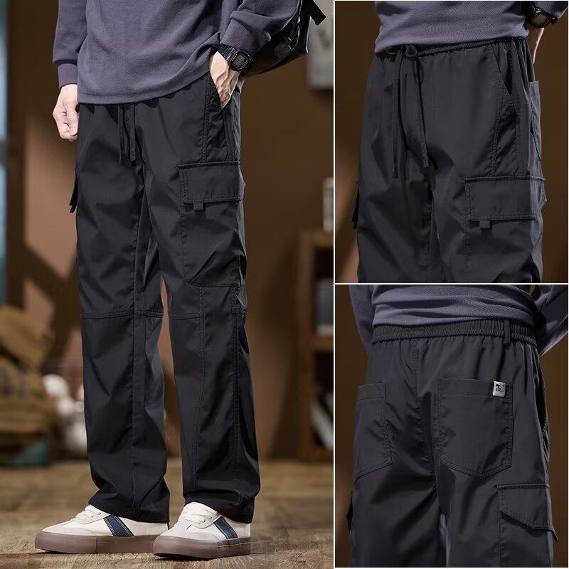 남성용 카고 바지 2025 봄과 가을 남성용 새로운 여름 얇은 스트레이트 레그 충전 바지 작업 내마모성 아메리칸 캐주얼 바지