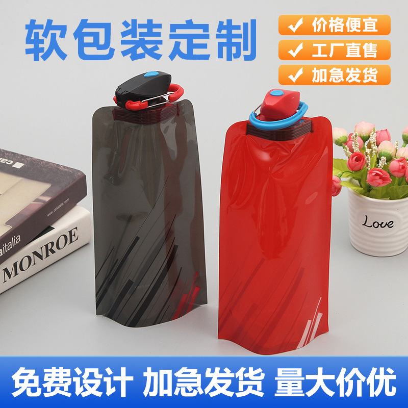 로고가 인쇄된 친환경 PE 접이식 물주머니, 야외 스포츠 등산, 휴대용 접이식 물병 노즐 가방