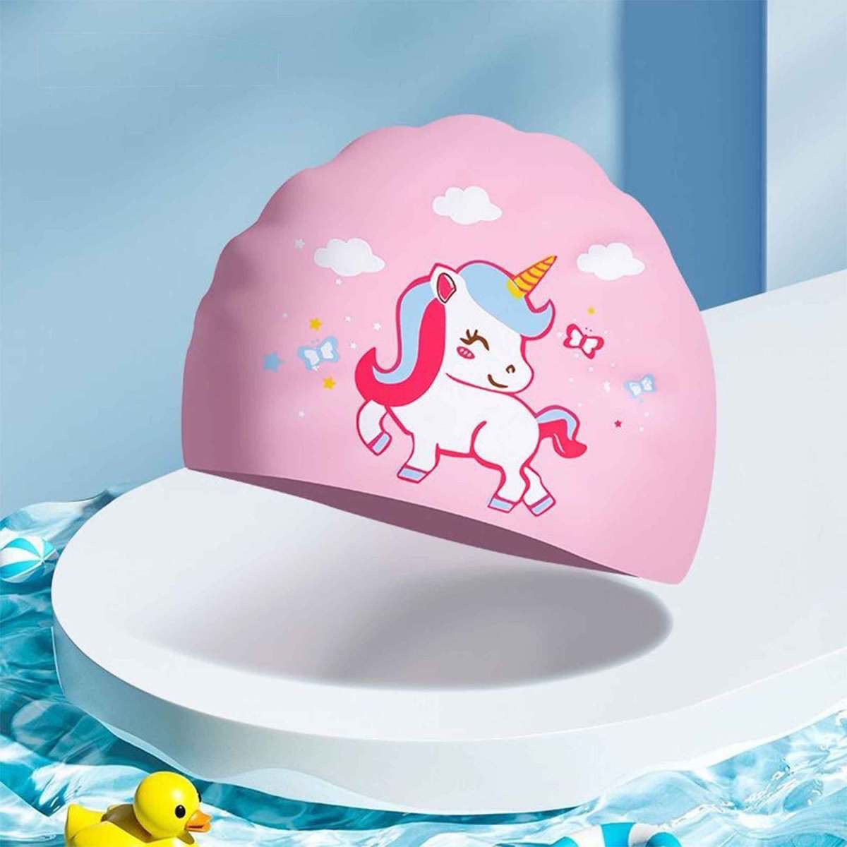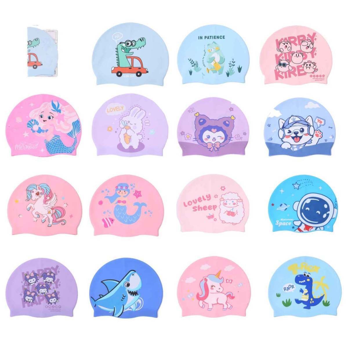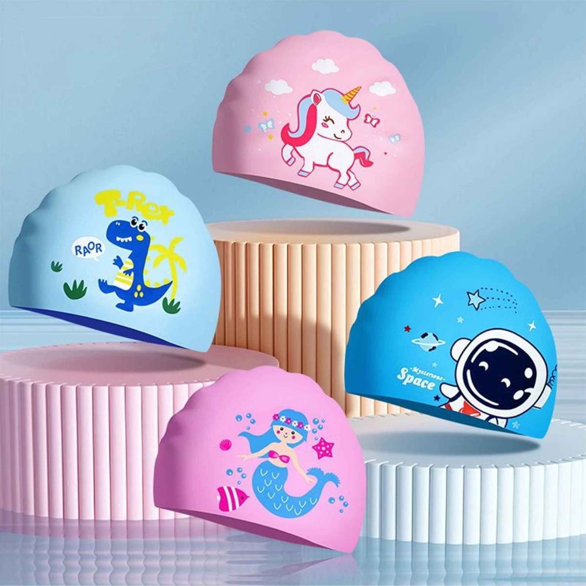 어린이 실리콘 만화 수영 모자 소년과 소녀 긴 머리 방수 귀 보호 머리 귀여운 수영 모자 수영 장비