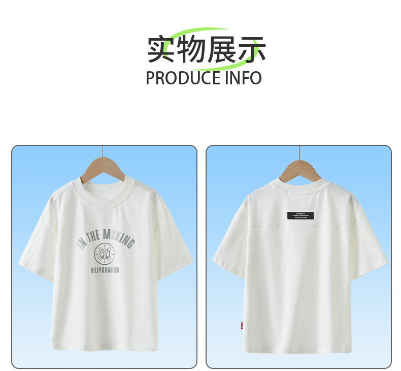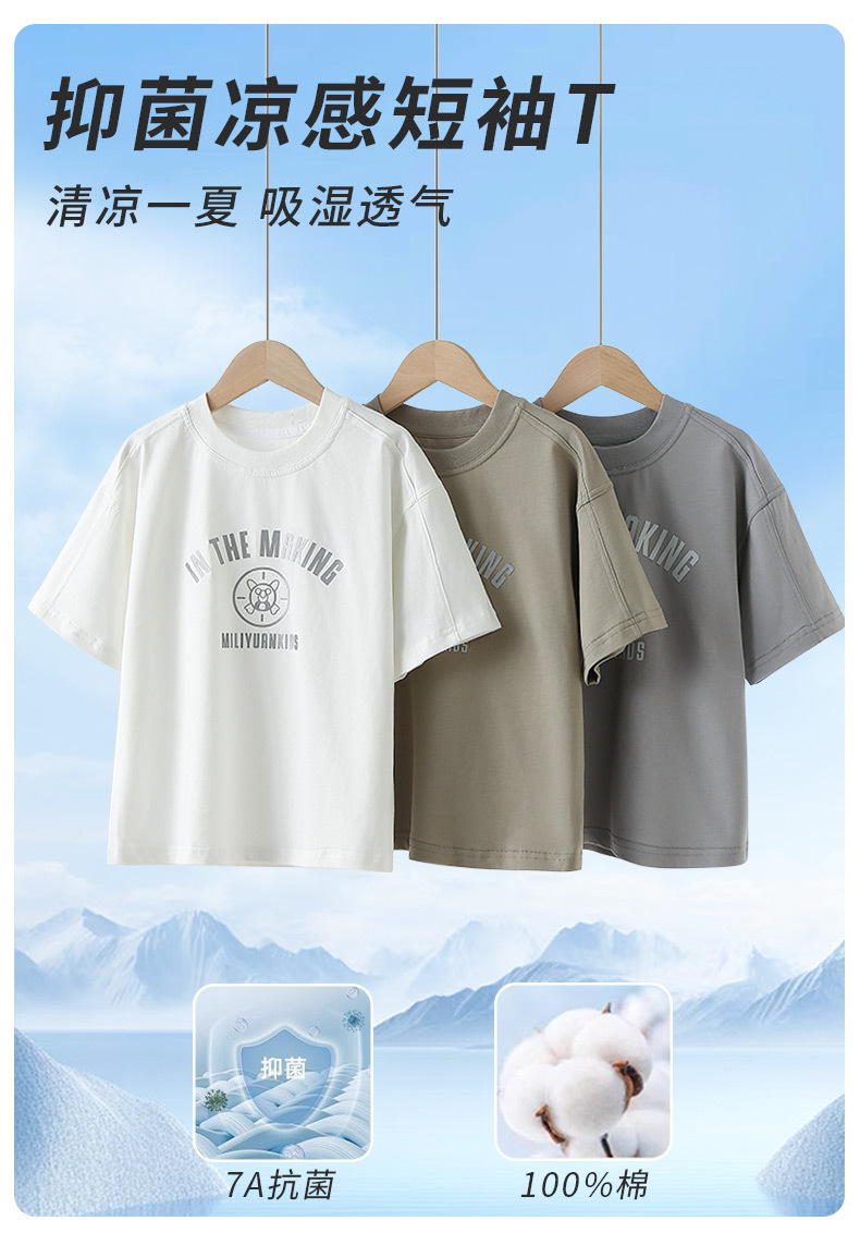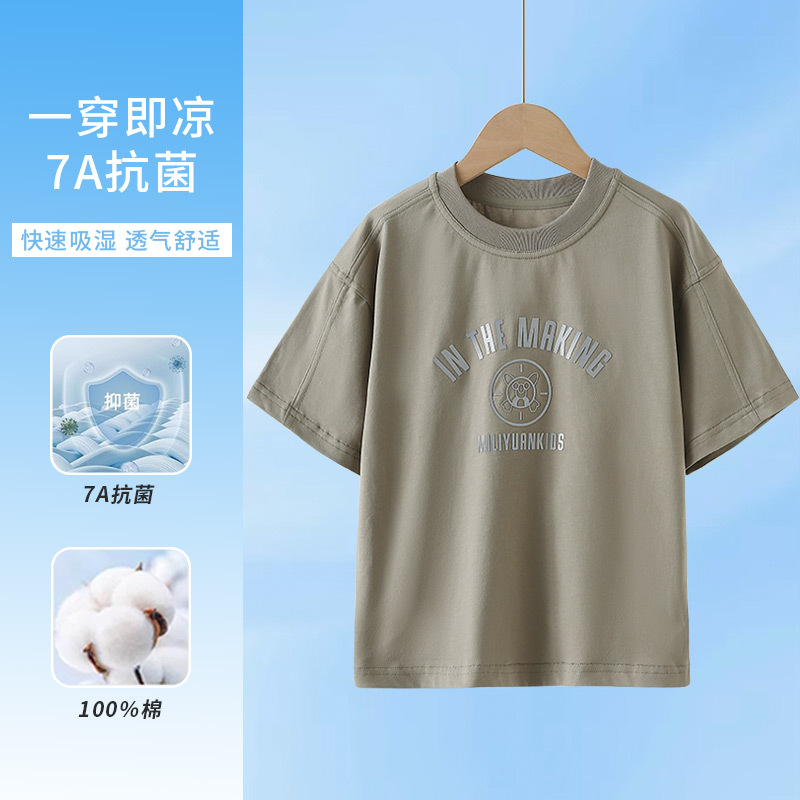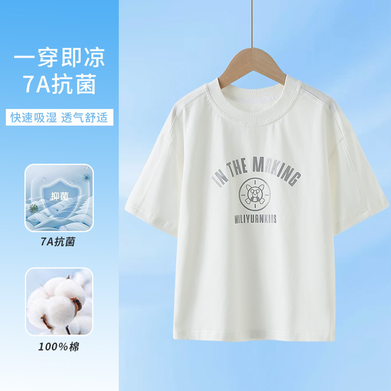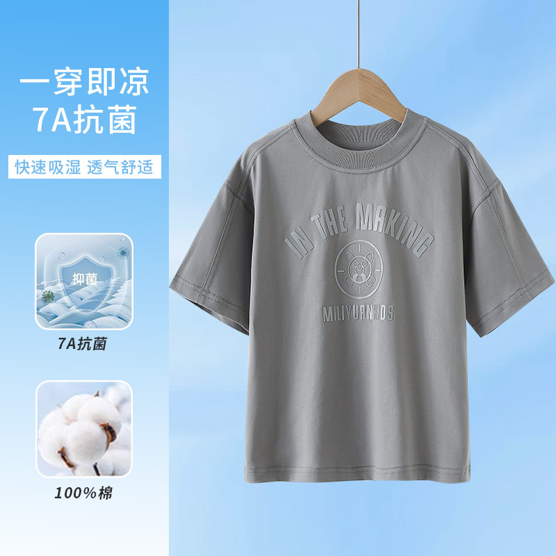 7A 항균 중대형 아동용 남아 반팔 티셔츠 순면 아동용 여름 반팔 여름용 얇은 신상 상의 아동복스토어 가기