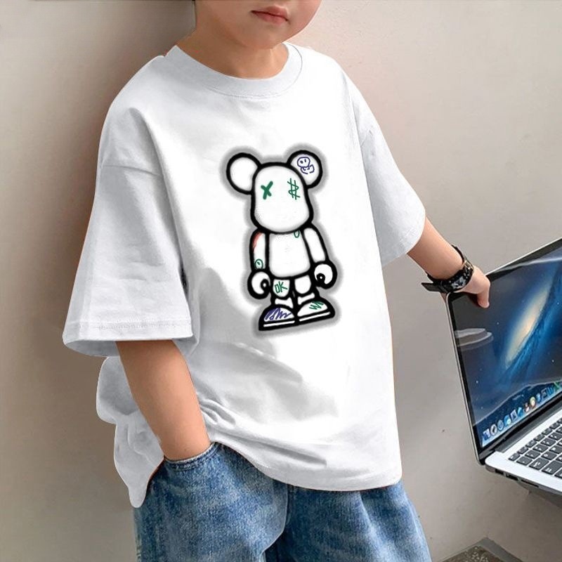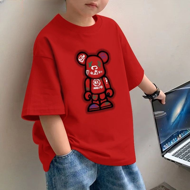 순수 코튼 아동 의류 소년 여름 반팔 티셔츠 2025 새로운 솔리드 컬러 아동 잘 생긴 캐주얼 반팔 탑스토어 가기