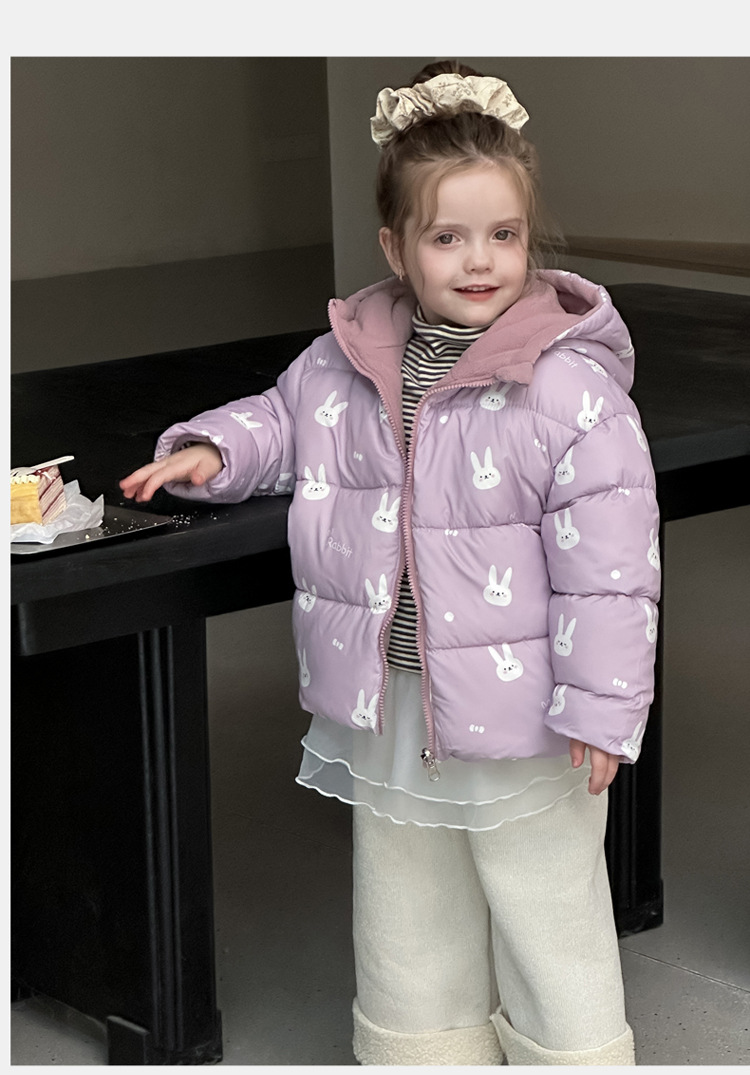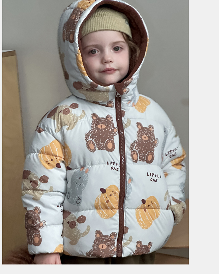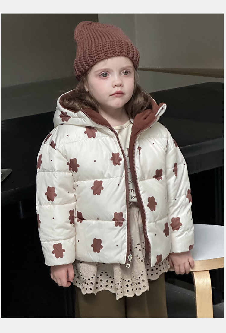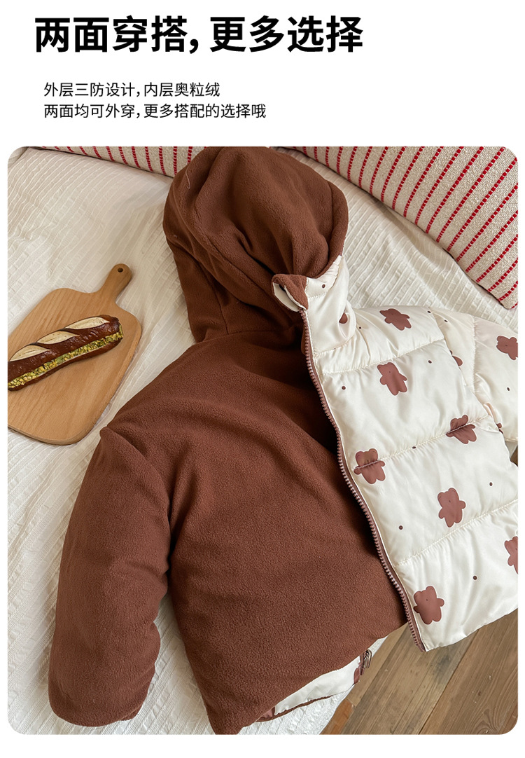 아마존 가을과 겨울 새로운 양면 다운 면 패딩 재킷 어린이 두꺼운 기모 어린이 짧은 코트 크로스 보더 라이브