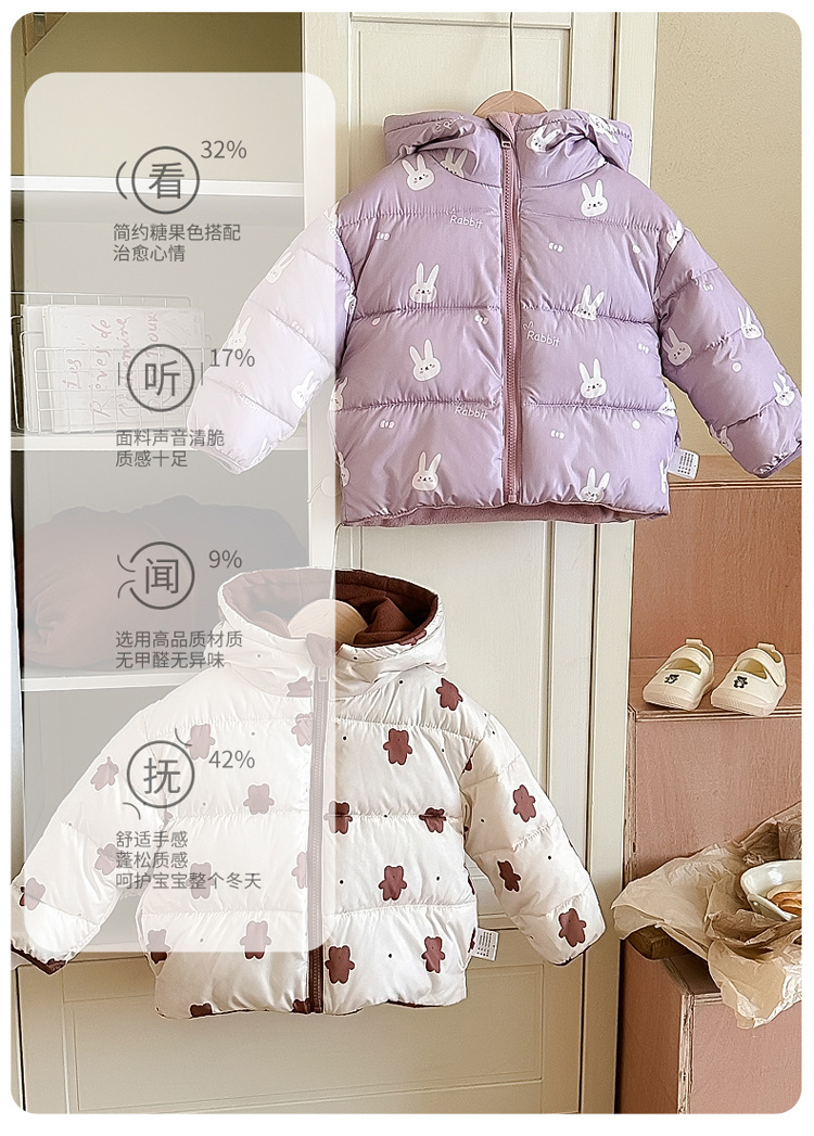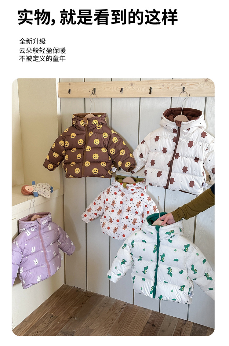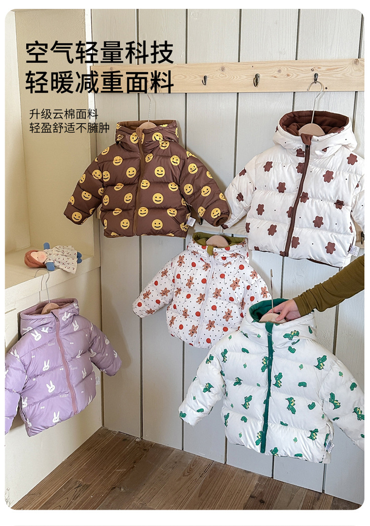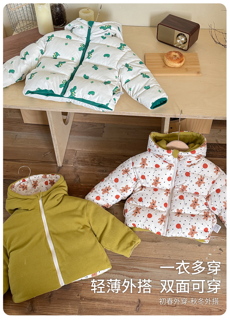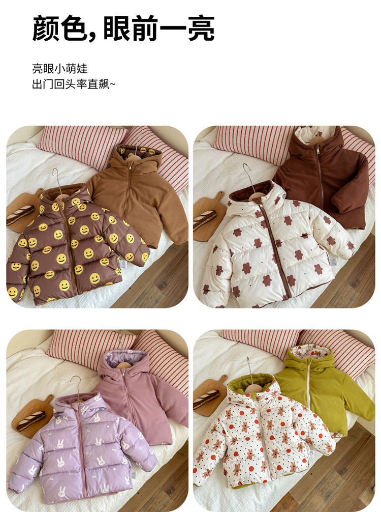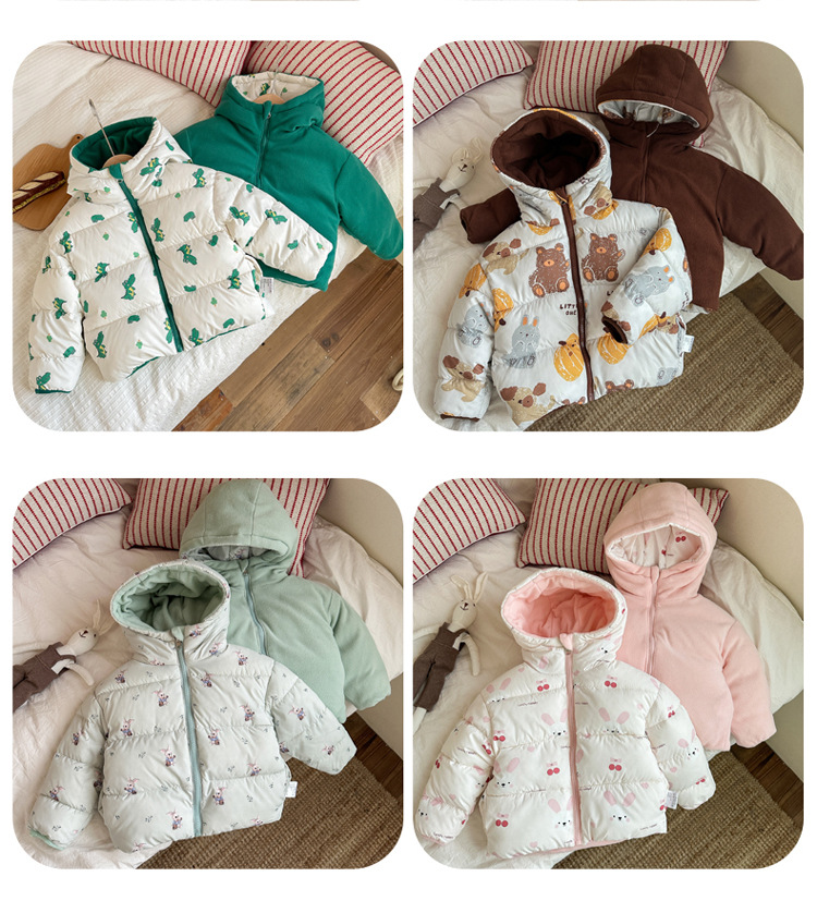 아마존 가을과 겨울 새로운 양면 다운 면 패딩 재킷 어린이 두꺼운 기모 어린이 짧은 코트 크로스 보더 라이브스토어 가기