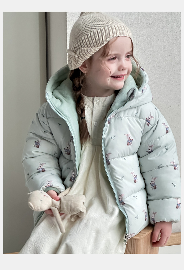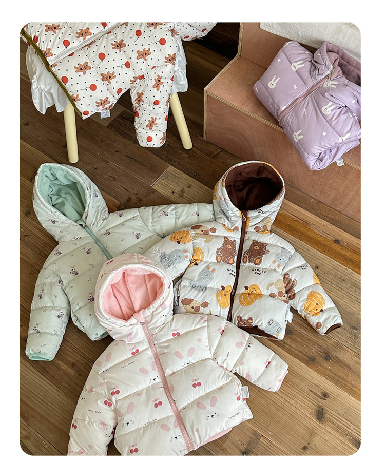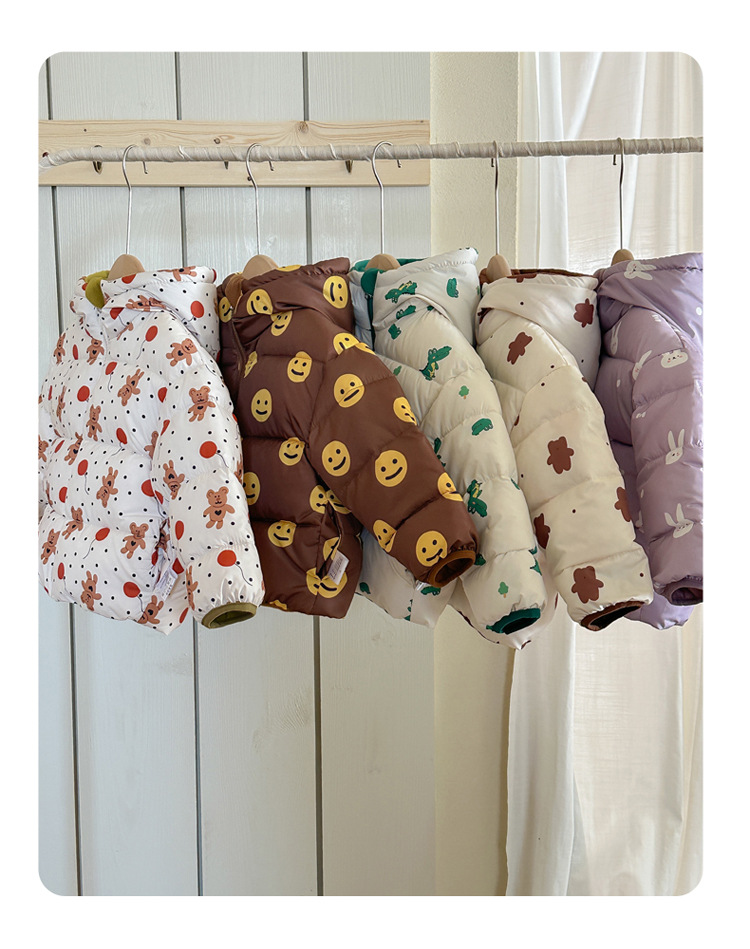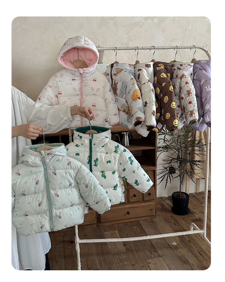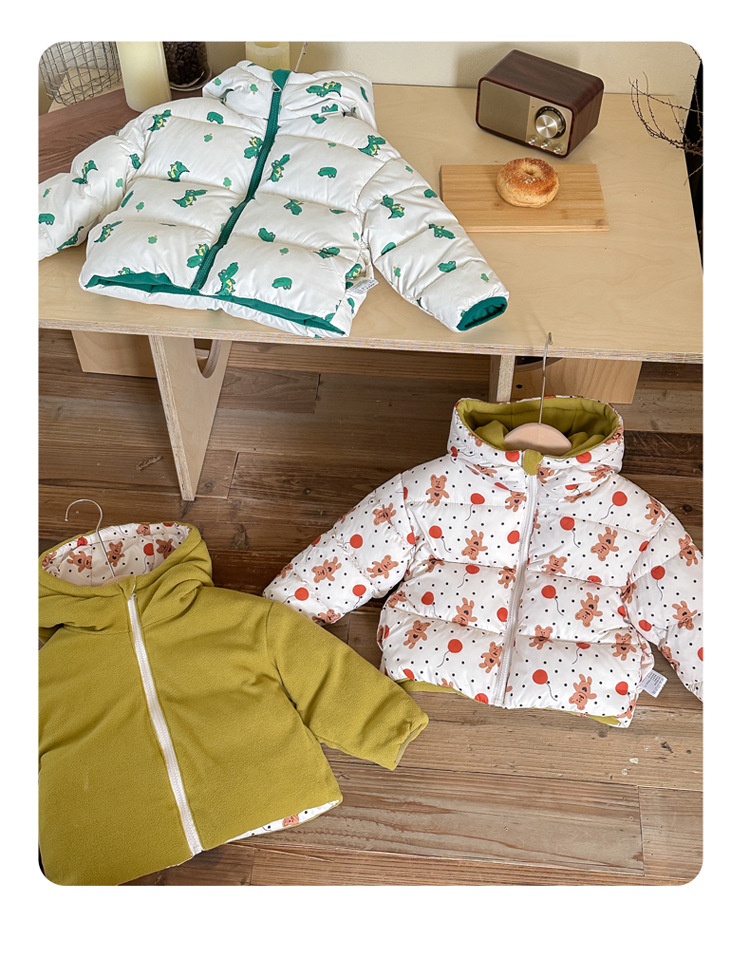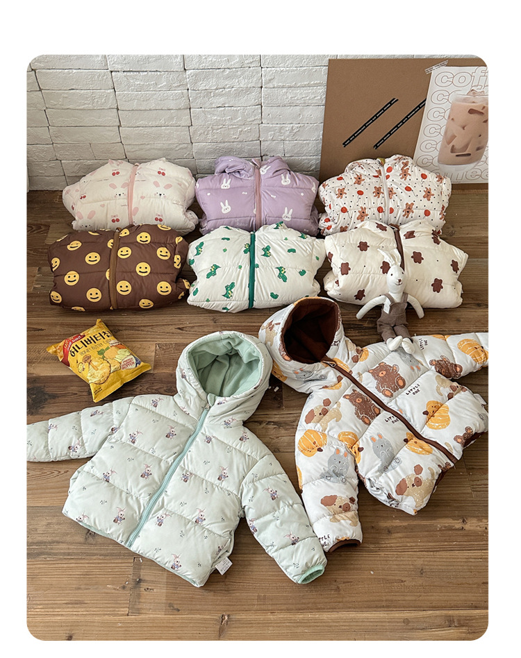 아마존 가을과 겨울 새로운 양면 다운 면 패딩 재킷 어린이 두꺼운 기모 어린이 짧은 코트 크로스 보더 라이브스토어 가기