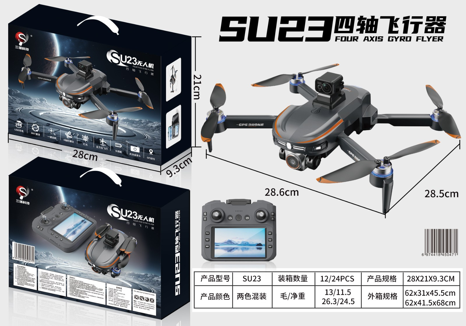 产品功能:大屏、无刷电机、双摄像头、GPS、电调摄像头、避障、
