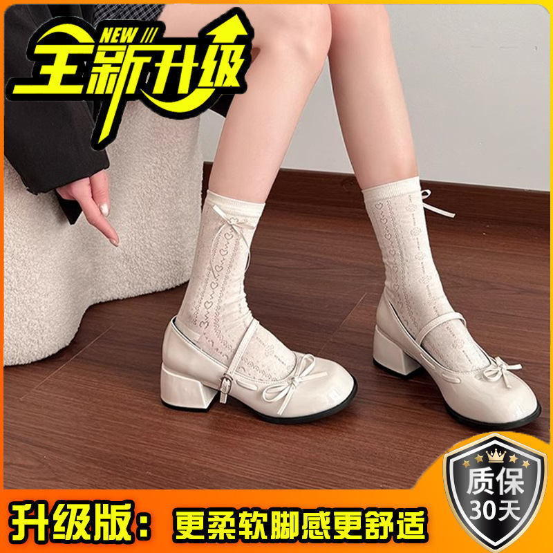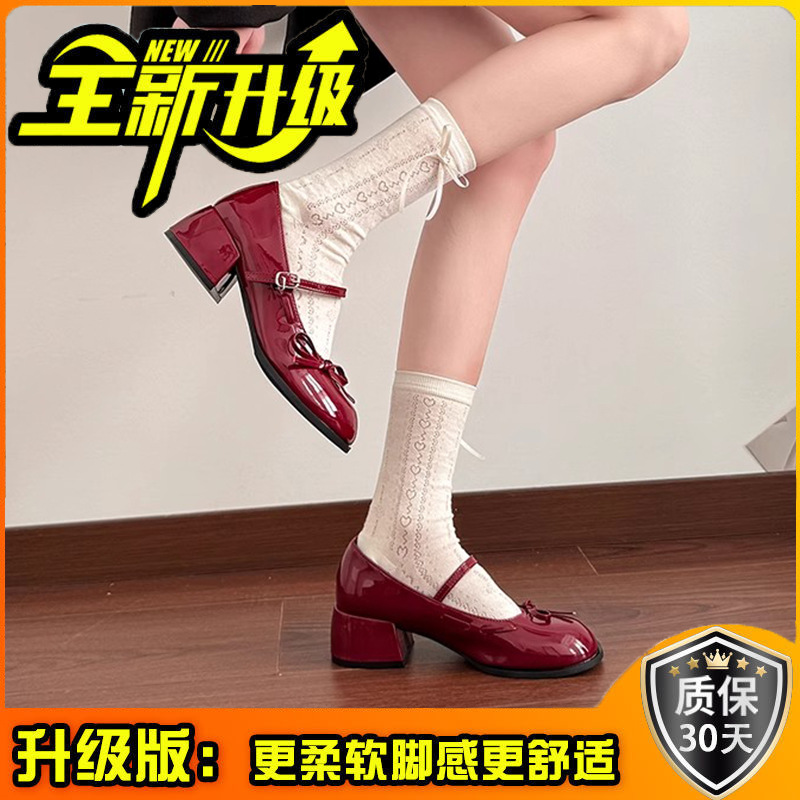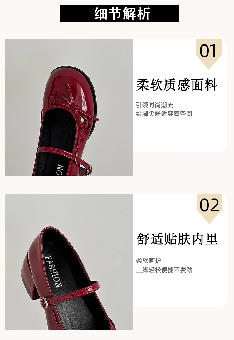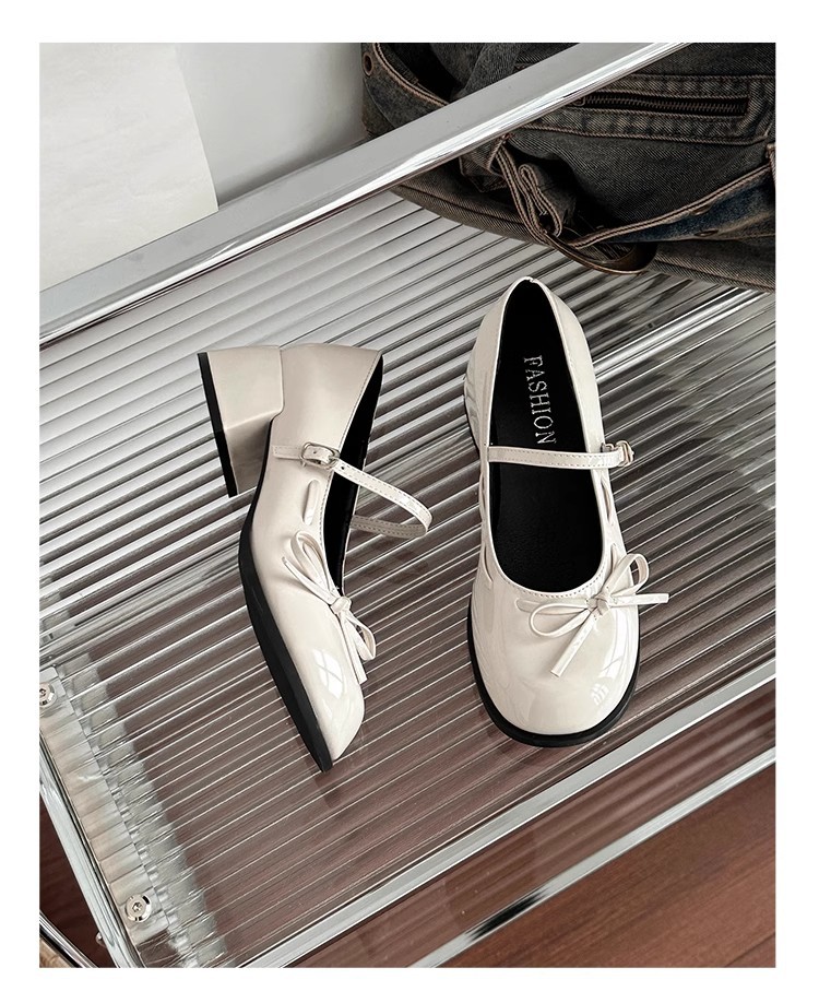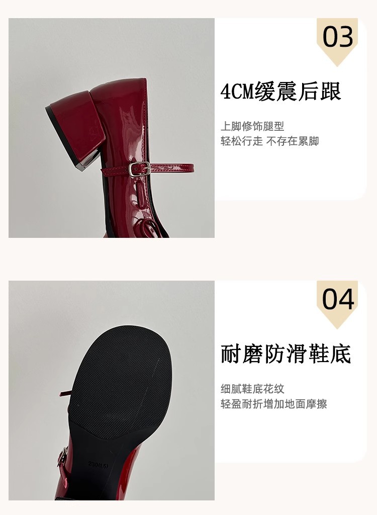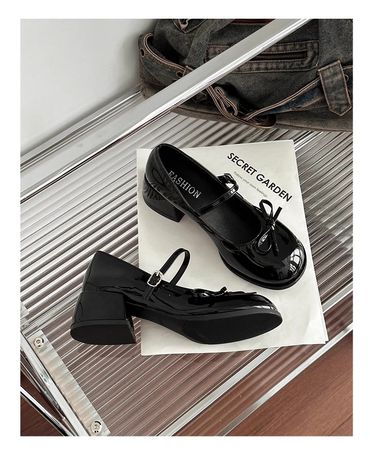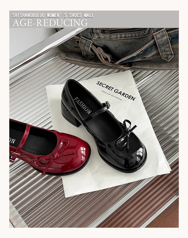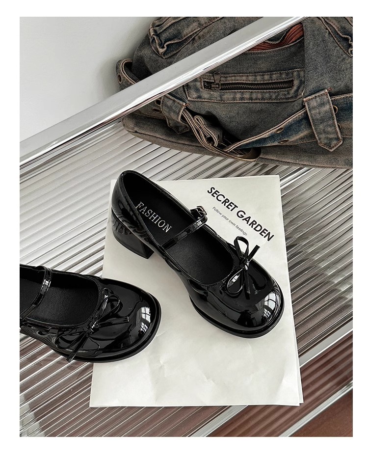 프랑스 발레 여성 메리 제인 신발 봄과 여름 패션 캐주얼 가죽 신발 활 특허 가죽 청키 힐 신발스토어 가기