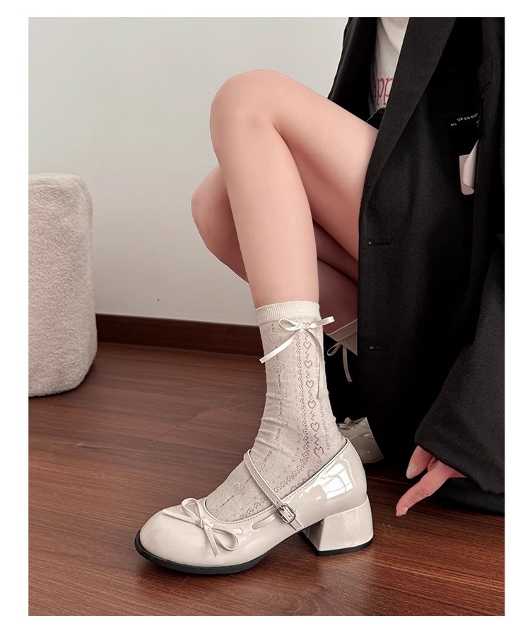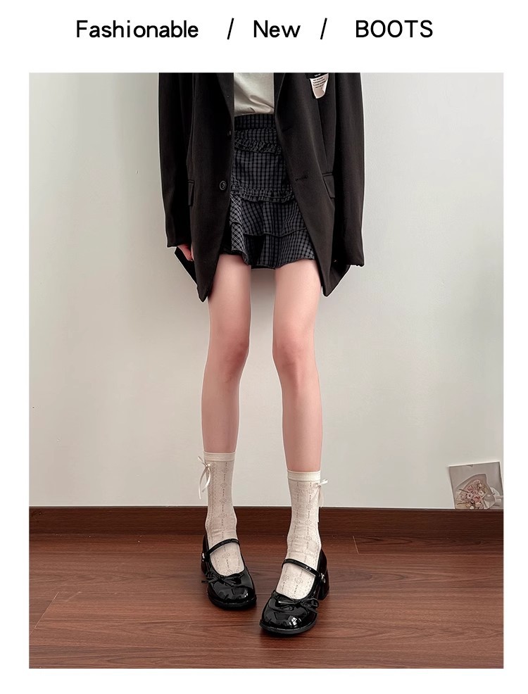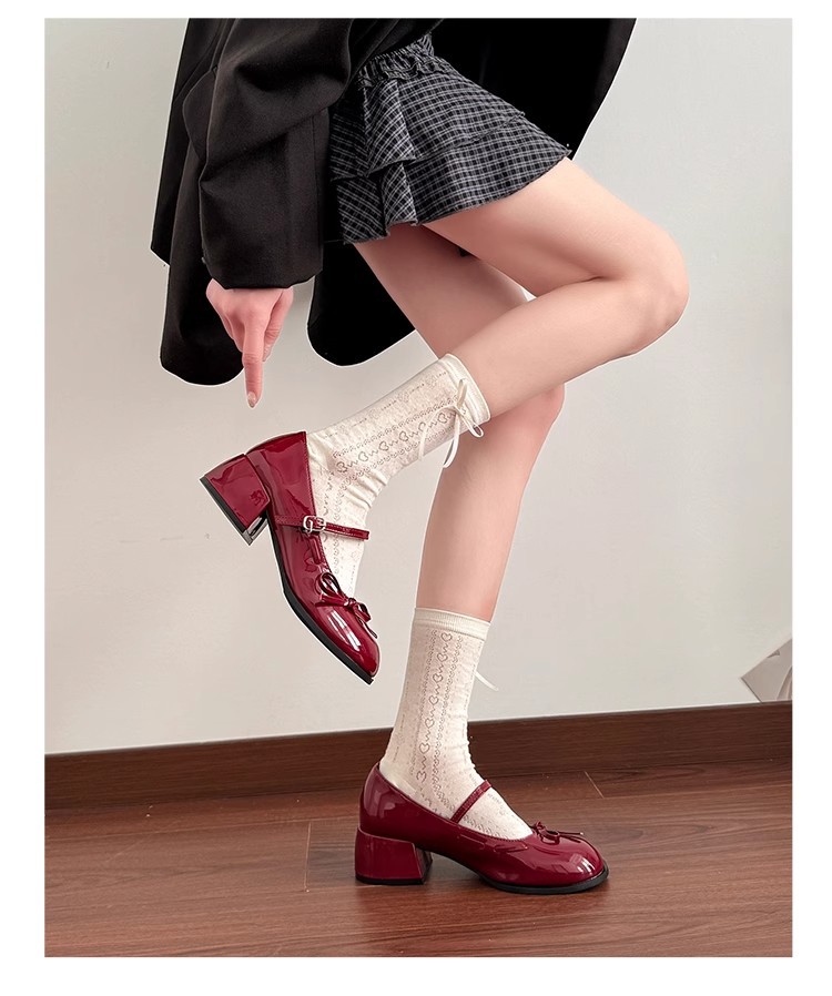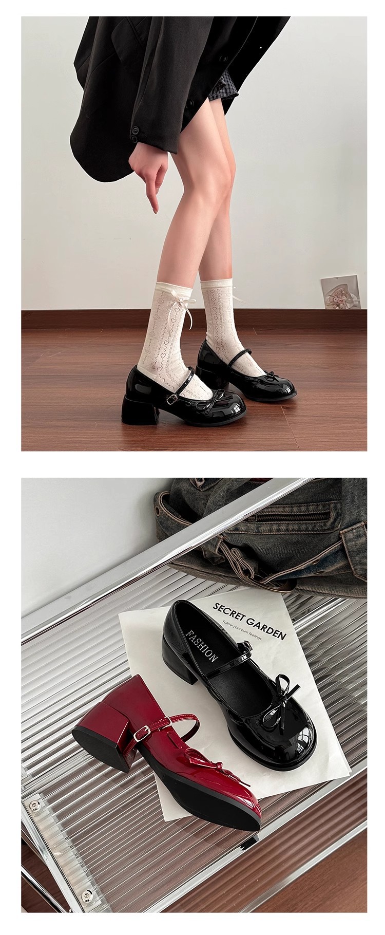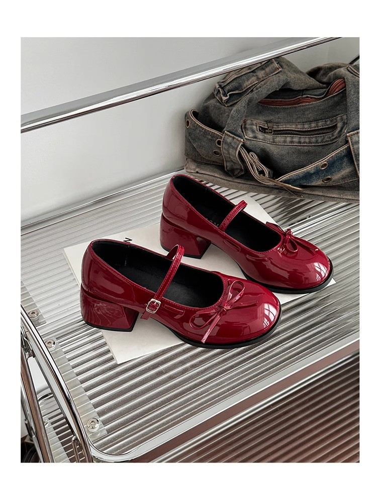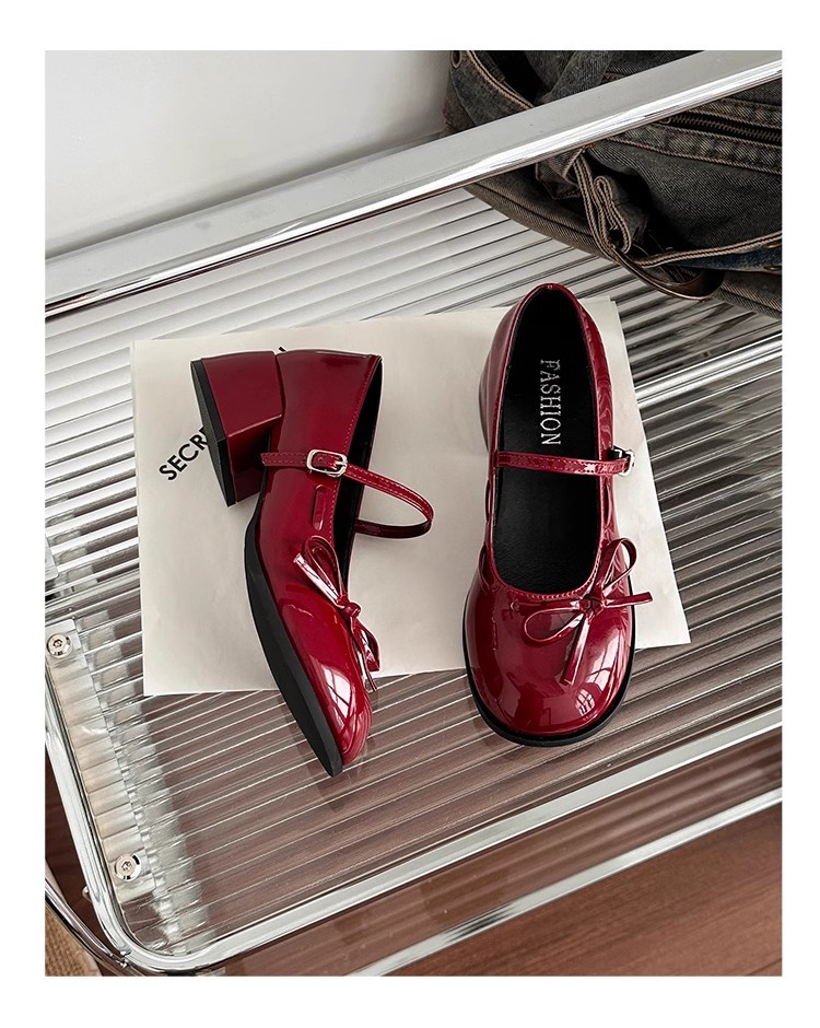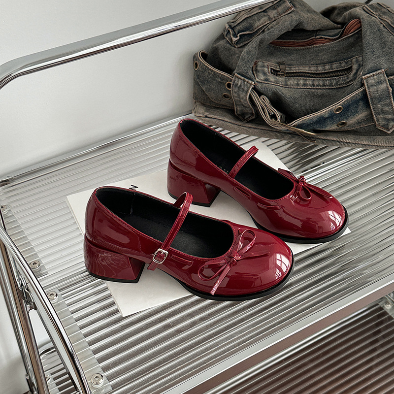 프랑스 발레 여성 메리 제인 신발 봄과 여름 패션 캐주얼 가죽 신발 활 특허 가죽 청키 힐 신발