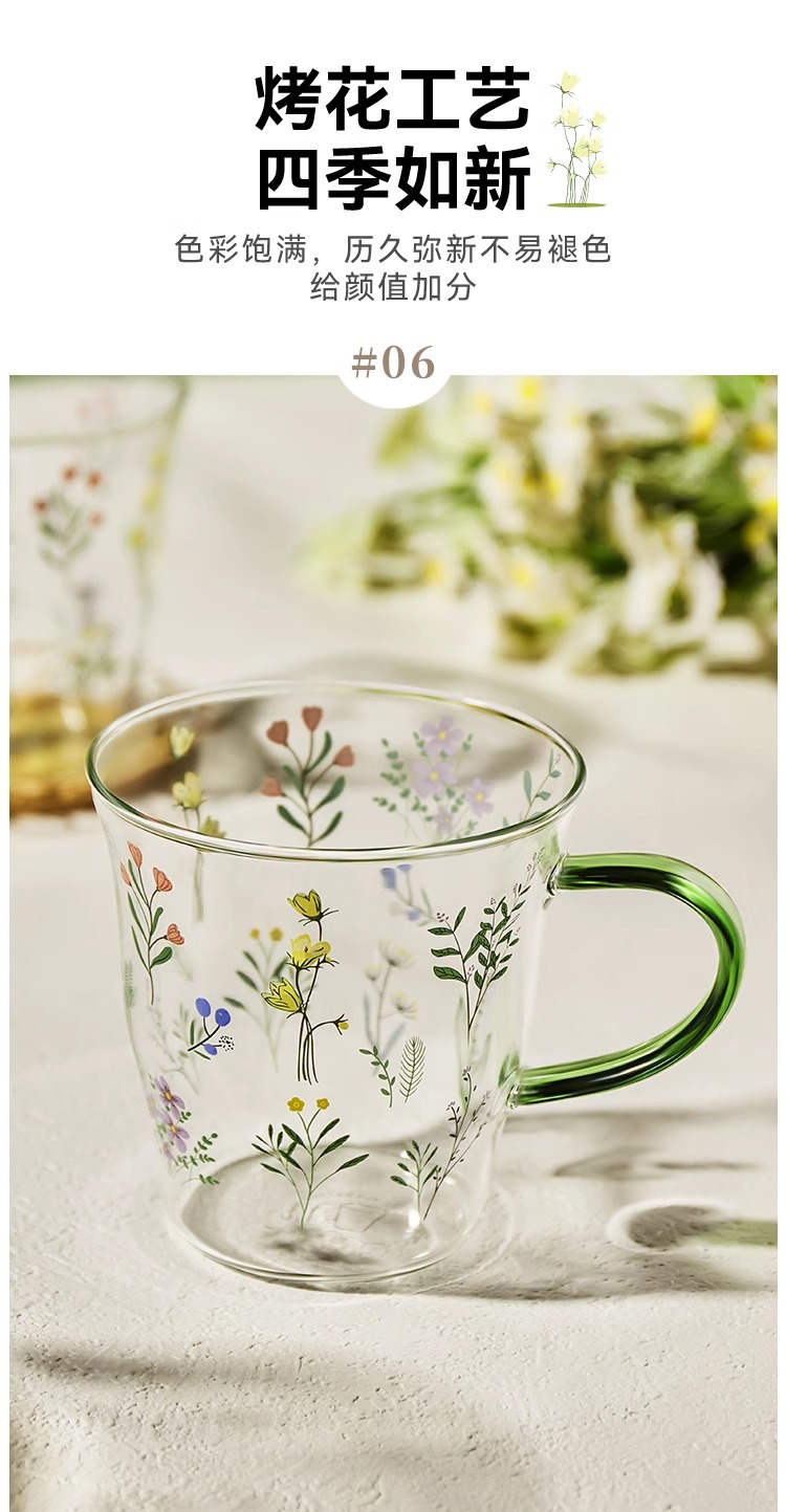 여성용 고붕규산 유리 컵, 고급스러운 물컵, 가정용 커피 컵, 손잡이가 있는 사무실 찻잔, 고온 방지 컵스토어 가기