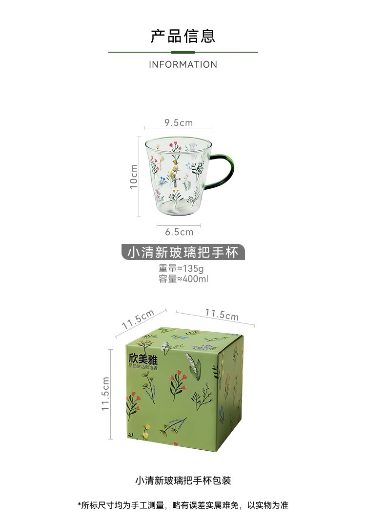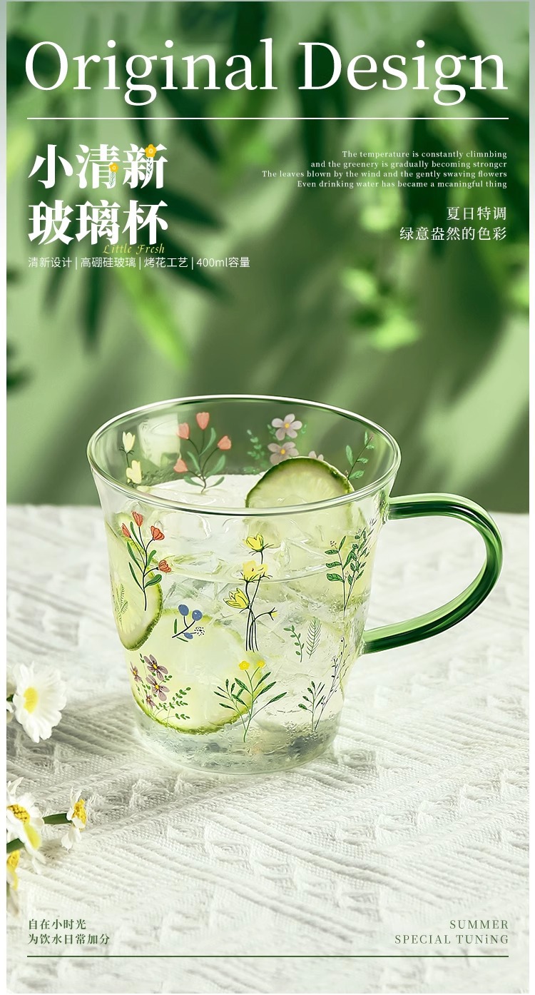 • 1_작고 신선한 붕규산 유리 손잡이 컵 [400ml]