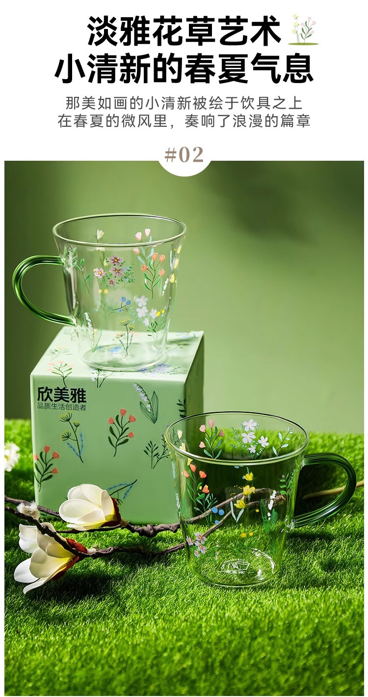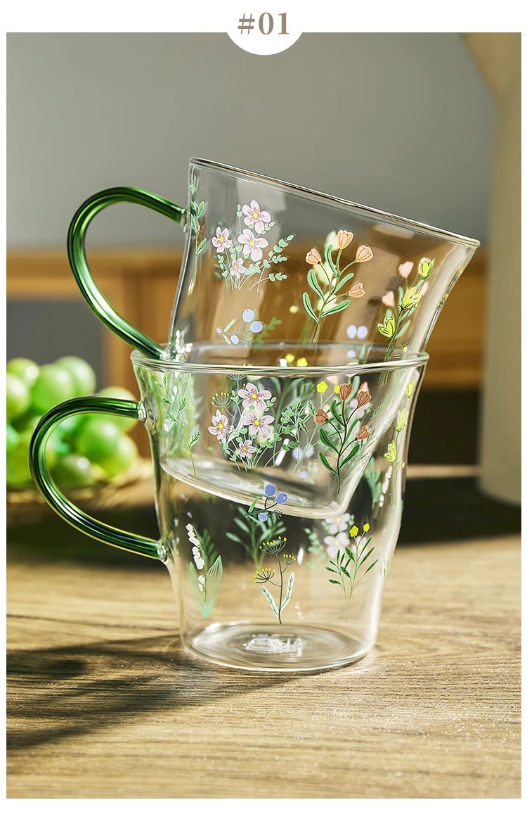 • 2_작고 신선한 붕규산 유리 손잡이 컵, 더블 팩 [400ml]
