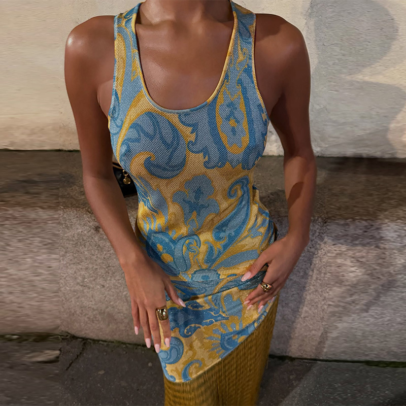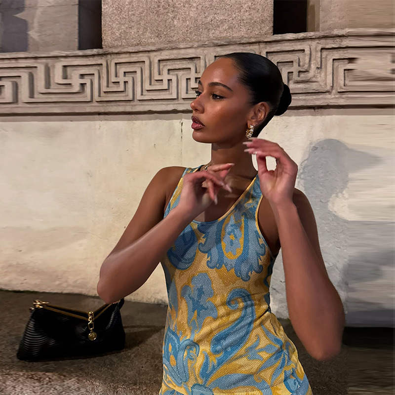 프린트 프린지 원피스 유럽 및 미국 해외직구 2025 봄 신상 휴가풍 끈 원피스스토어 가기