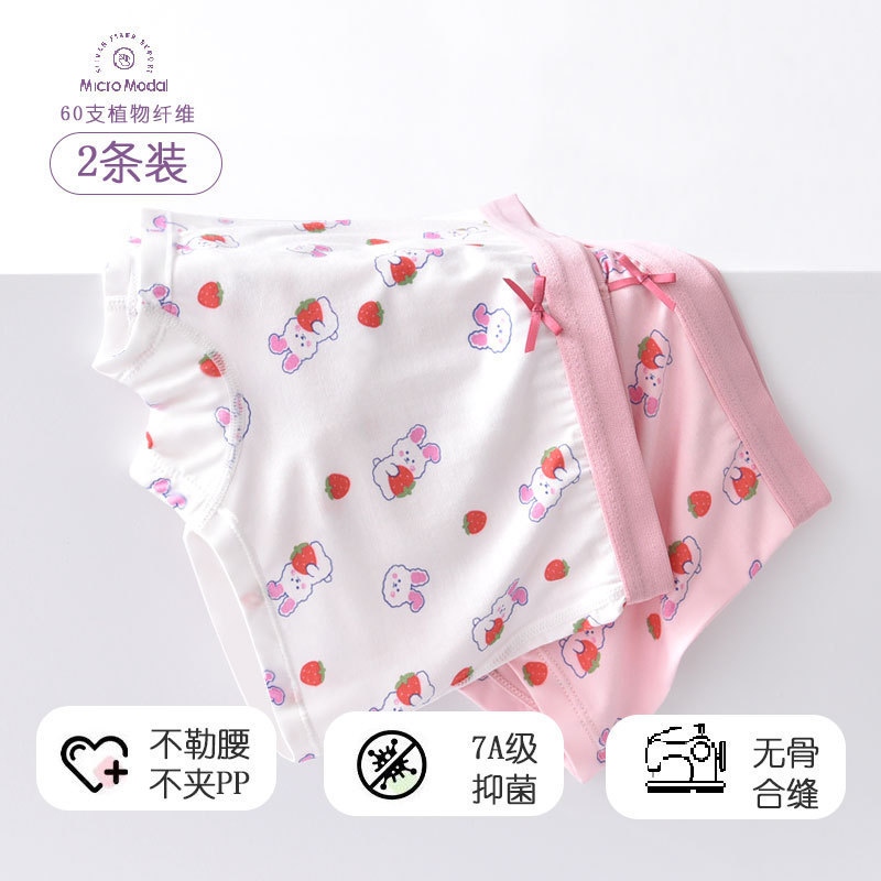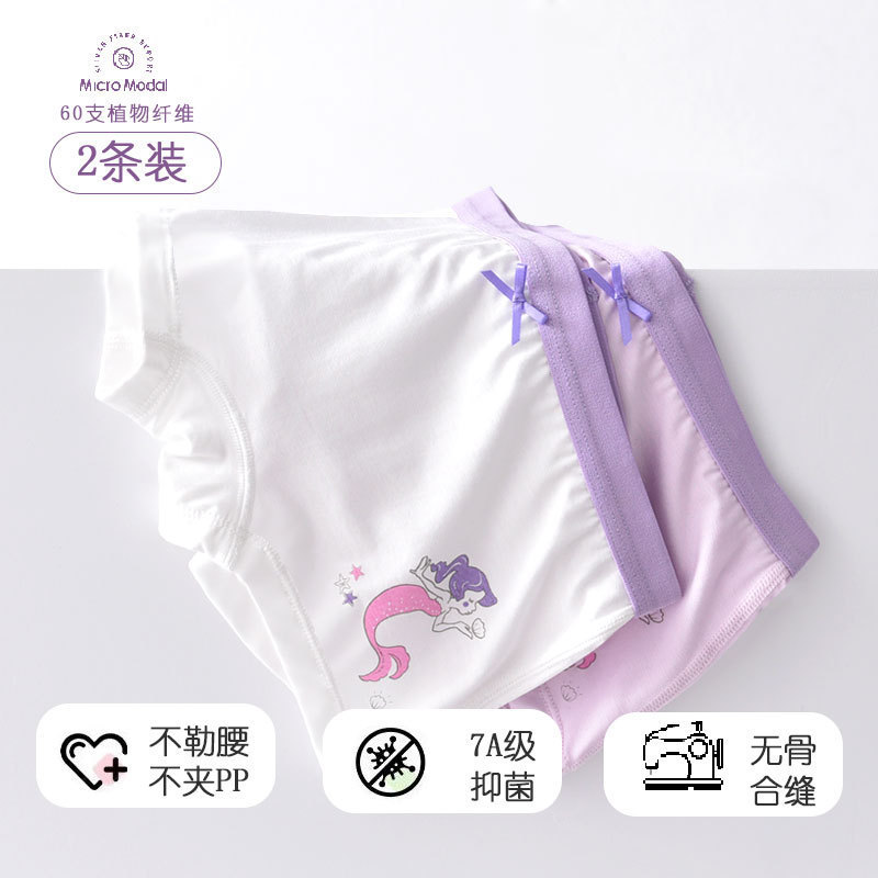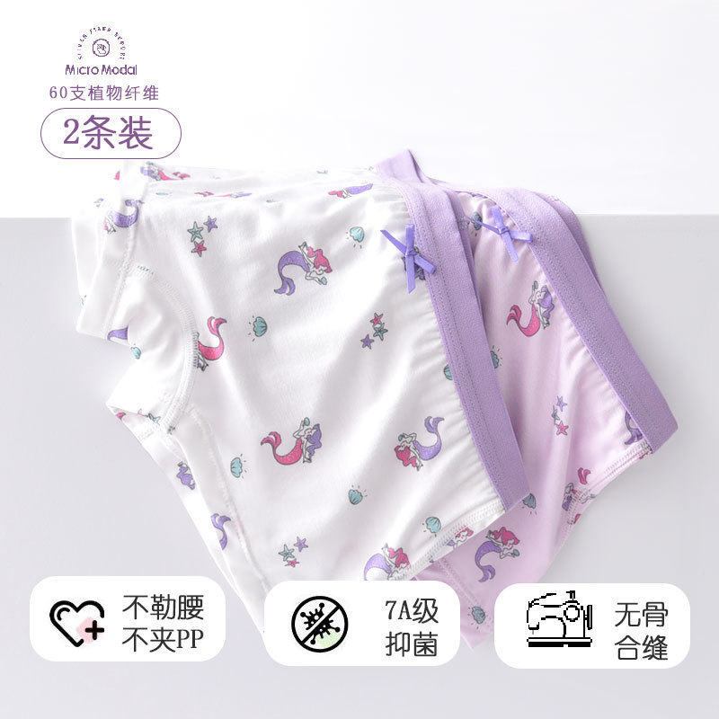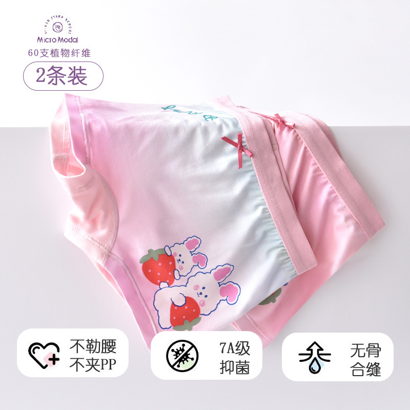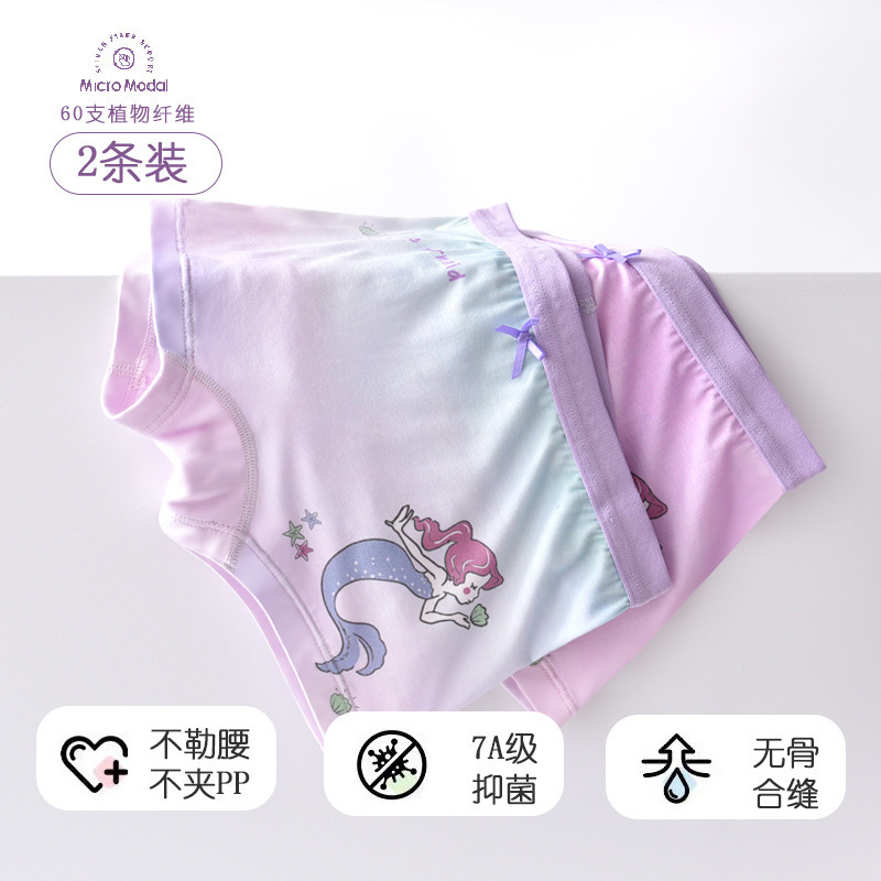어린이용 얇은 속옷 2켤레, 여아용 모달 클래스 A 아이스 실크, 엉덩이가 꼬이지 않는 중대형 아동용 여아용 사각팬티스토어 가기