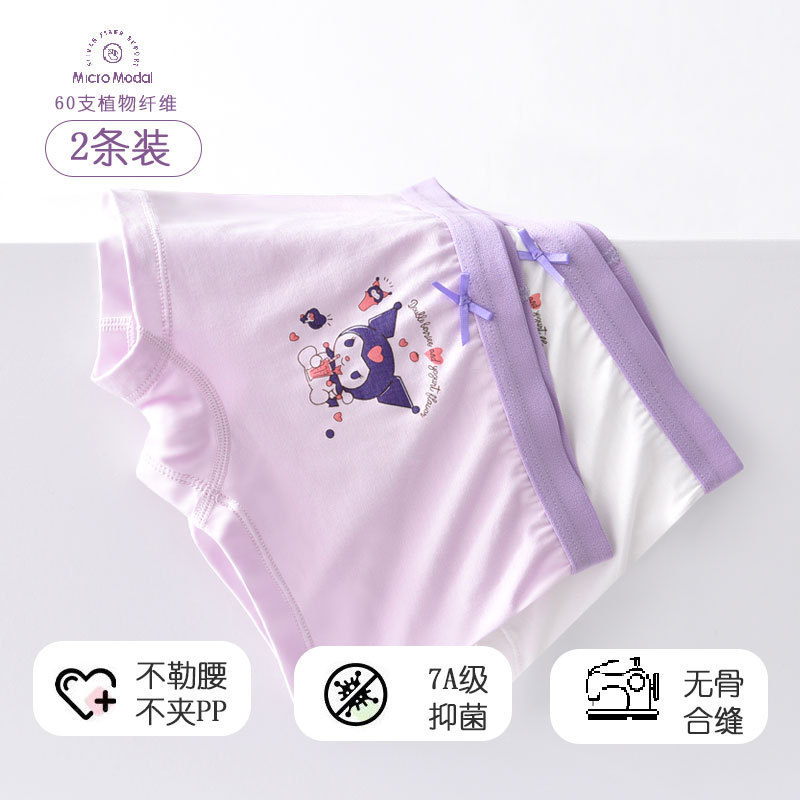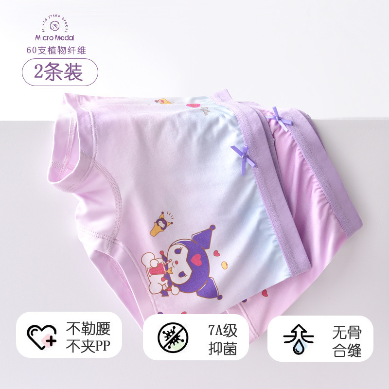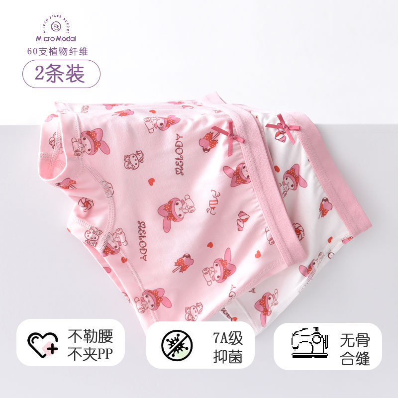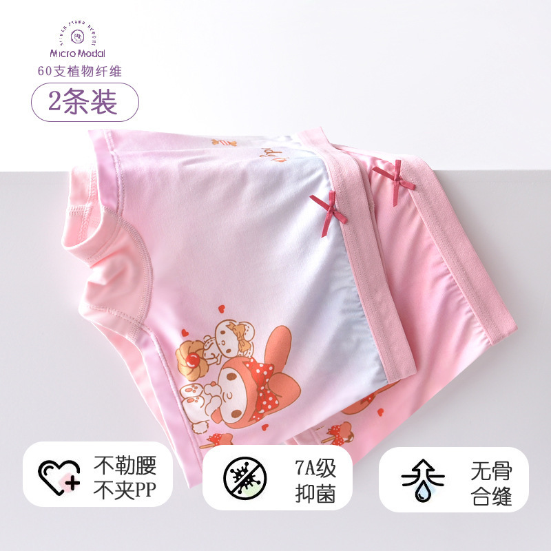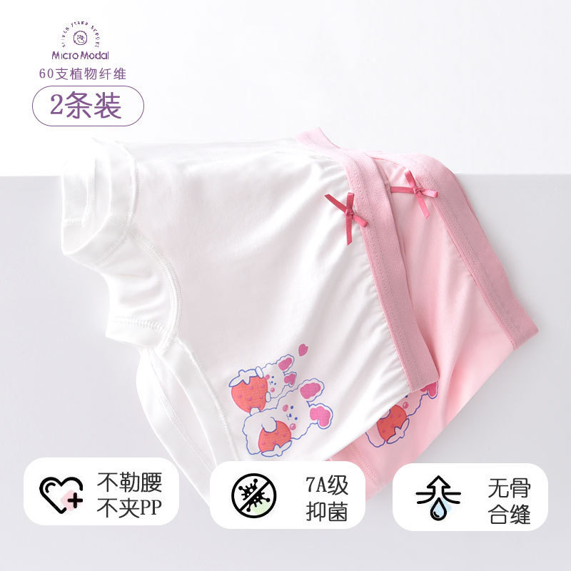 어린이용 얇은 속옷 2켤레, 여아용 모달 클래스 A 아이스 실크, 엉덩이가 꼬이지 않는 중대형 아동용 여아용 사각팬티스토어 가기