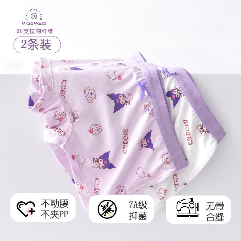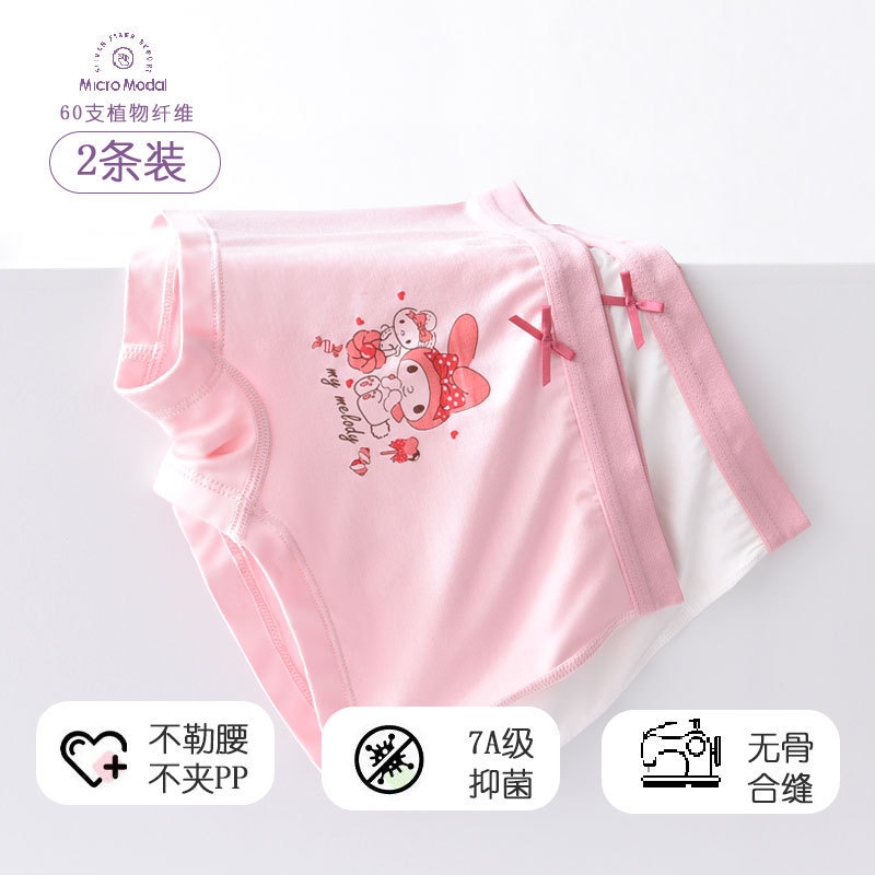 어린이용 얇은 속옷 2켤레, 여아용 모달 클래스 A 아이스 실크, 엉덩이가 꼬이지 않는 중대형 아동용 여아용 사각팬티