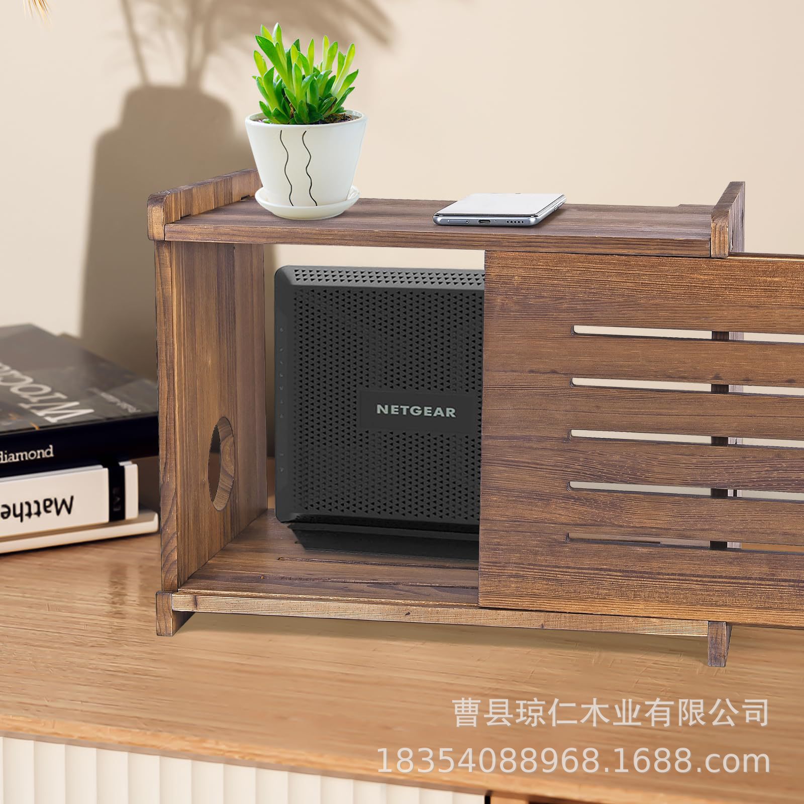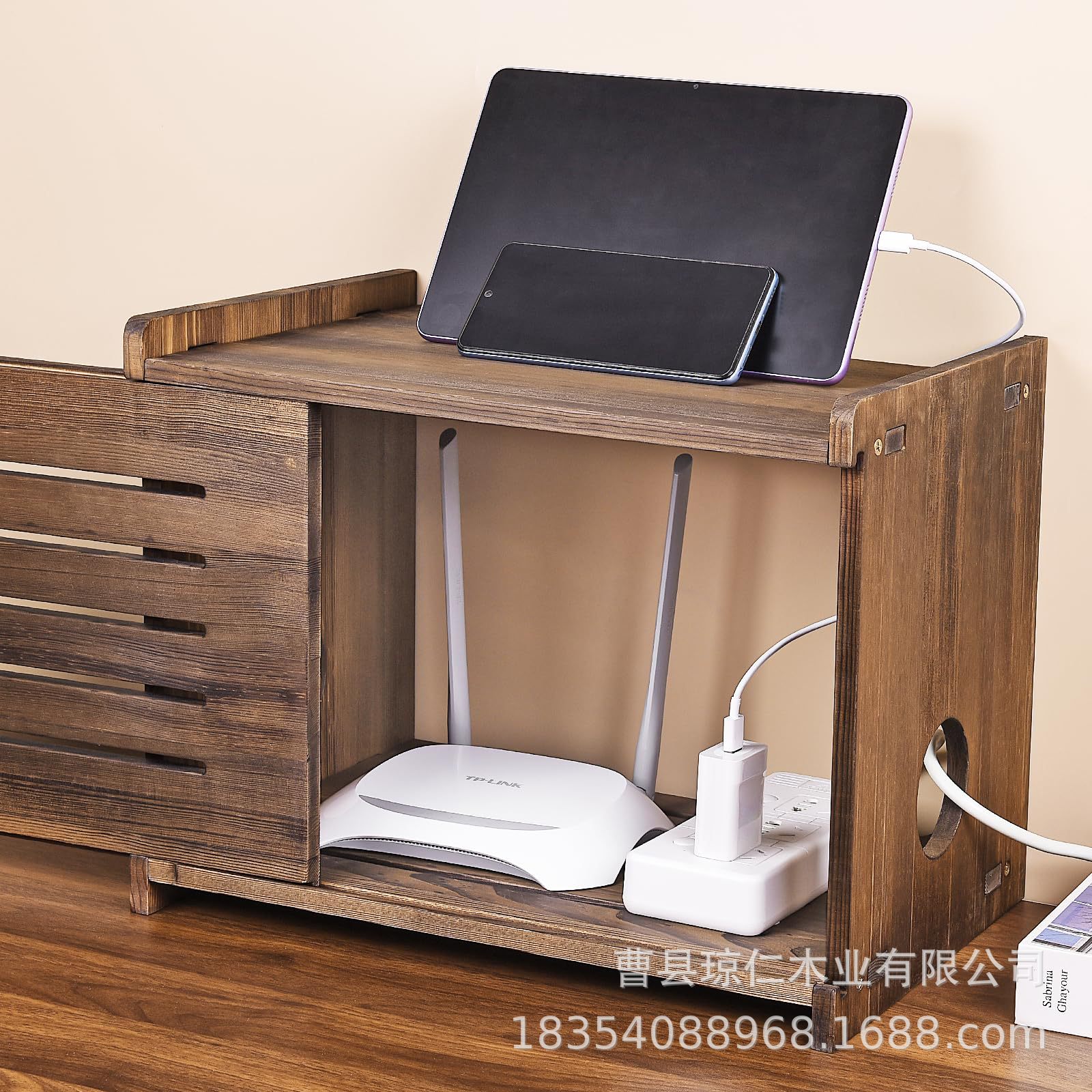 나무 보관 상자 라우터 케이블 단단한 나무 케이블 관리 상자 홀더 컴퓨터 데스크탑 WiFi 차단 브래킷 플러그인 박스