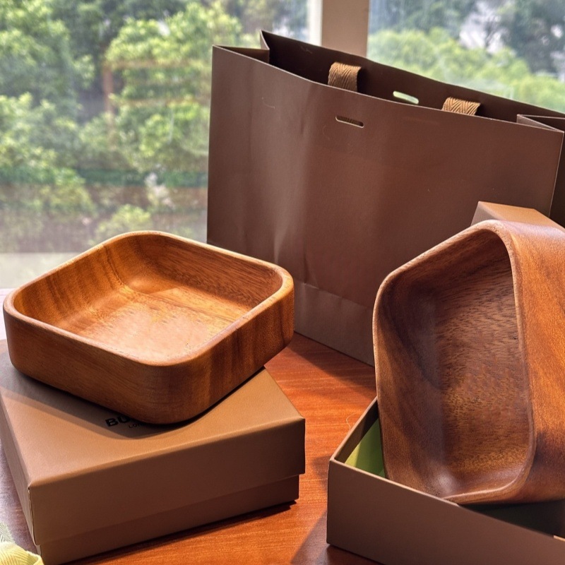호두 과일 접시 단단한 나무 둥근 샐러드 그릇 접시 저녁 식사 접시 가정용 어린이 과일 접시 도매 나무 트레이스토어 가기