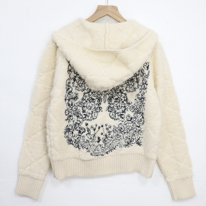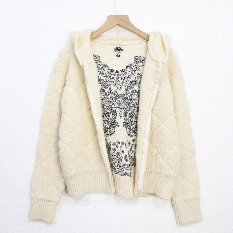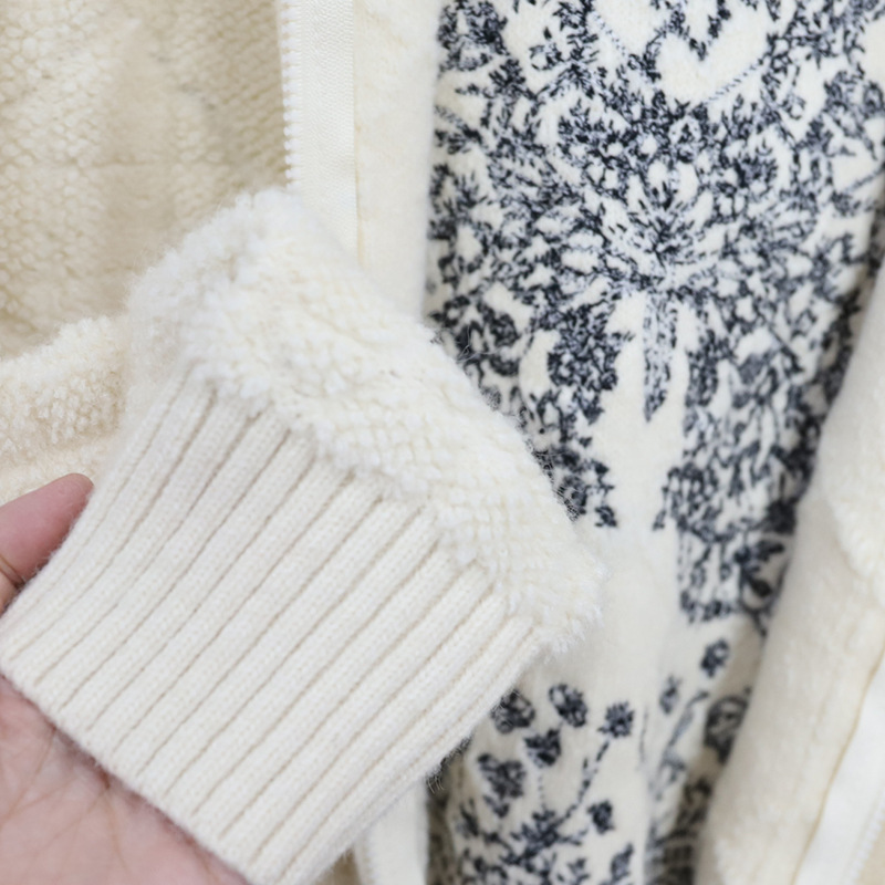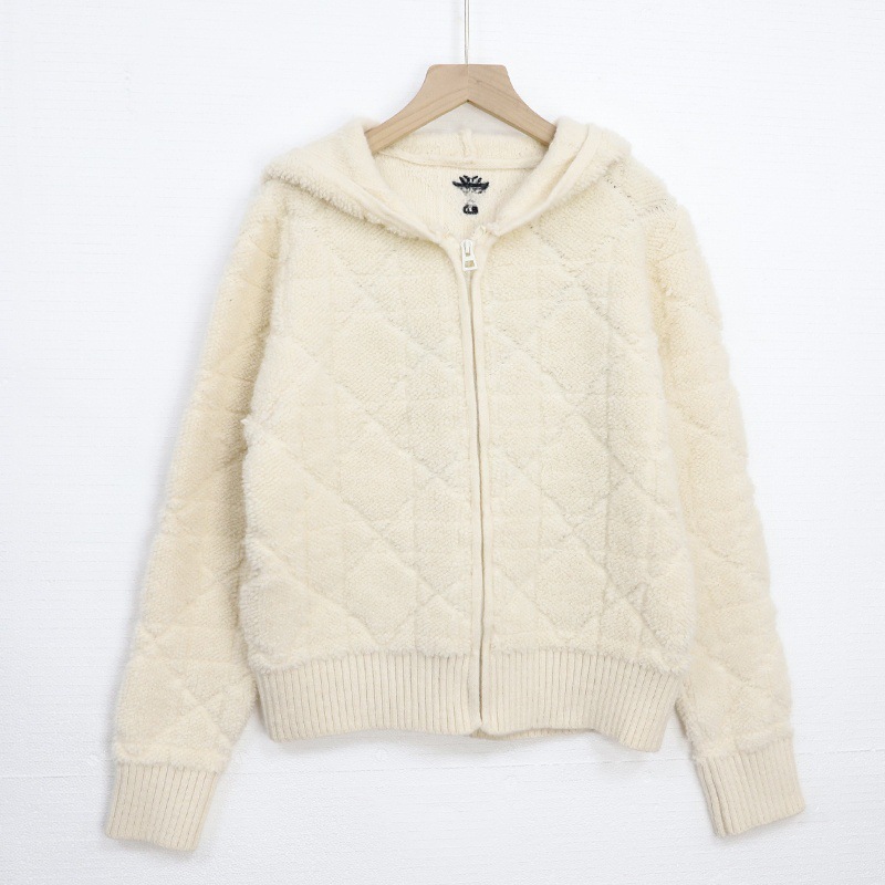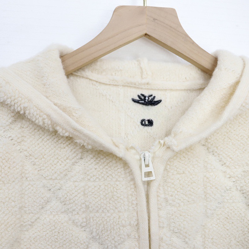 24 가을, 겨울 새로운 단색 간단한 어두운 패턴 자카드 지퍼 후드 카디건 니트 스웨터 여성용 자수 자켓스토어 가기