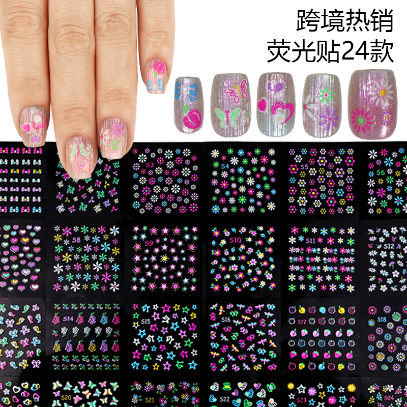 국경 간 형광 네일 아트 스티커 아마존 베스트 셀러 유럽과 미국의 양파 핑크 네일 스티커 나비 꽃 스타일 네일 아트 스티커스토어 가기