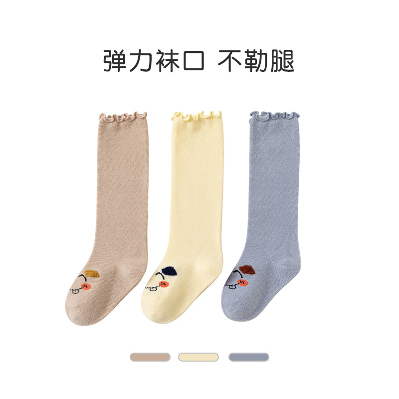 남녀공용 베이비스타킹, 봄, 가을 면양말, 신생아 트렌디하고 멋스러운 루즈핏 무릎양말