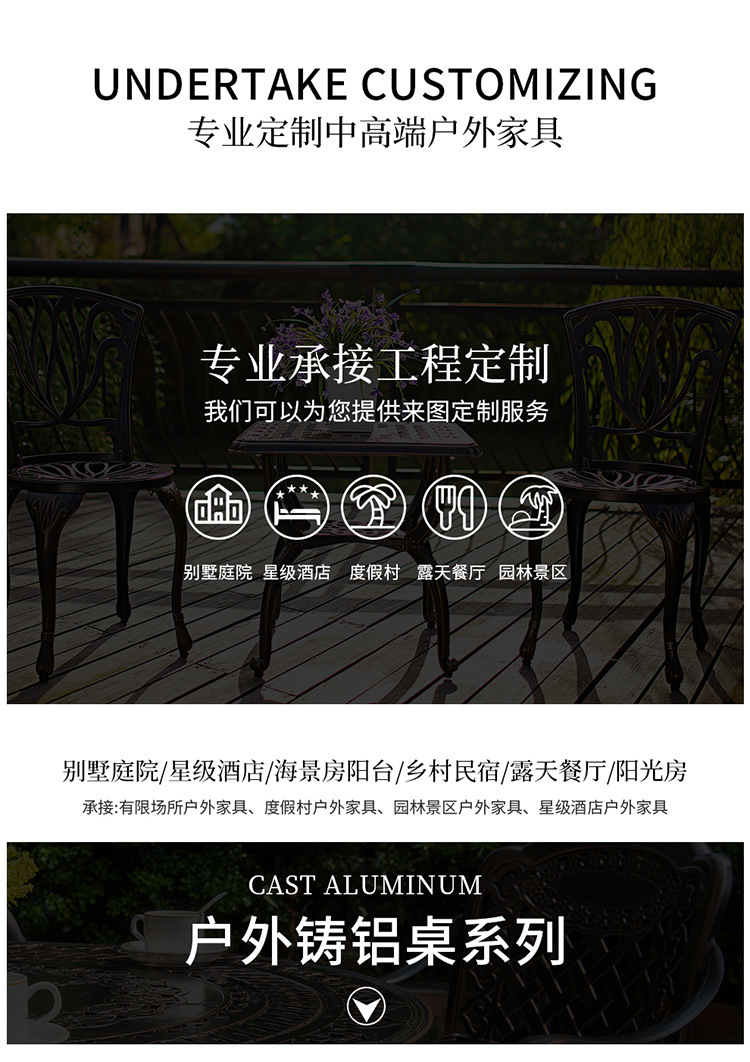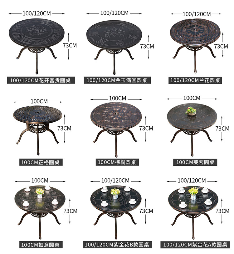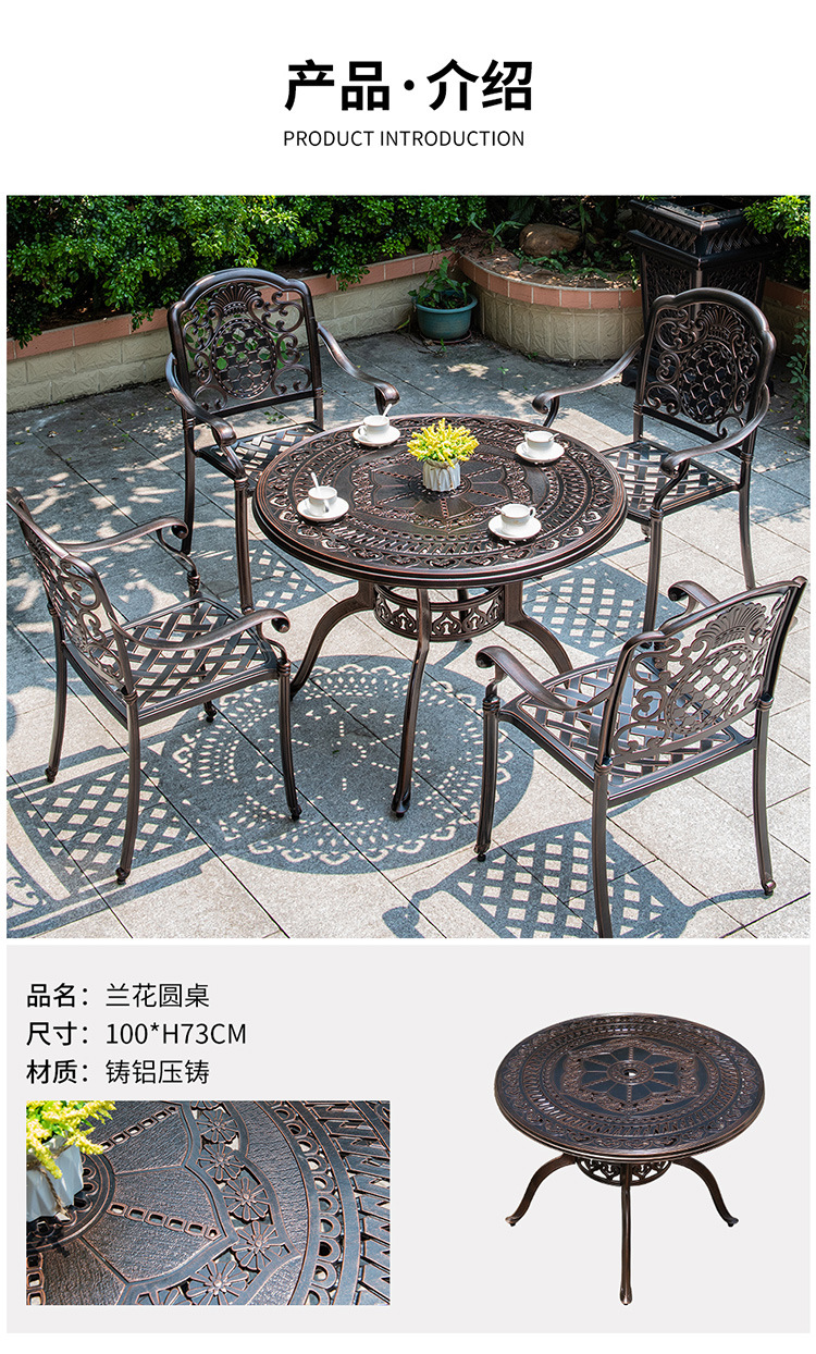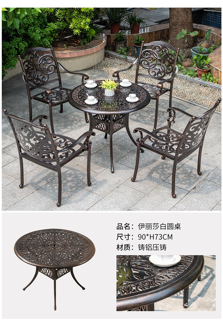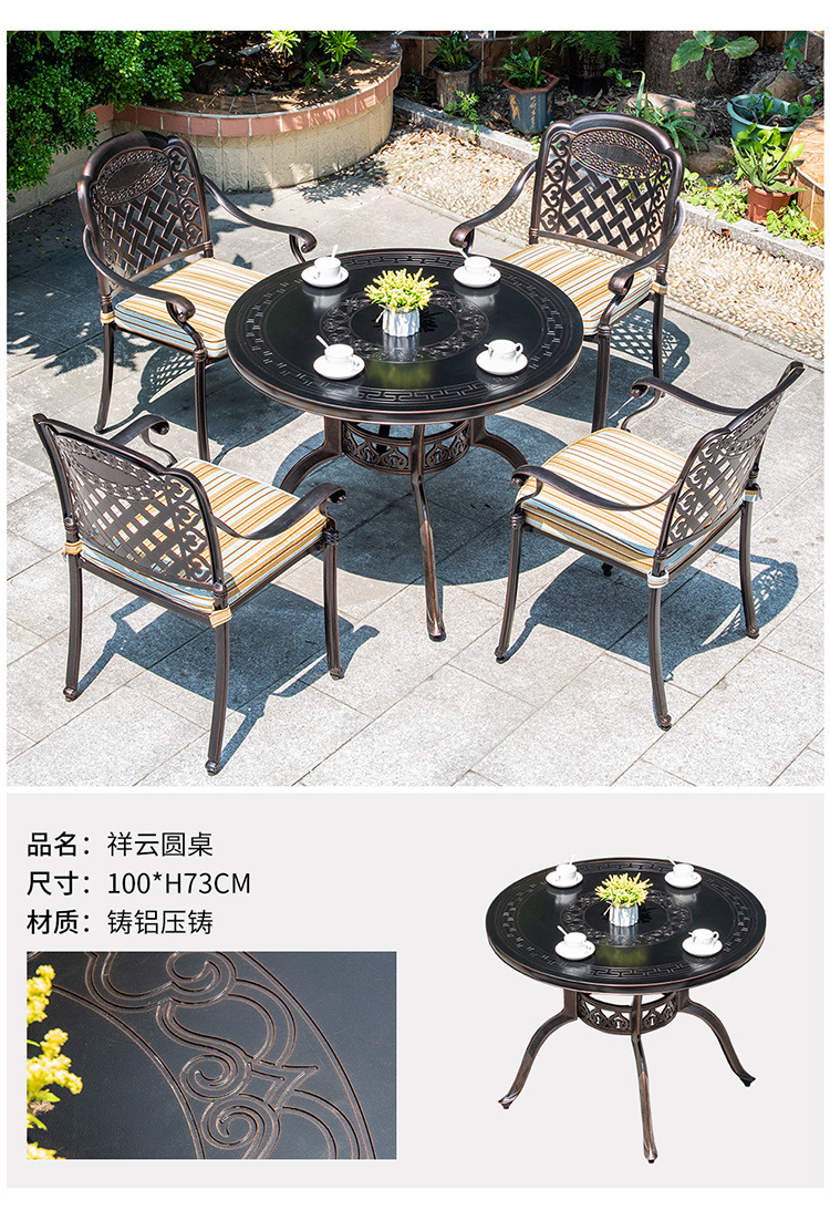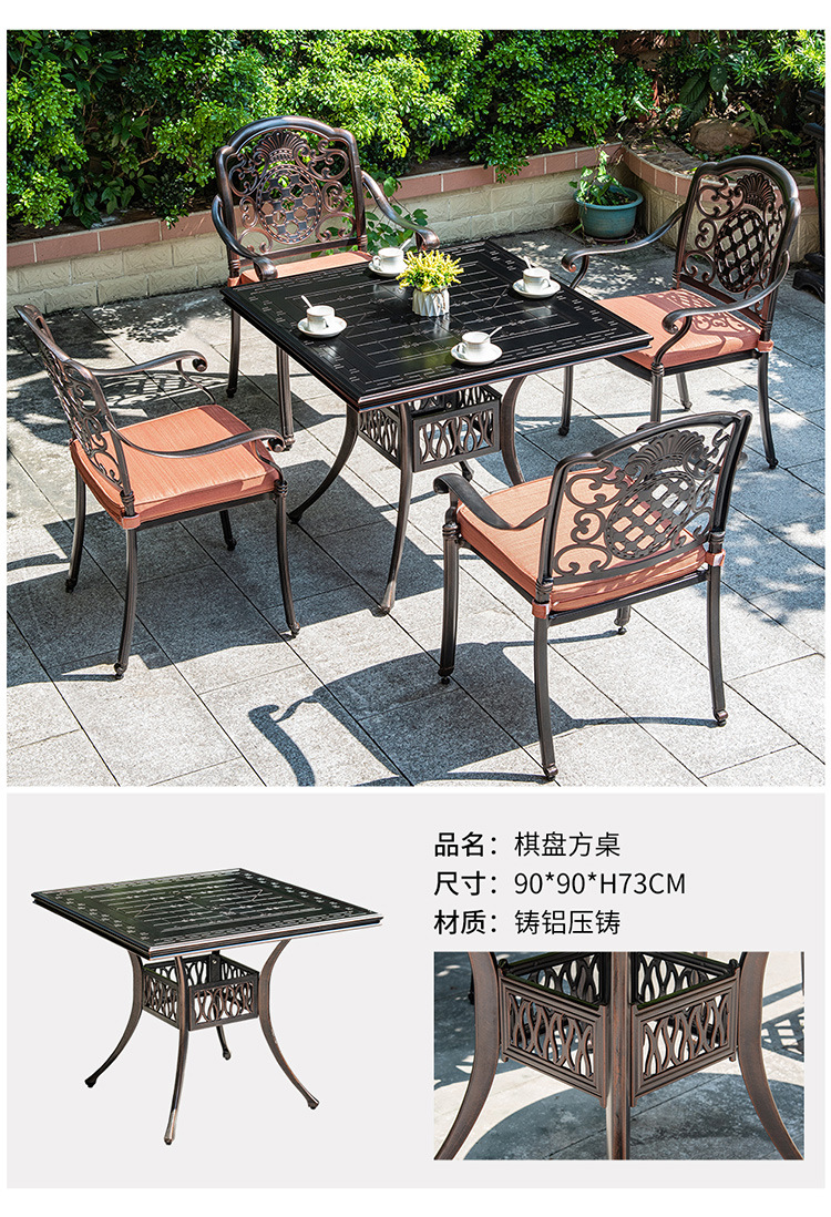 야외 테이블과 의자 코트야드 빌라 정원 가정용 테이블 캐스트 알루미늄 철 캐주얼 야외 발코니 라운드 테이블 스퀘어 테이블 조합