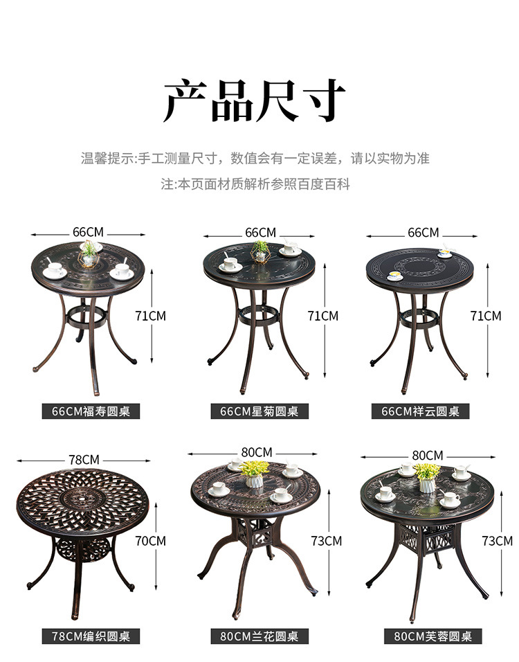 야외 테이블과 의자 코트야드 빌라 정원 가정용 테이블 캐스트 알루미늄 철 캐주얼 야외 발코니 라운드 테이블 스퀘어 테이블 조합스토어 가기