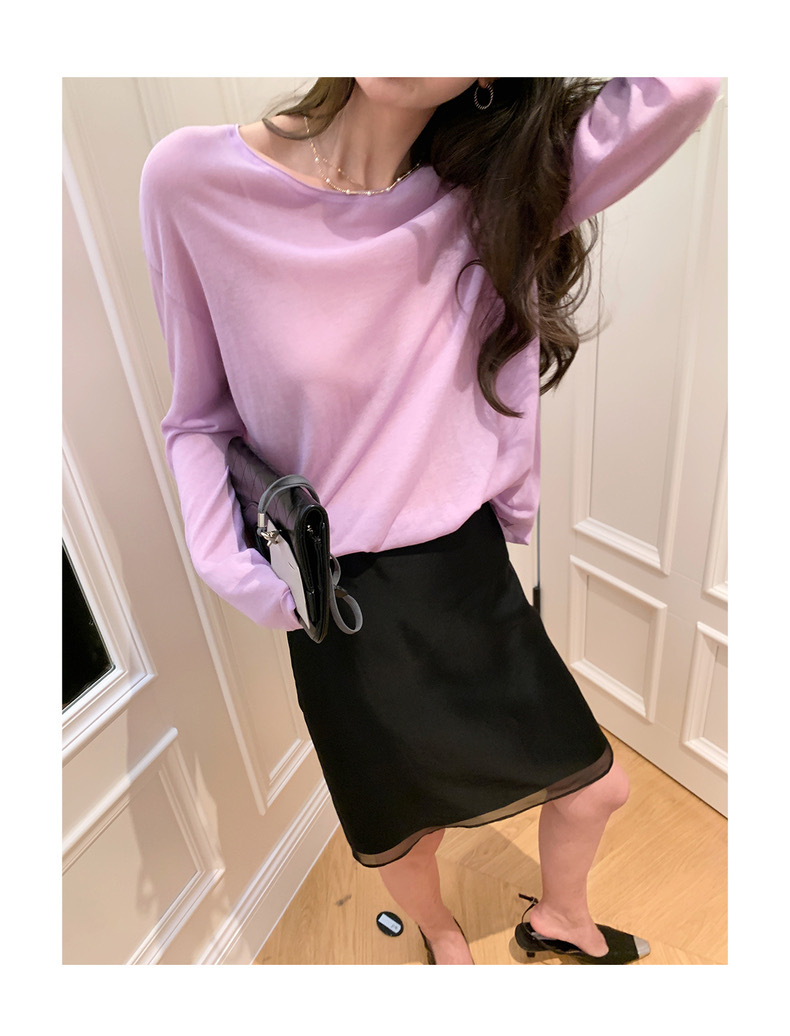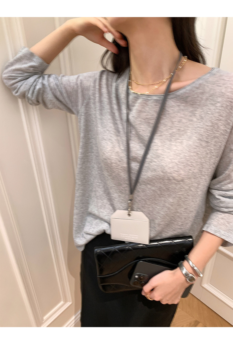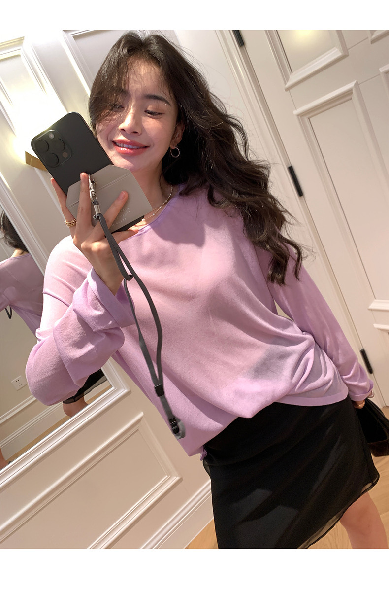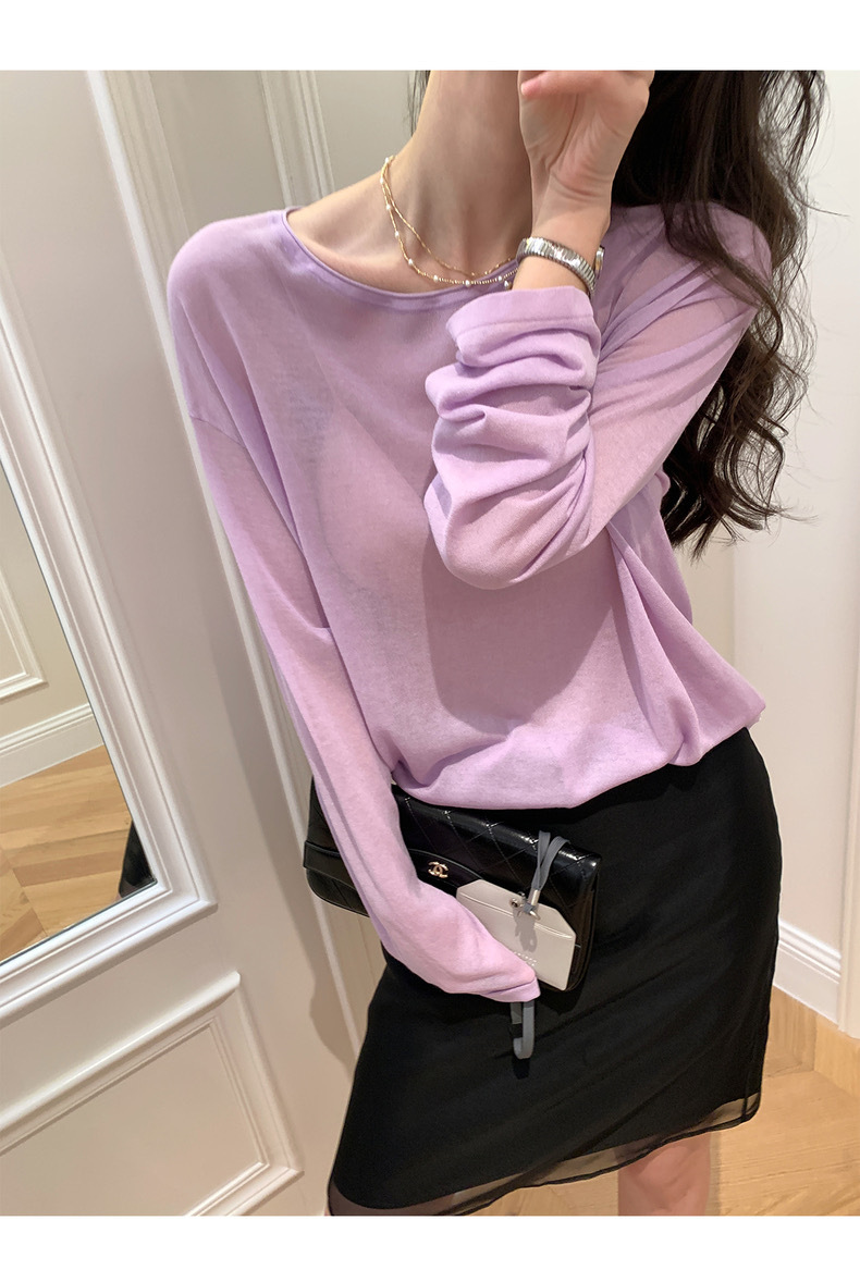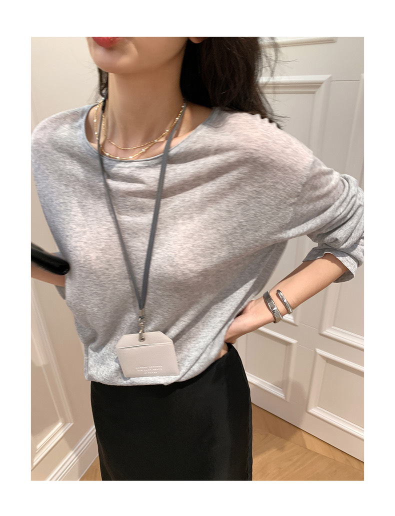 한국식 콘트라스트 텐셀 니트 셔츠 여성용 긴팔 티셔츠 느슨한 얇은 마이크로 투명 종이 셔츠