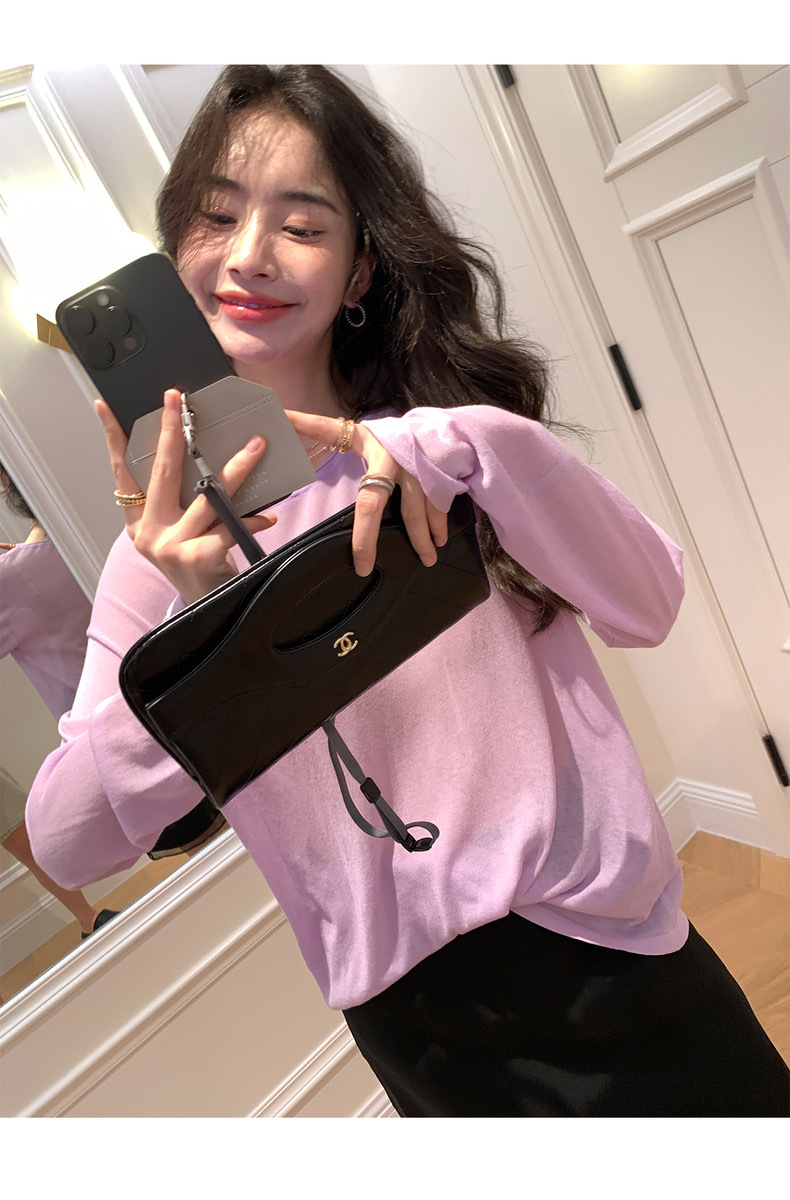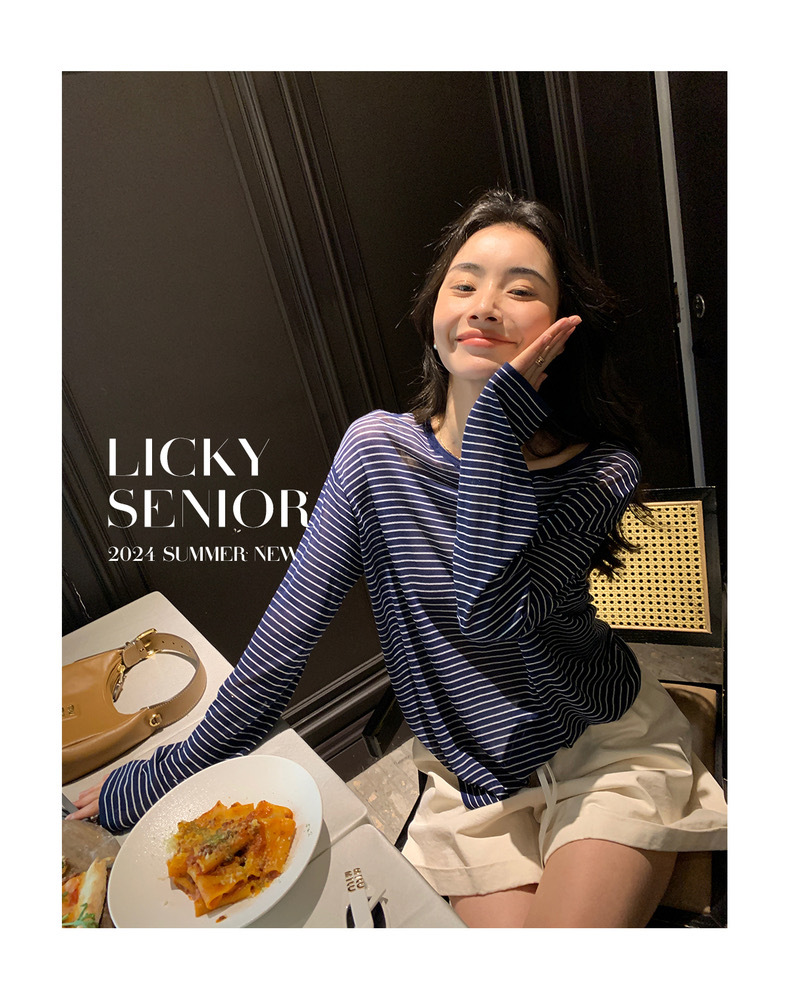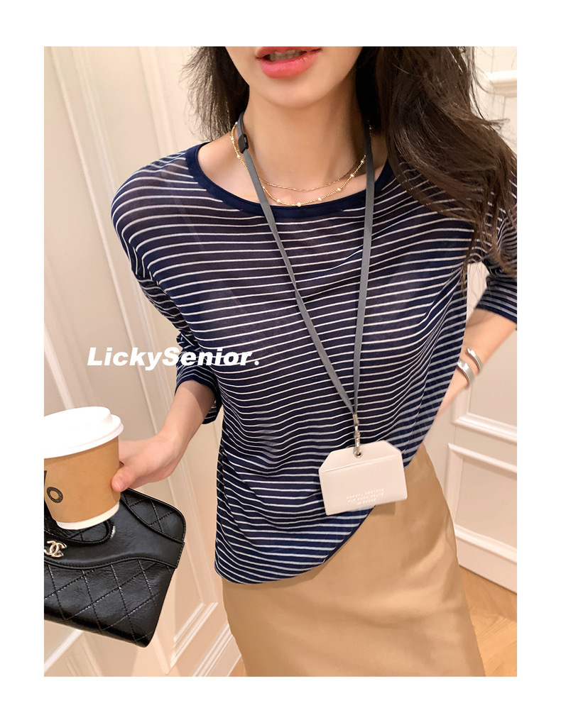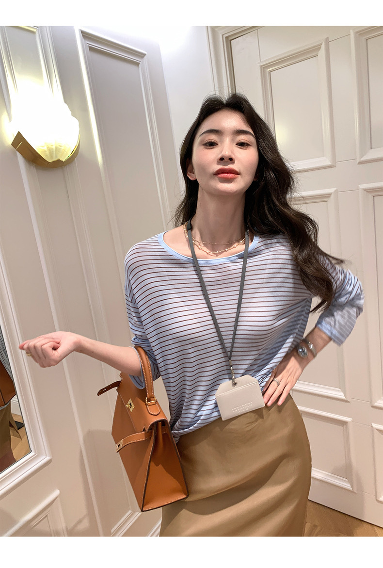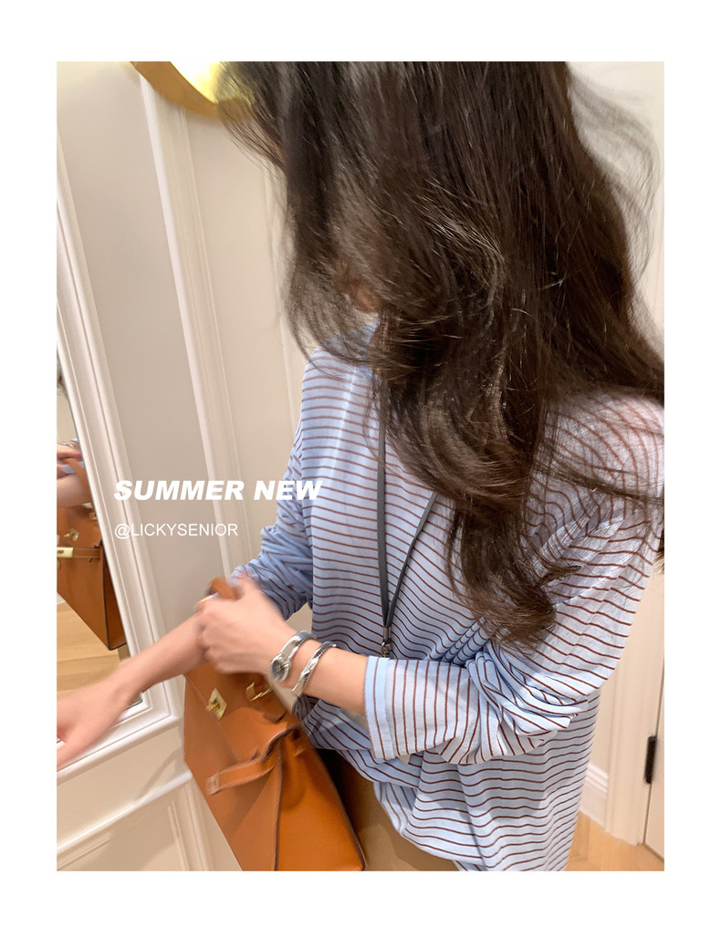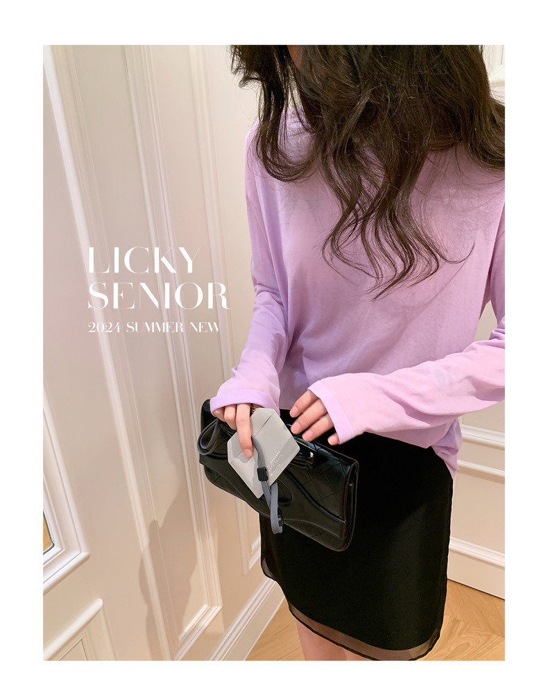 한국식 콘트라스트 텐셀 니트 셔츠 여성용 긴팔 티셔츠 느슨한 얇은 마이크로 투명 종이 셔츠