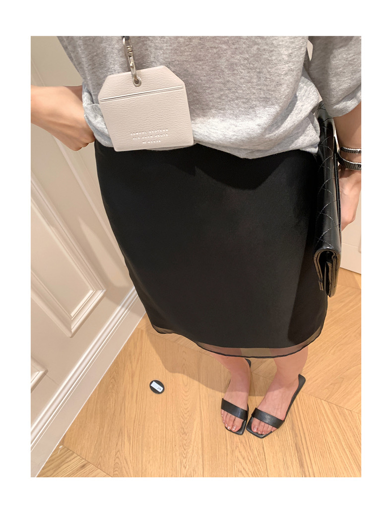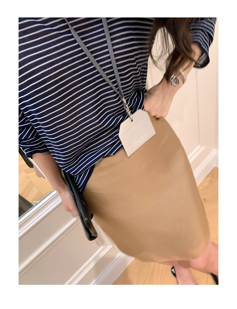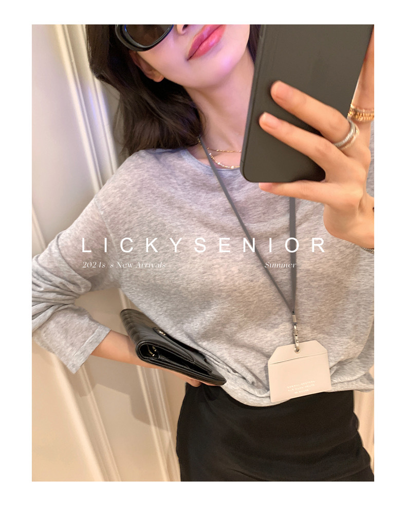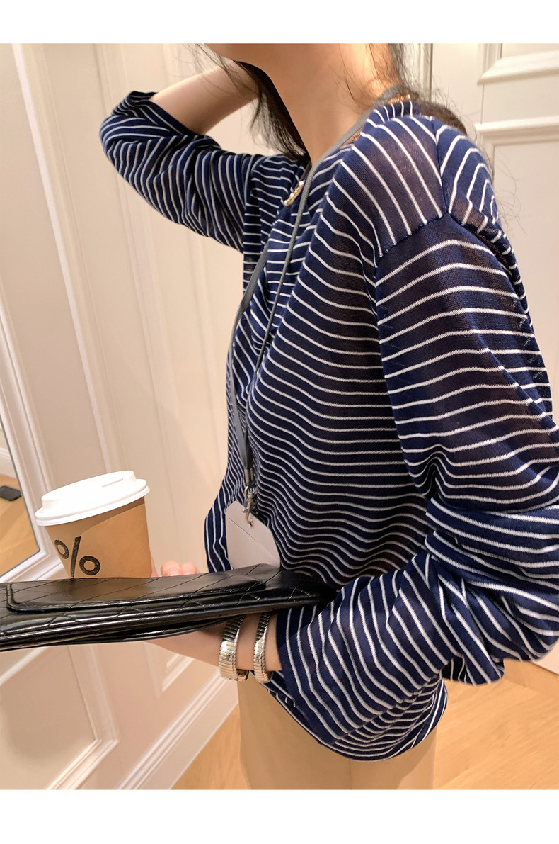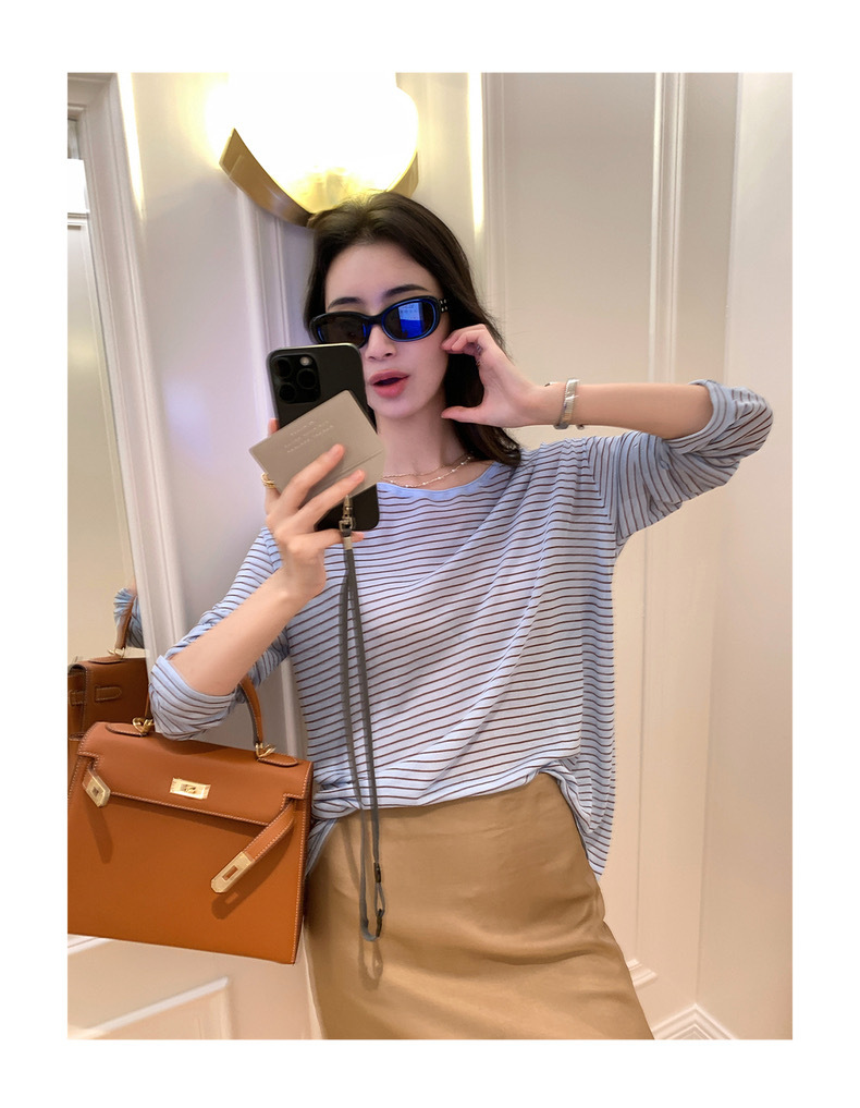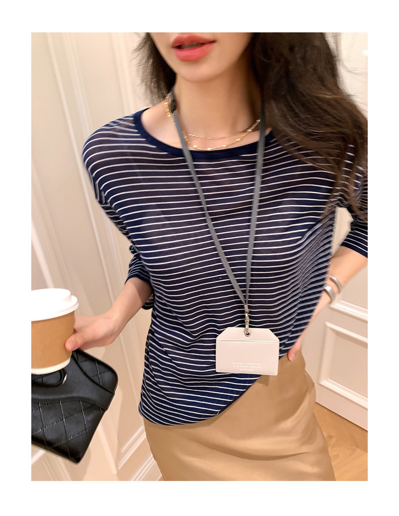 한국식 콘트라스트 텐셀 니트 셔츠 여성용 긴팔 티셔츠 느슨한 얇은 마이크로 투명 종이 셔츠